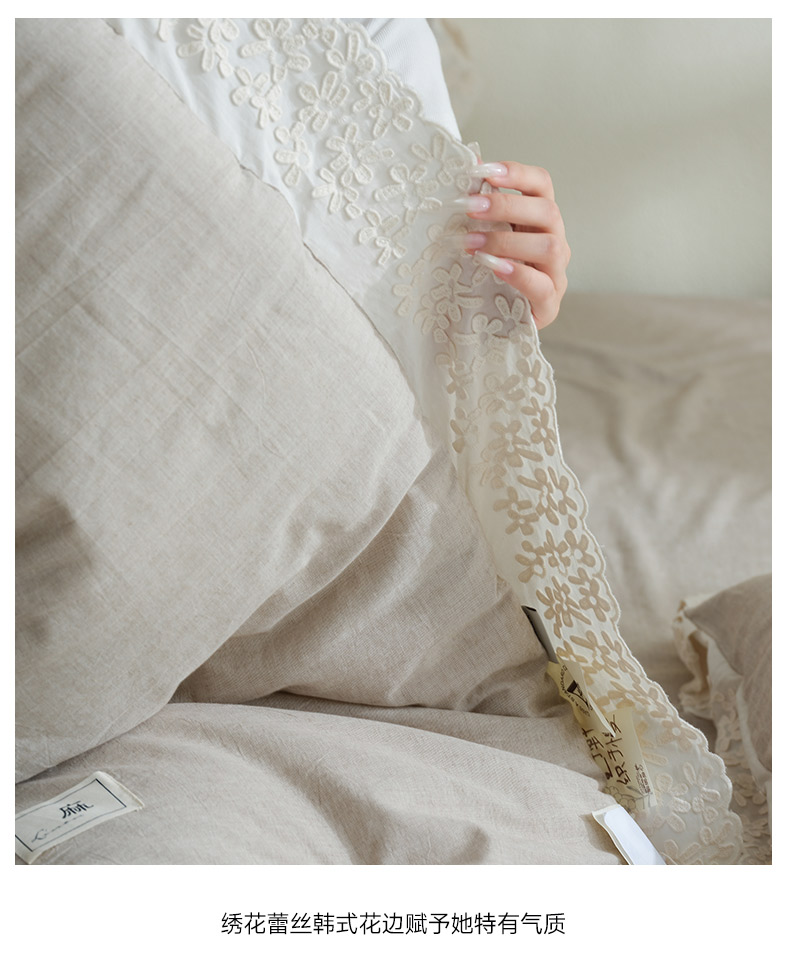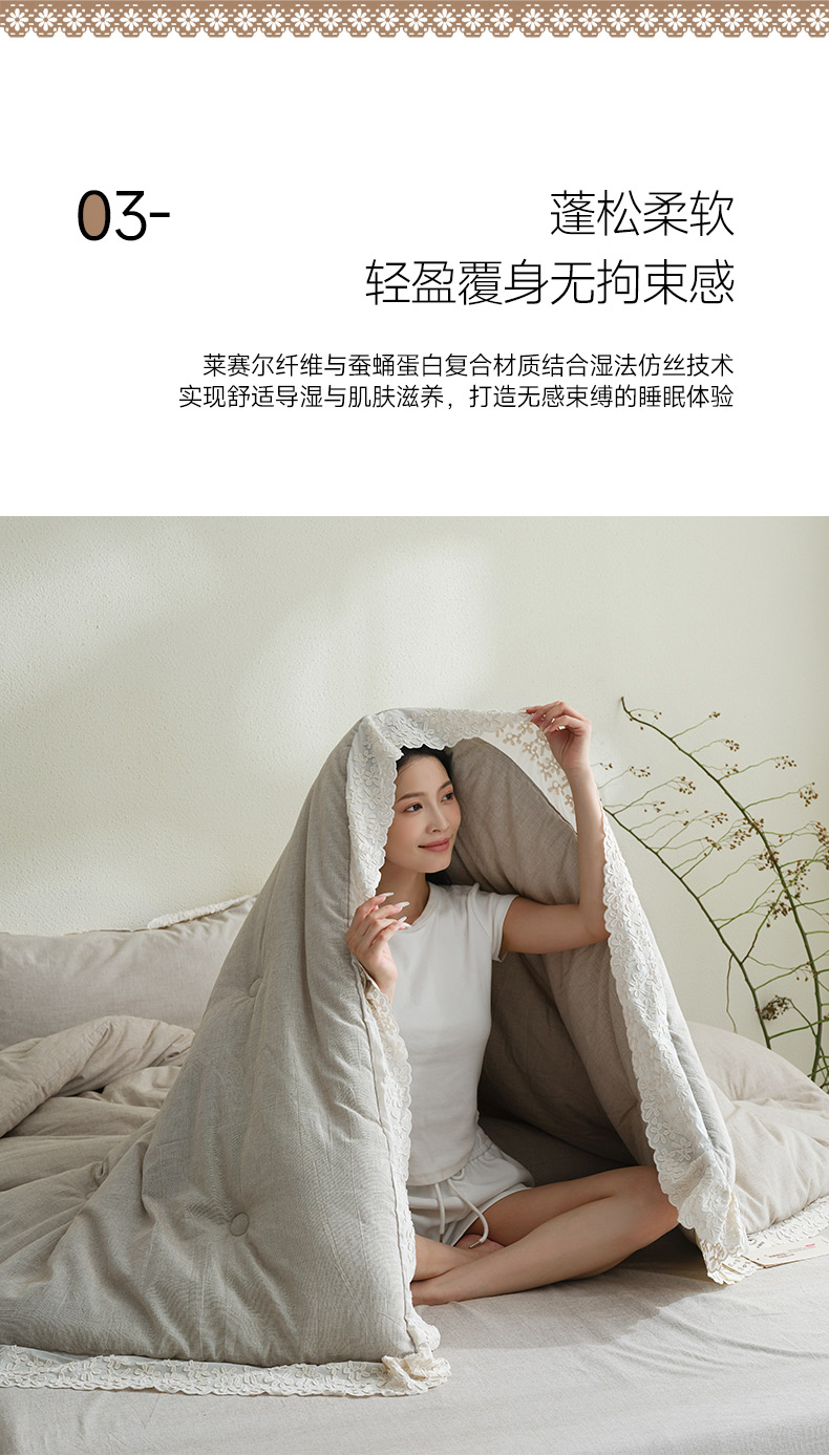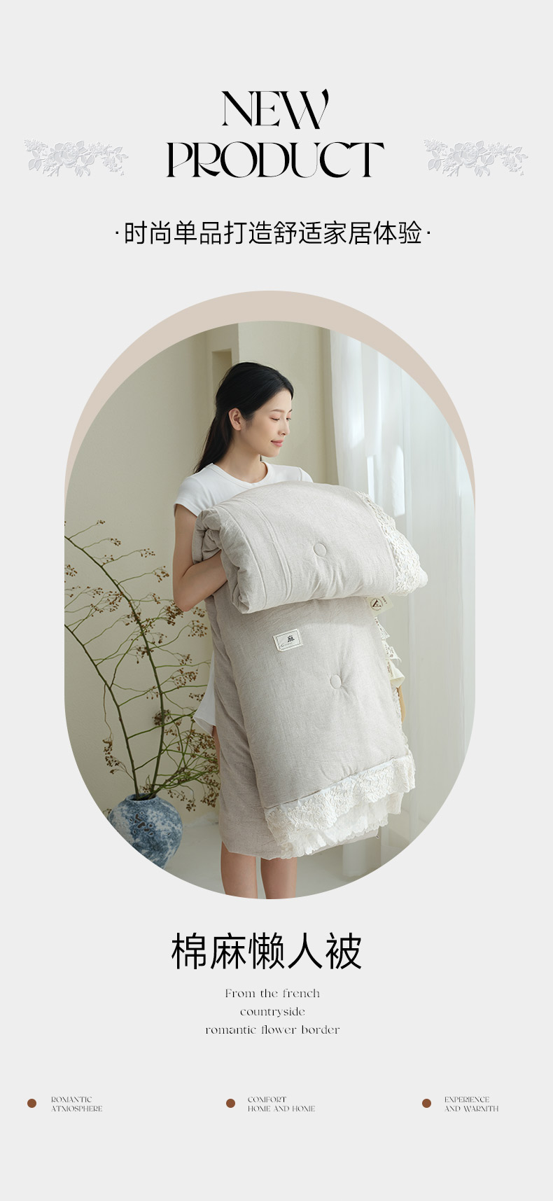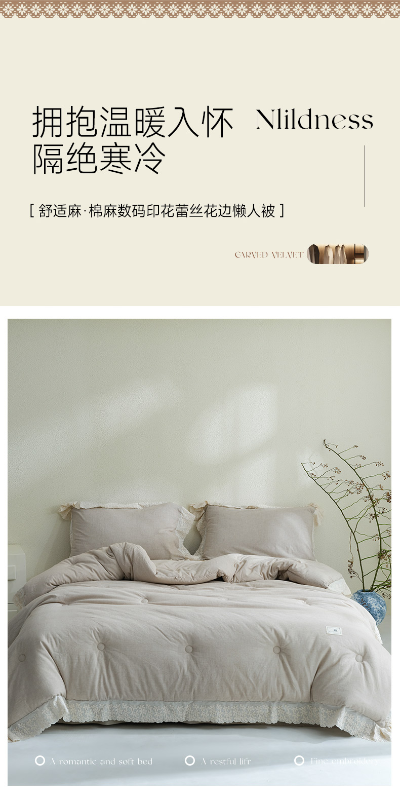商品名称:桂雅居 2025新款舒适麻棉麻数码印花蕾丝花边懒人被被子被芯 麻本色
