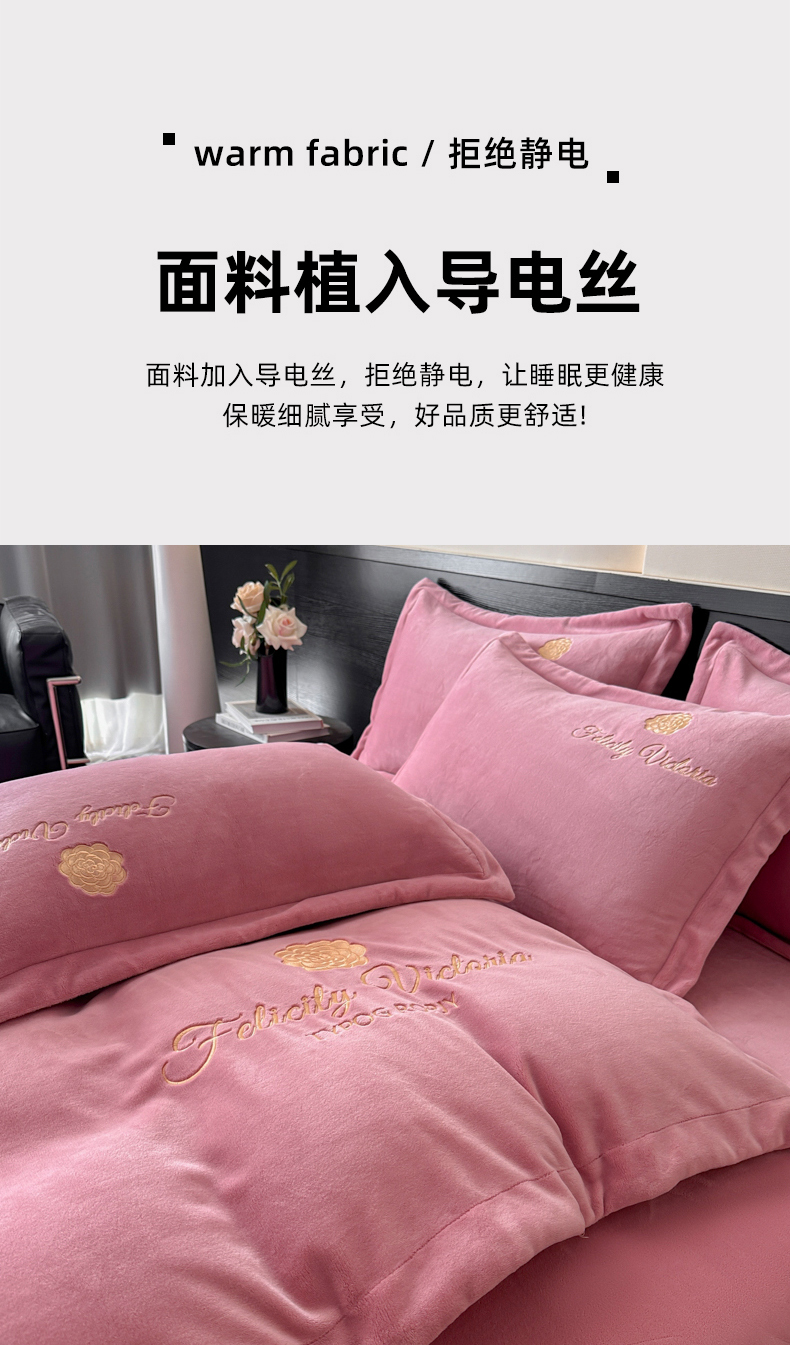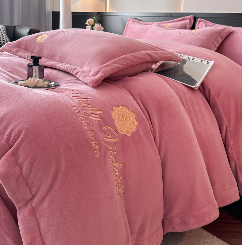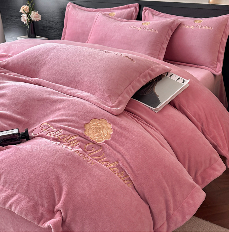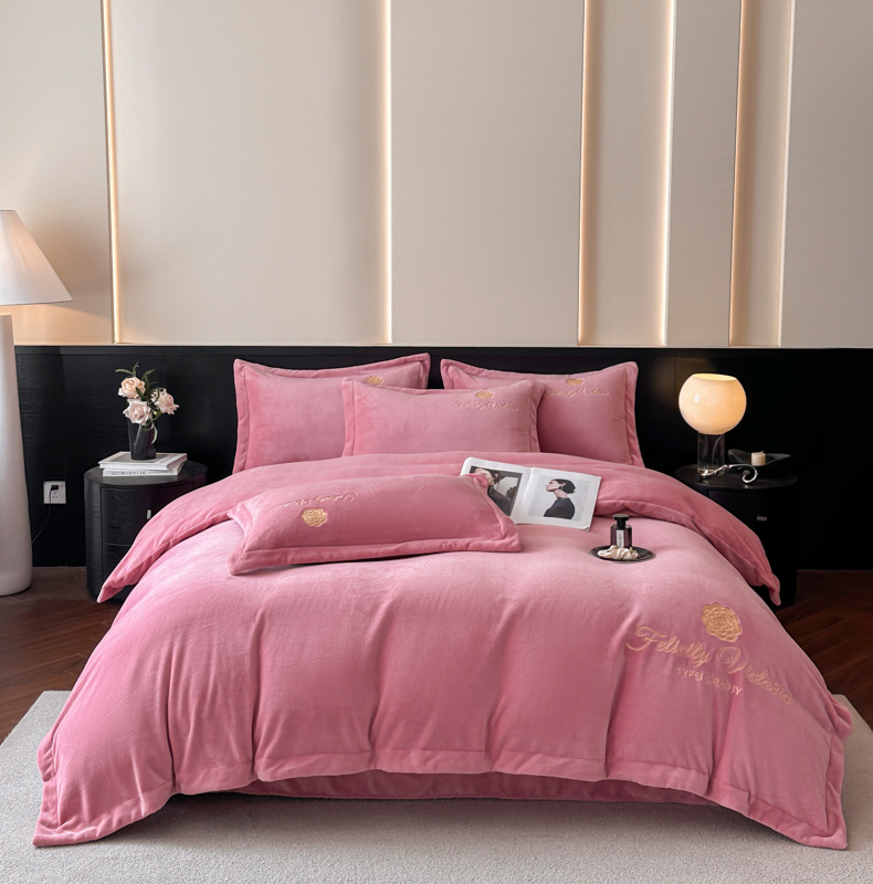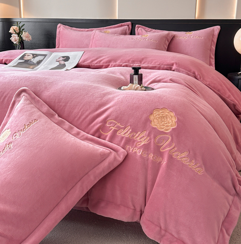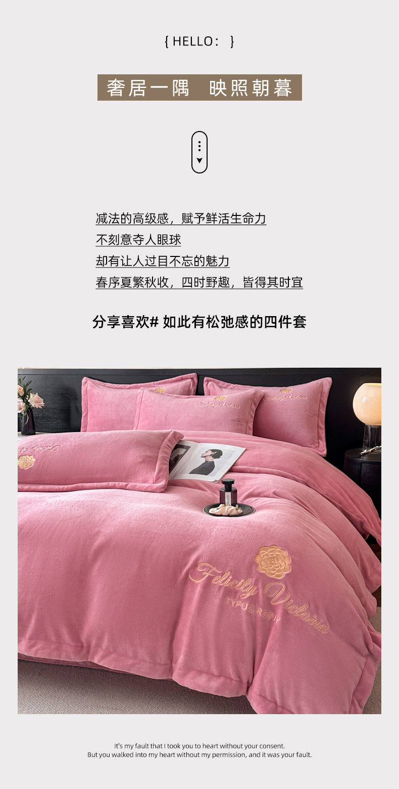 鸿织源家纺 2025新款230g全消光牛奶绒刺绣四件套 豆沙,豆沙