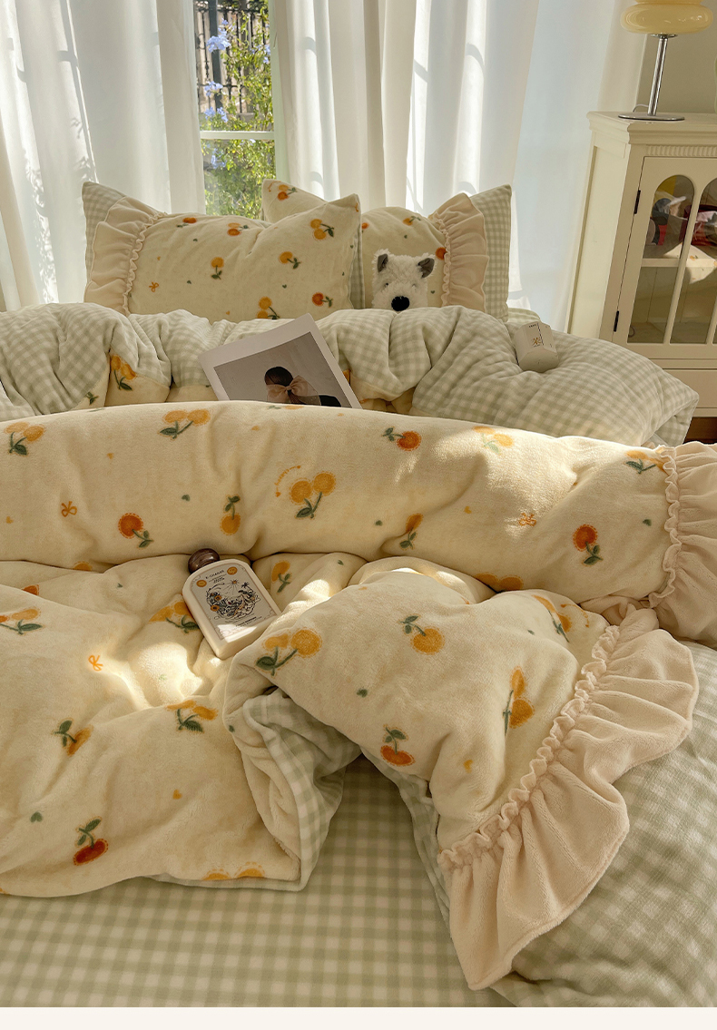 (总)瑞莱 2025冬季创意花边A类牛奶绒四件套套件,蓝枝小狗,雪中梅,奶油樱桃,粉爱心,粉黑蝴蝶结,粉蝴蝶结,黄粉爱心,蓝黑蝴蝶结,蓝蝴蝶结