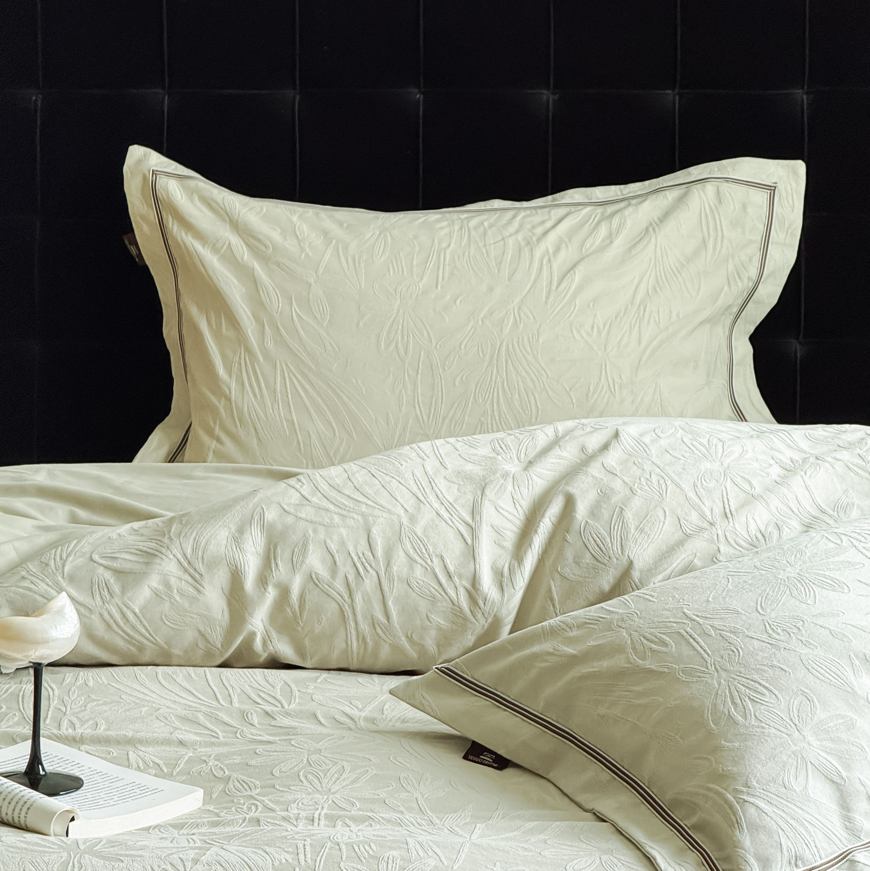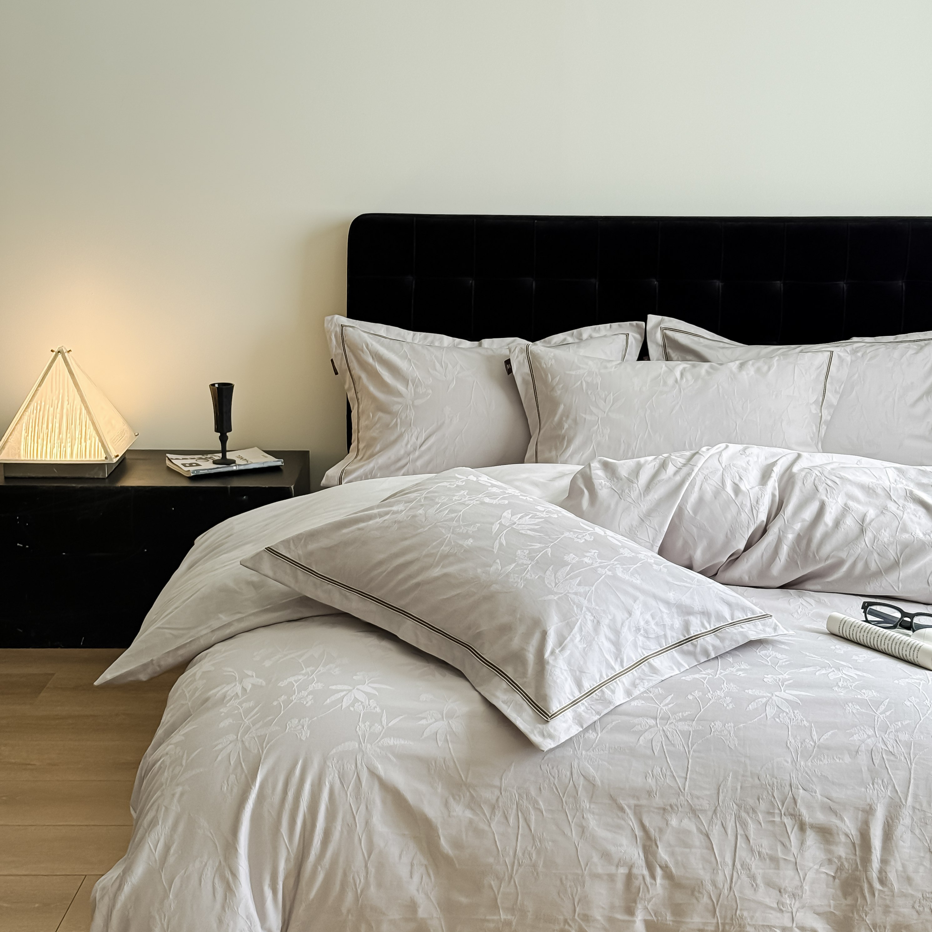 商品名称:于果 2025新款全棉纯棉亮面立体浮雕磨毛四件套 岁月留声-金属灰