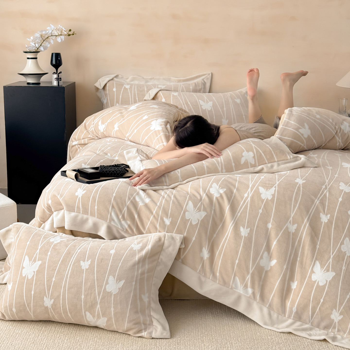 (总)若未家居 LOVEWE HOUSE 2025新款蝴蝶风仿真貂绒床盖四件套A版400克B版260克-月光女神,月光女神 米杏,月光女神 星空灰