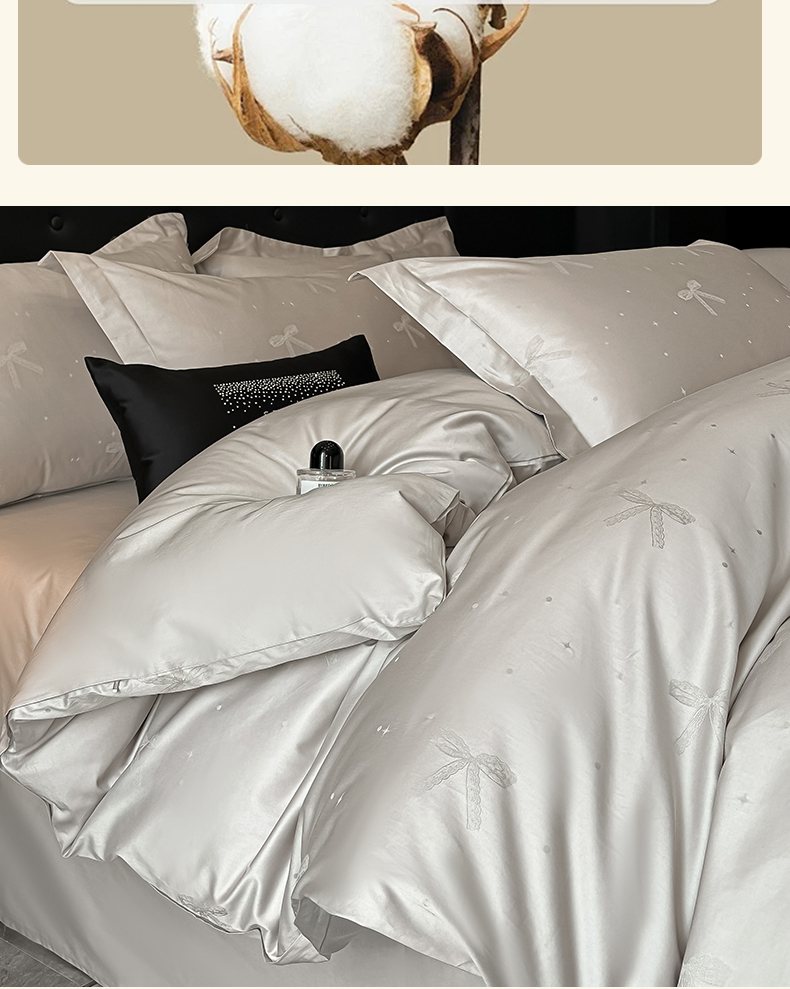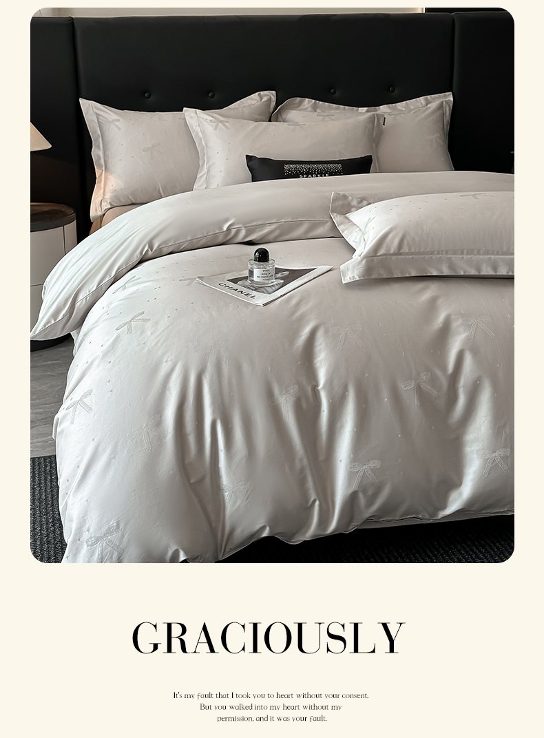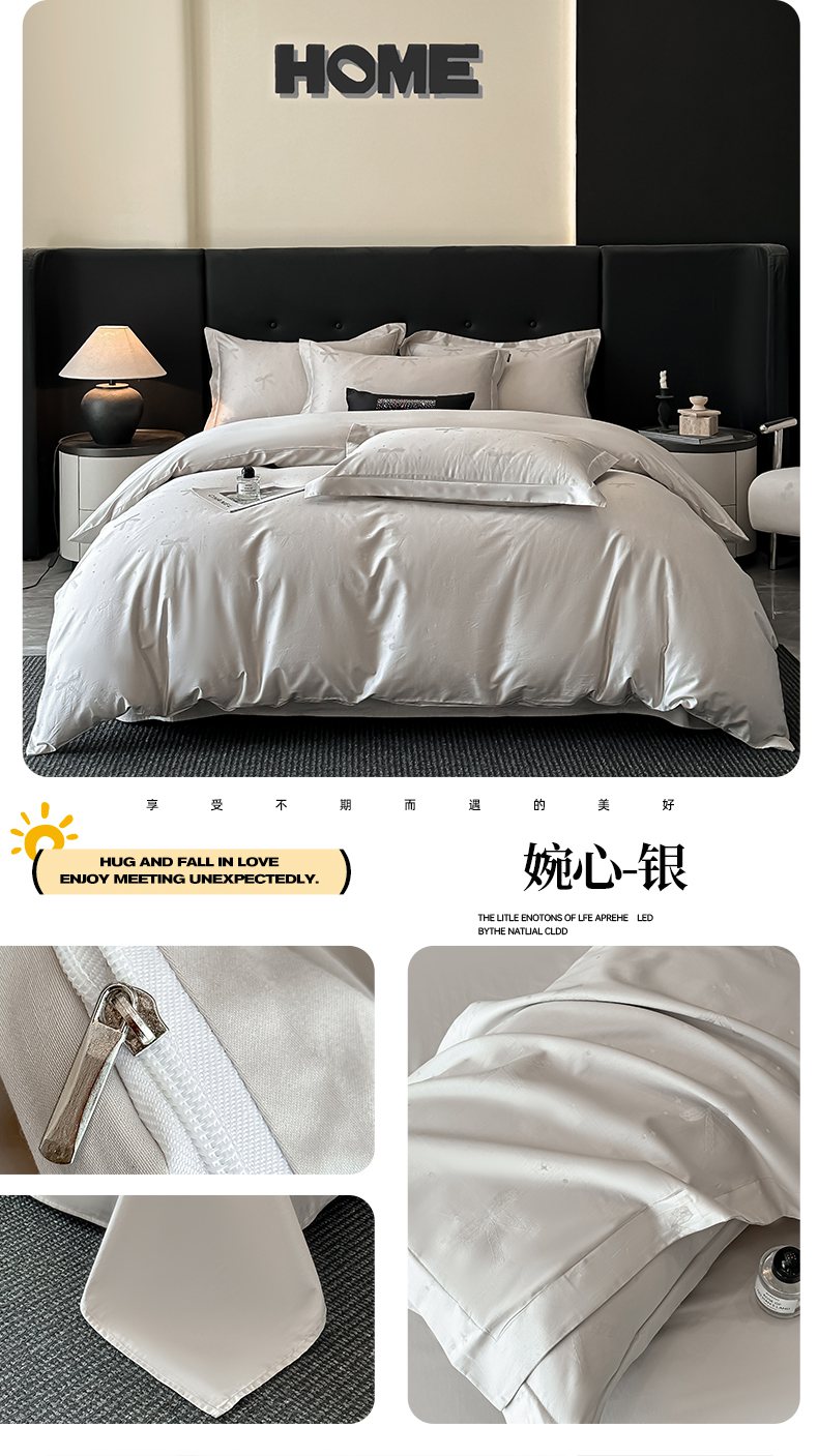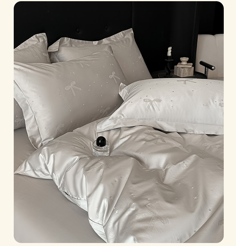 商品名称:梵克保罗 2025春夏新品50S长绒棉轻奢提花四件套 婉心-银