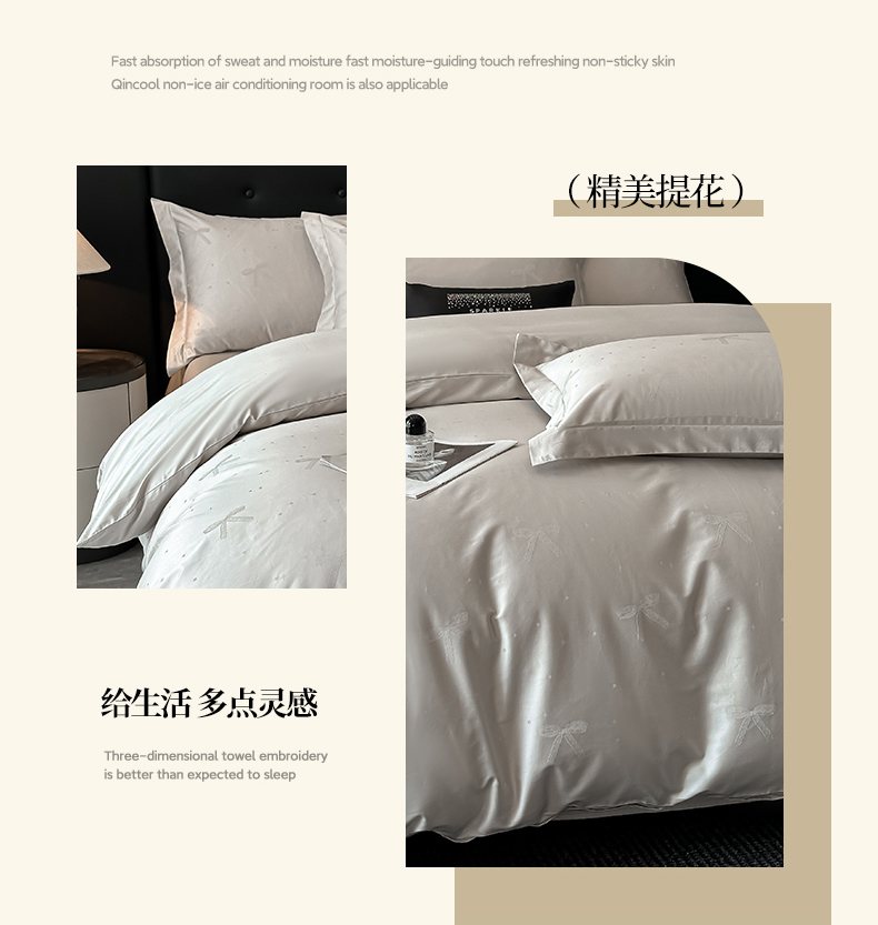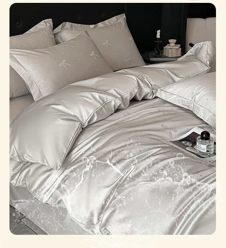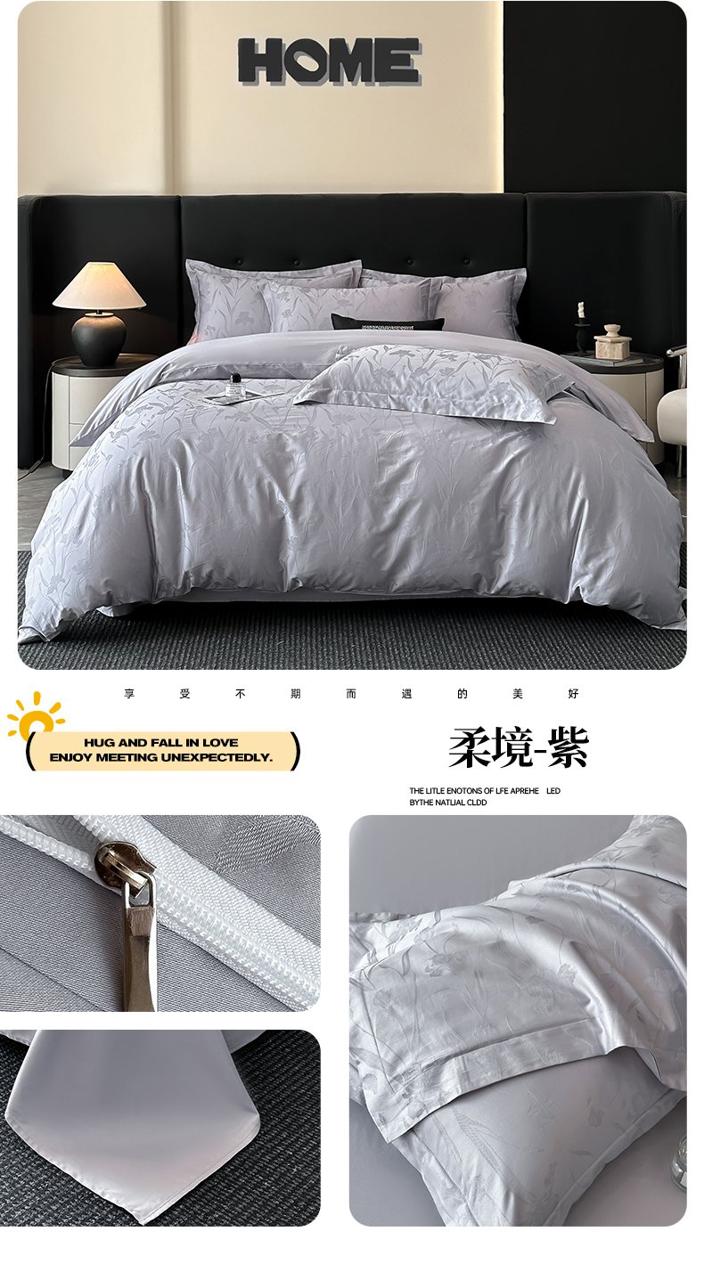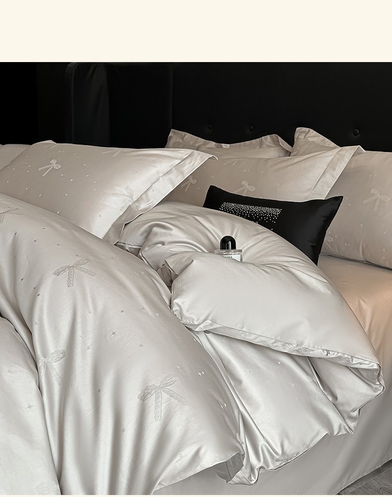 商品名称:梵克保罗 2025春夏新品50S长绒棉轻奢提花四件套 婉心-银