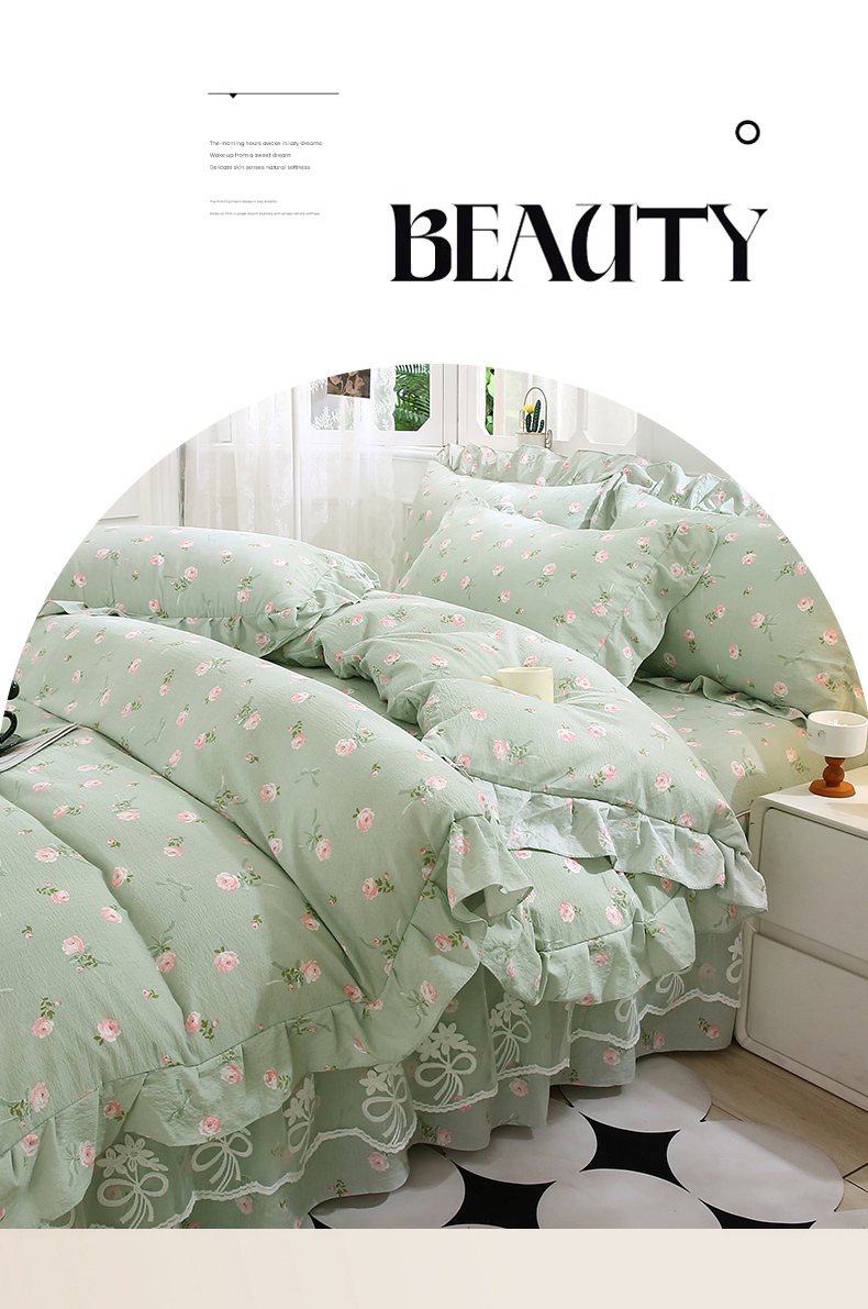 当前位置: 91家纺网 > 商品网购 > 床品套件 > 四件套 > 其它四件套 > 梵克保罗 2025新款双层纱蕾丝花边床裙四件套 落日暮年-绿