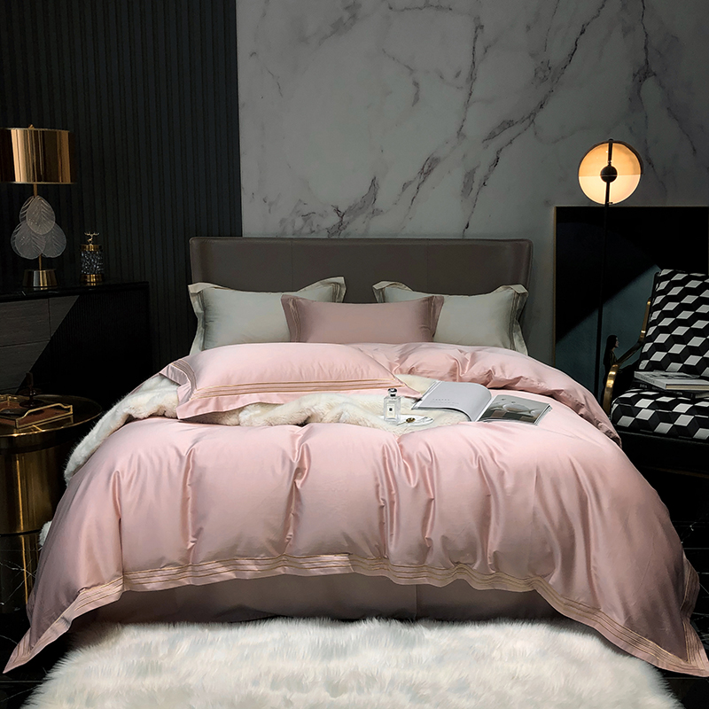 商品名称:梵克保罗 2025春夏新款全棉长绒棉100支三线绣刺绣四件套 儒雅粉