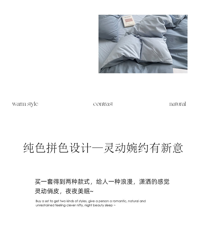 当前位置: 91家纺网 > 商品网购 > 床品套件 > 四件套 > 水洗棉四件套 > 梵克保罗 2025新款ins风小红书同款纯色双拼水洗棉四件套学生三件套亲肤加厚磨毛四件套混搭系列-单被套单枕套 双拼-月光雾蓝
