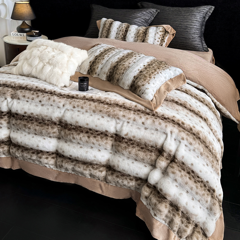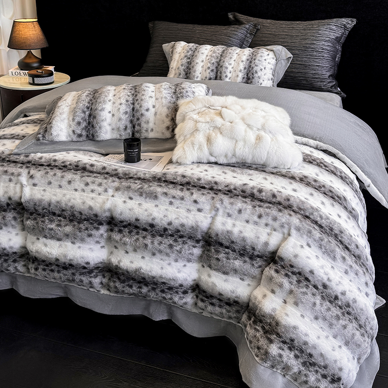 (总)若未家居 LOVEWE HOUSE 2025新款轻奢意式风仿真貂绒床盖四件套A版400克B版260克-北国雪乡,北国雪乡 暗夜灰,北国雪乡 咖,北国雪乡 驼