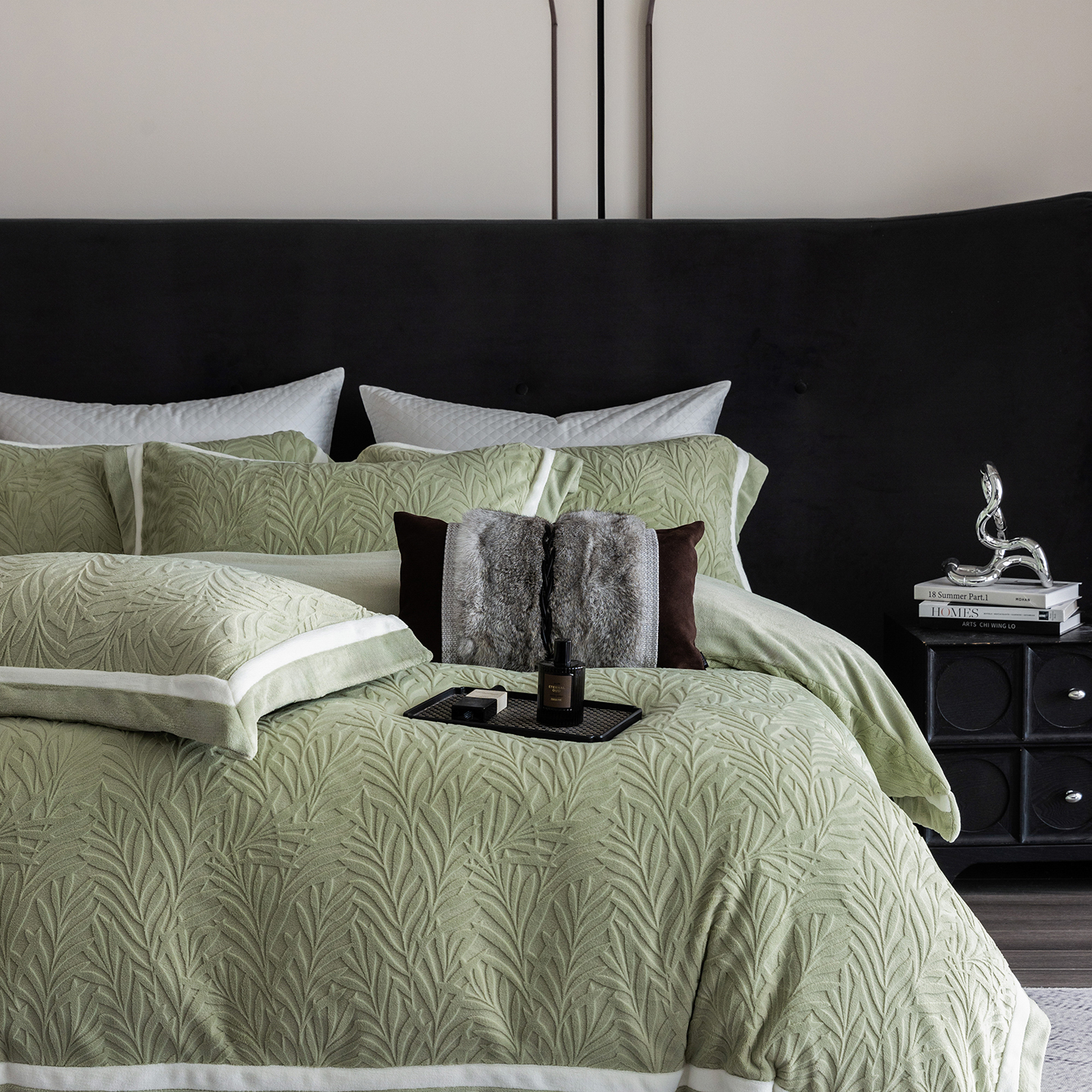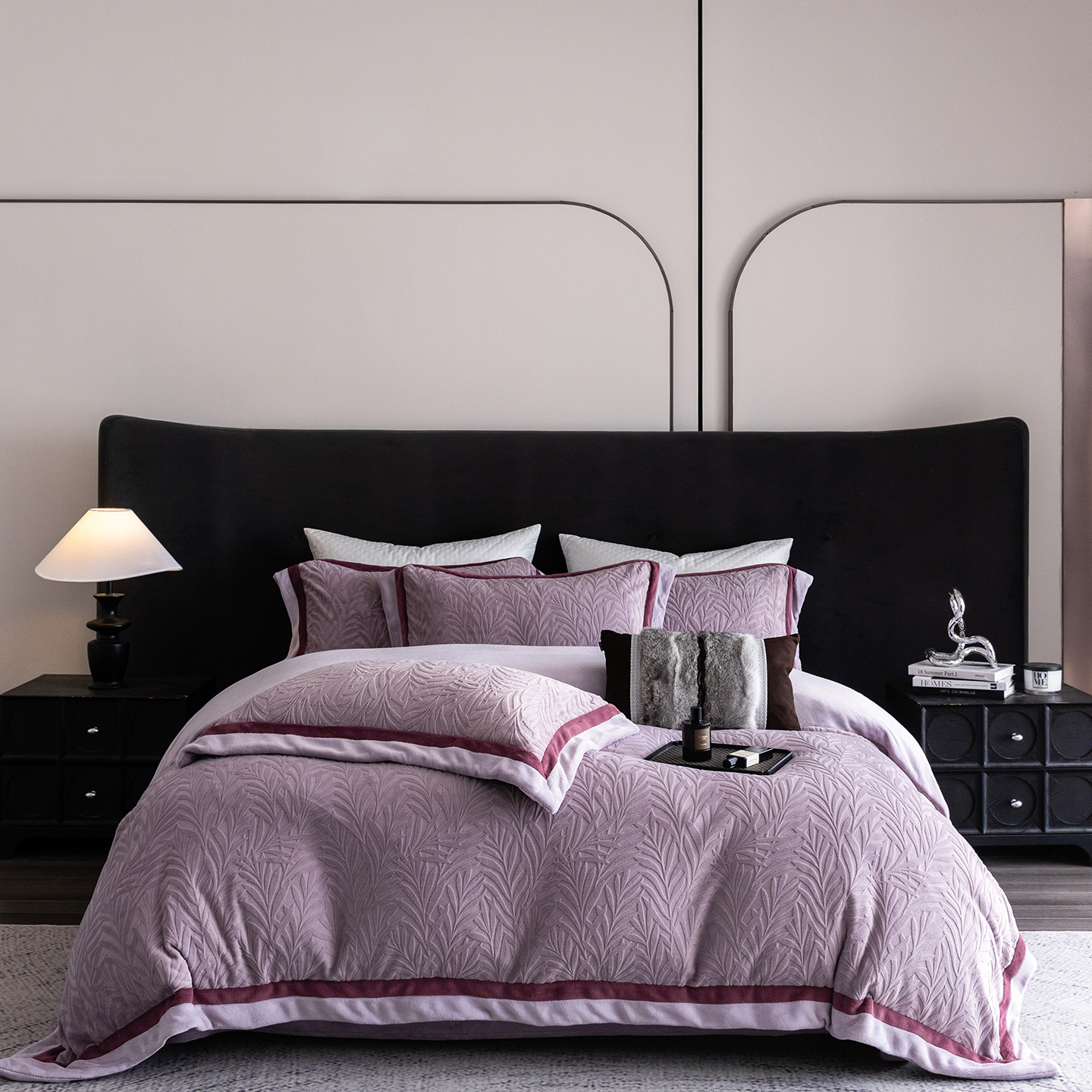 商品名称:瑞雪家居 2025新款亲肤舒适牛奶绒四件套-榈叶系列 榈叶-豆蔻粉