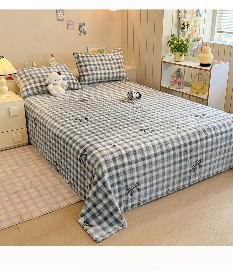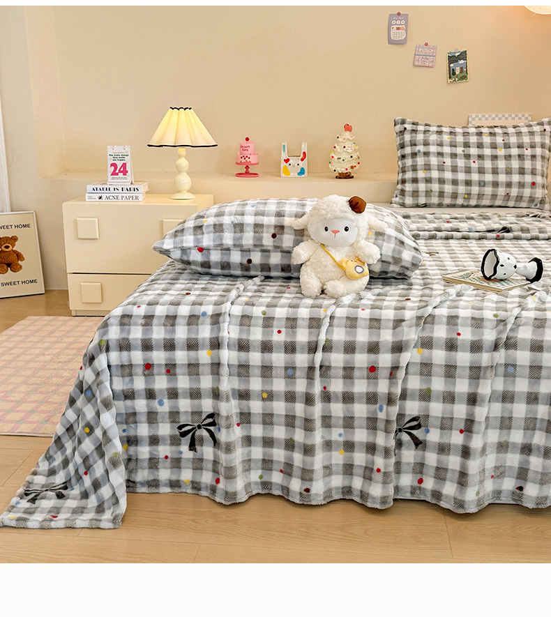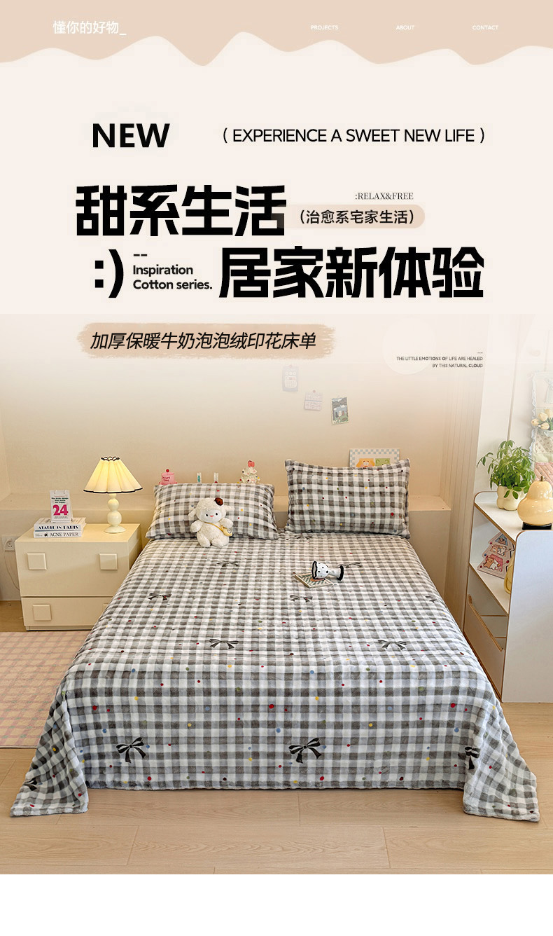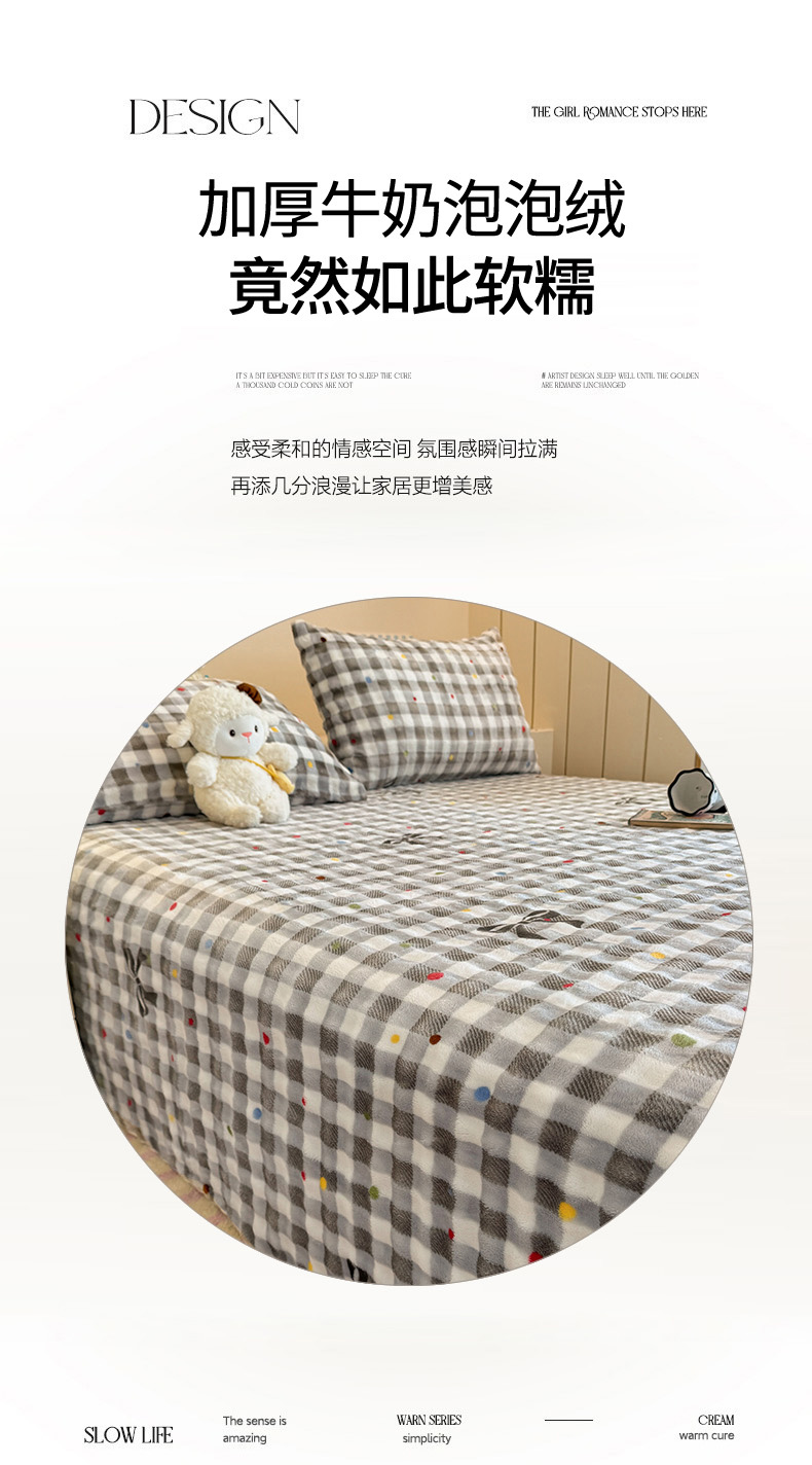 • 91家纺网 家纺一手货源 找家纺 绣女坊 2025新款A类高克重牛奶绒泡泡绒印花床单单件冬季保暖毛绒毯子绒床单三件套 元气格子