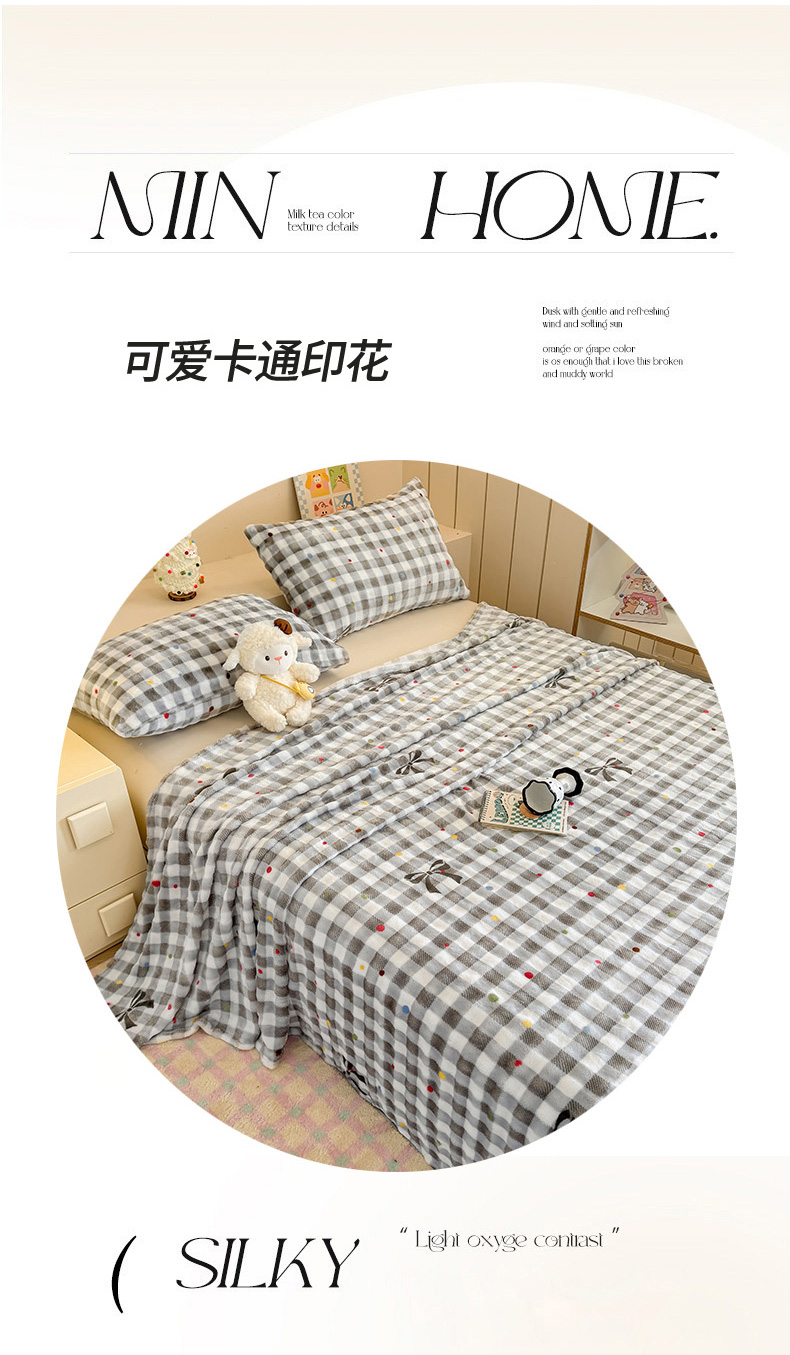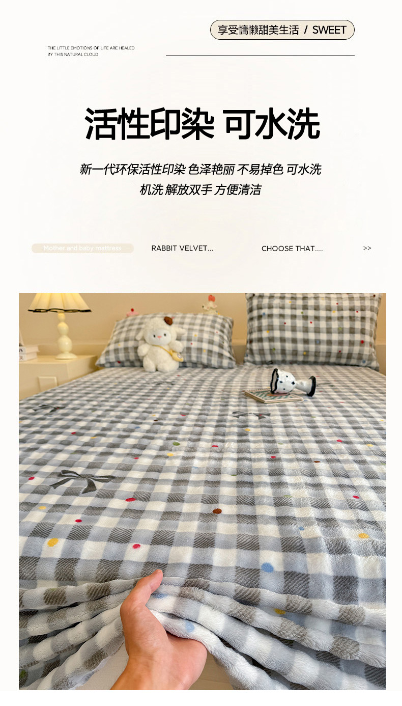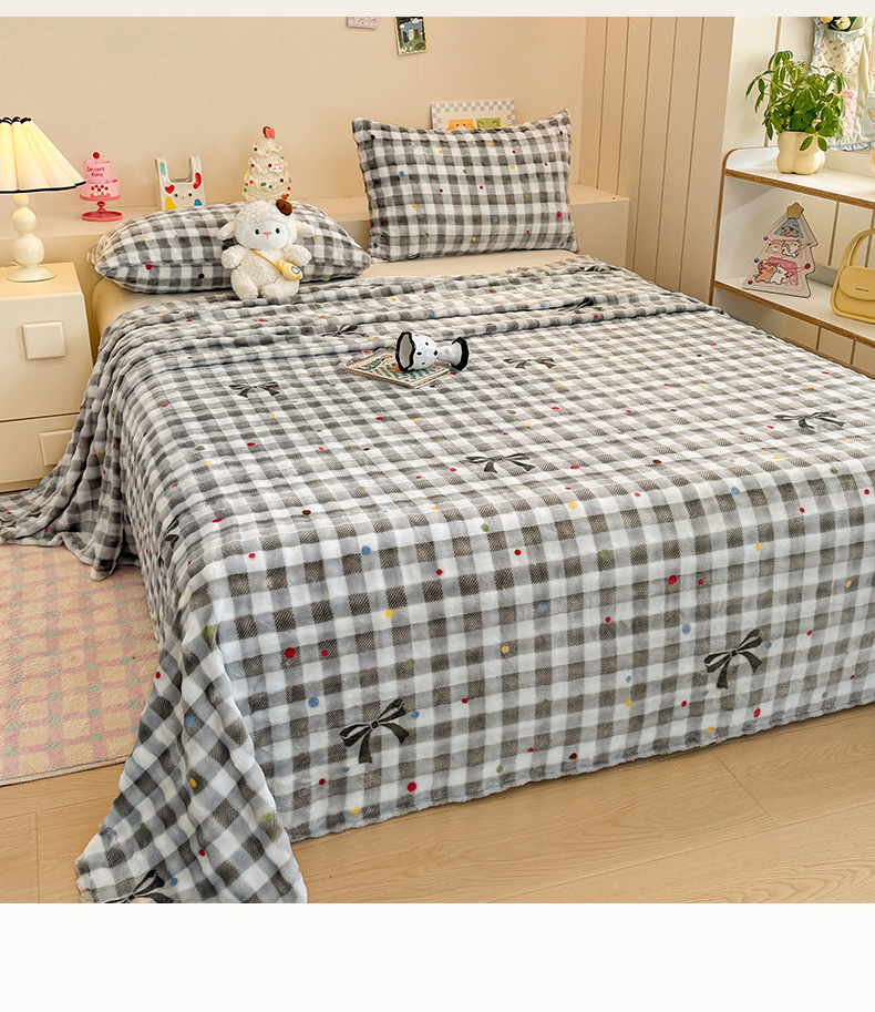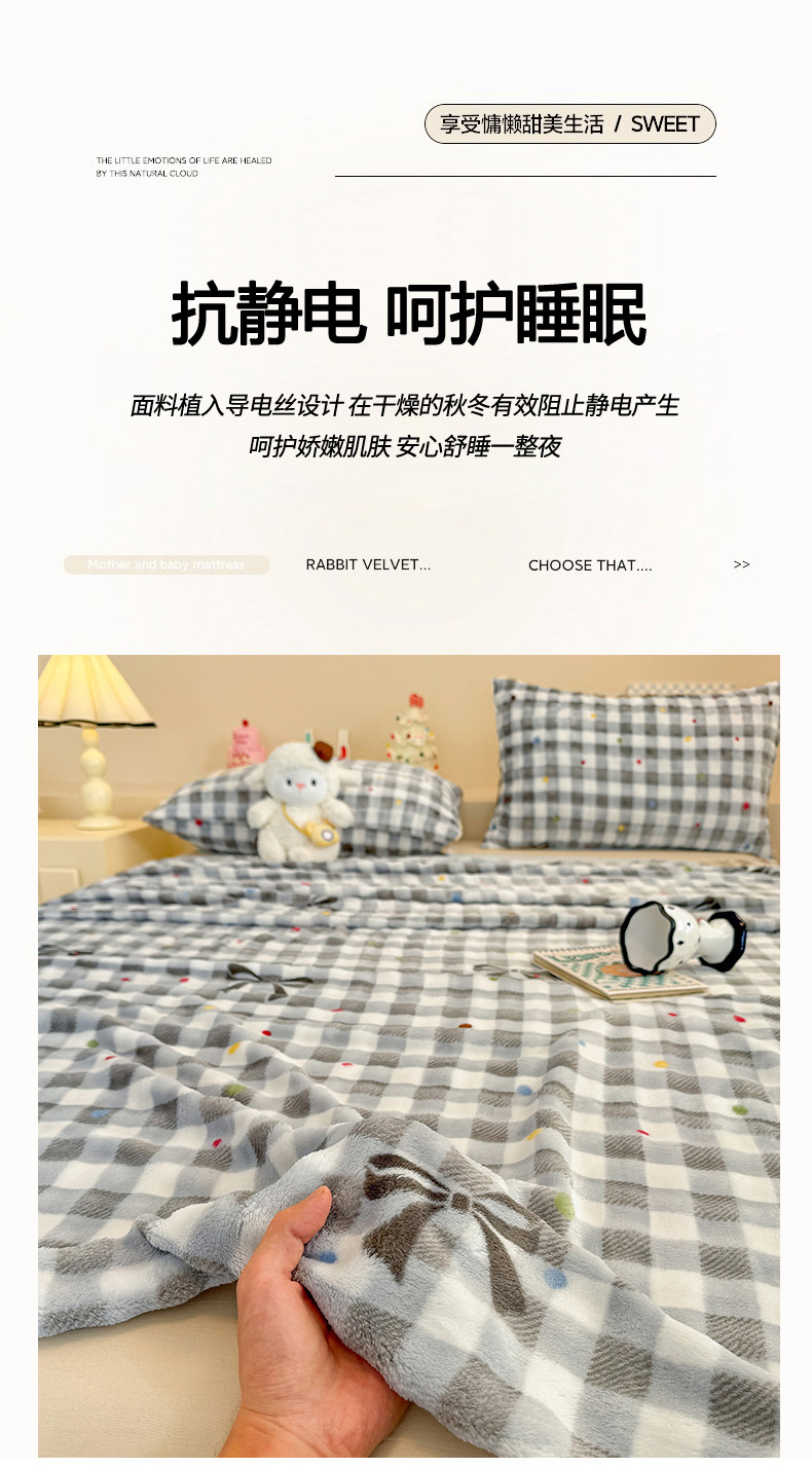 • 91家纺网 家纺一手货源 找家纺 绣女坊 2025新款A类高克重牛奶绒泡泡绒印花床单单件冬季保暖毛绒毯子绒床单三件套 元气格子