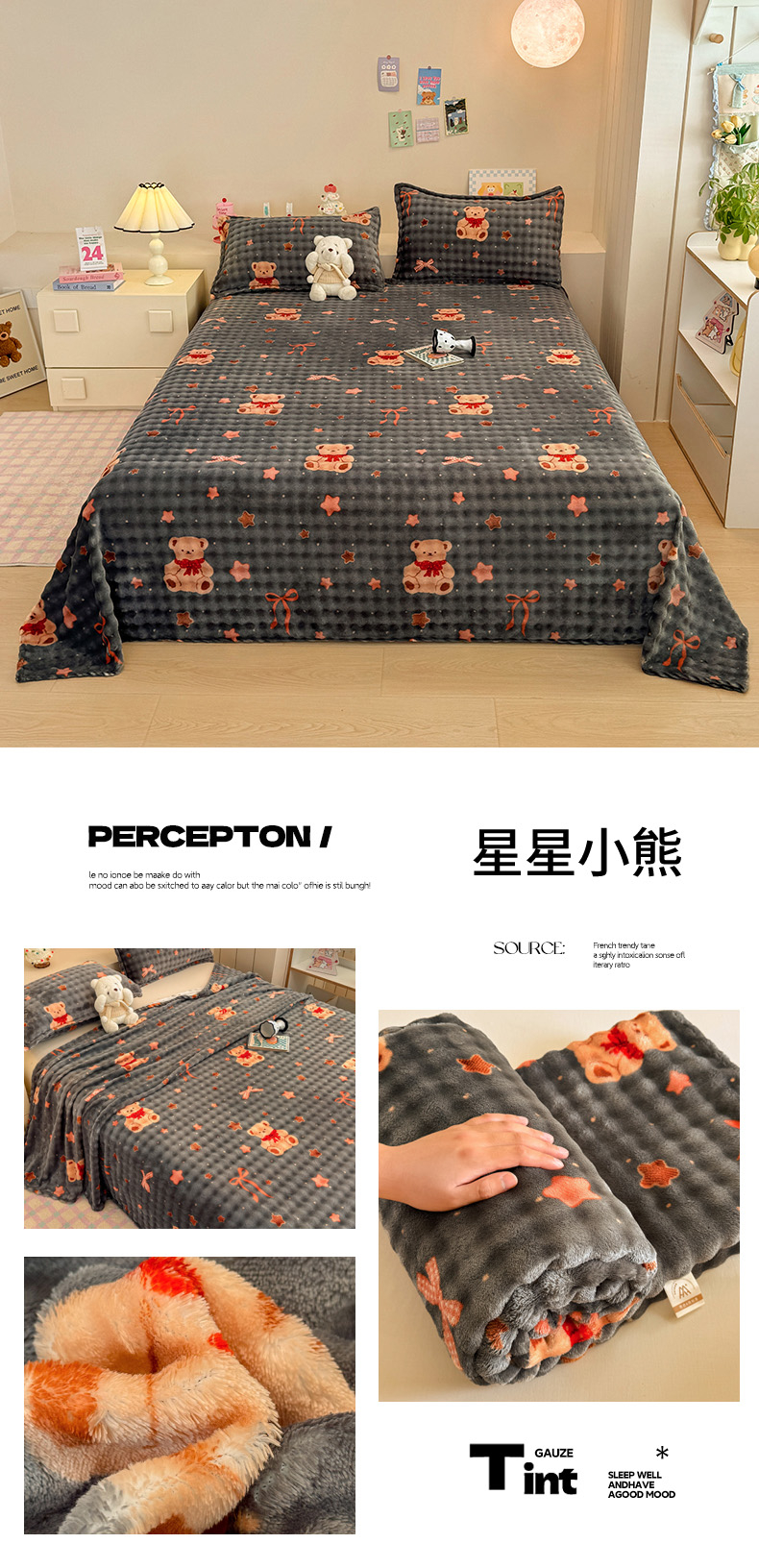 (总)绣女坊 2025新款A类高克重牛奶绒泡泡绒印花床单单件冬季保暖毛绒毯子绒床单三件套,黄油小熊,爱心kt,爱心蝴蝶结-绿,彩虹樱桃,公主kt,蝴蝶结-兰,画笔卡通,简单条格,维尼日记,星星小熊,元气格子,追梦努比