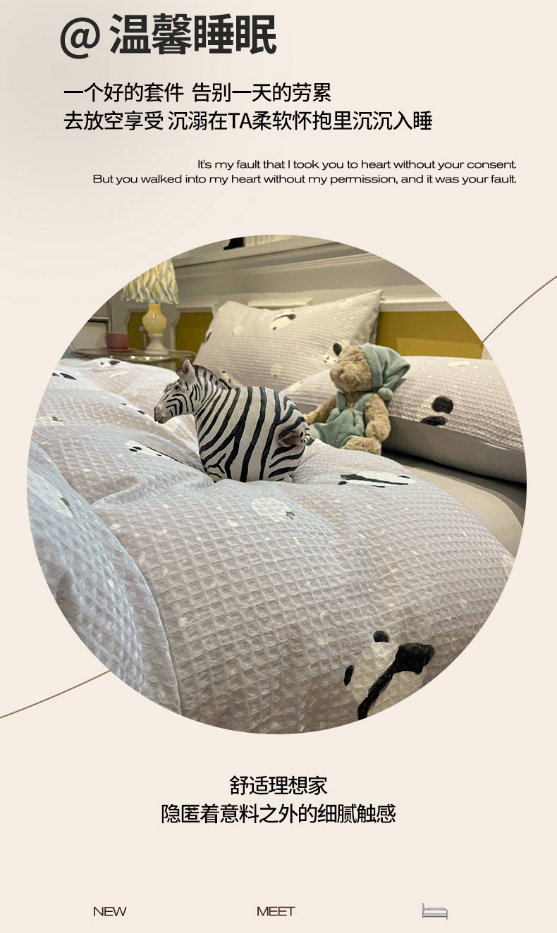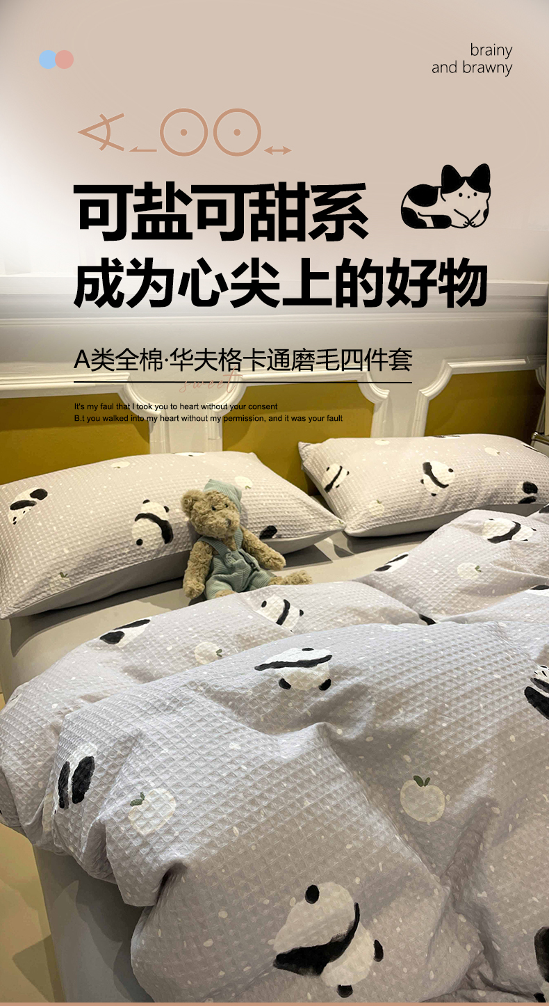 商品名称:(总)小叮当家纺仓储工厂店 2025新款提供买家秀爆款花型不断货全棉纯棉A类华夫格印花磨毛四件套