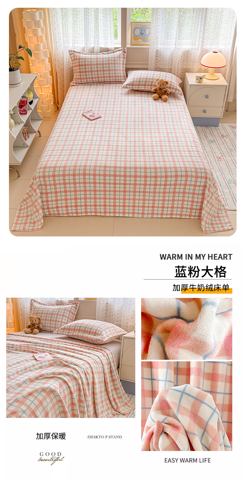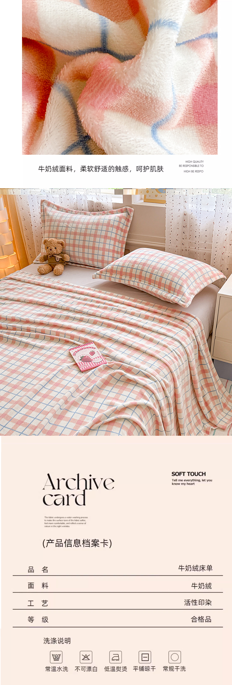 当前位置: 91家纺网 > 商品网购 > 床上用品 > 床单 > 丽美人 2025新款高克重印花牛奶绒无印风床单款(A类母婴级面料) 蓝粉大格
