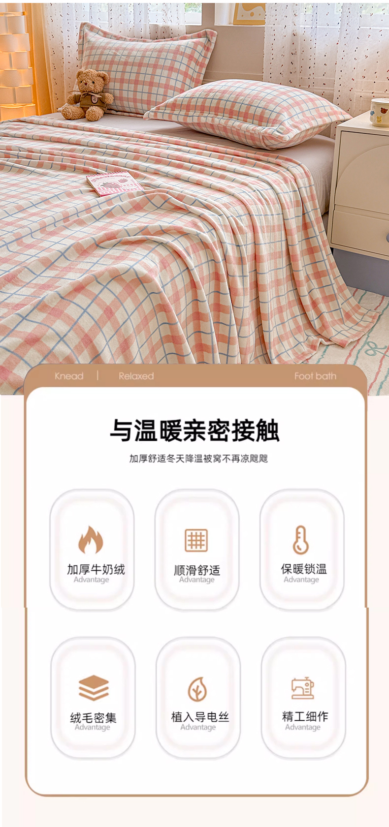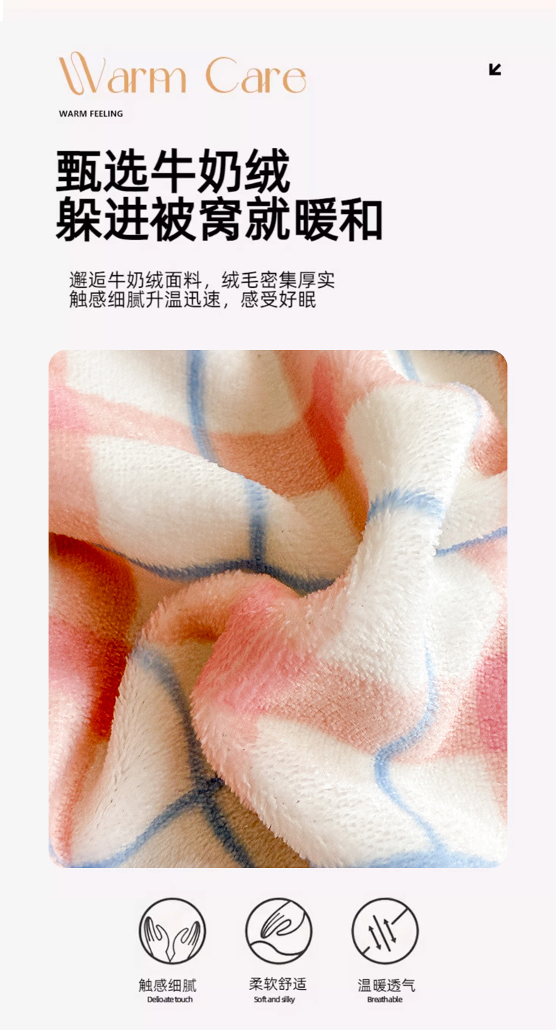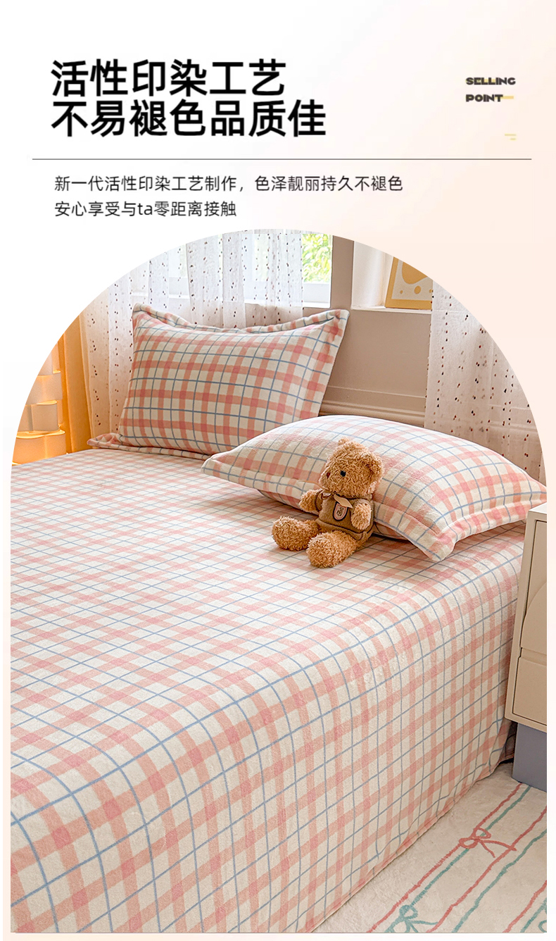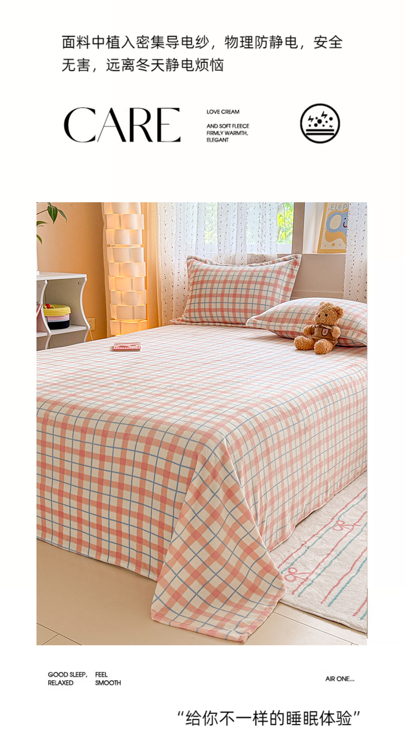 • 91家纺网 家纺一手货源 找家纺 丽美人 2025新款高克重印花牛奶绒无印风床单款(A类母婴级面料) 蓝粉大格