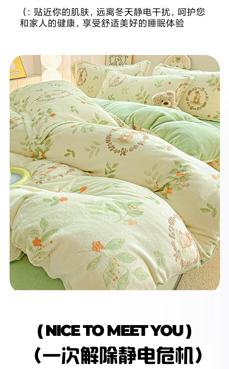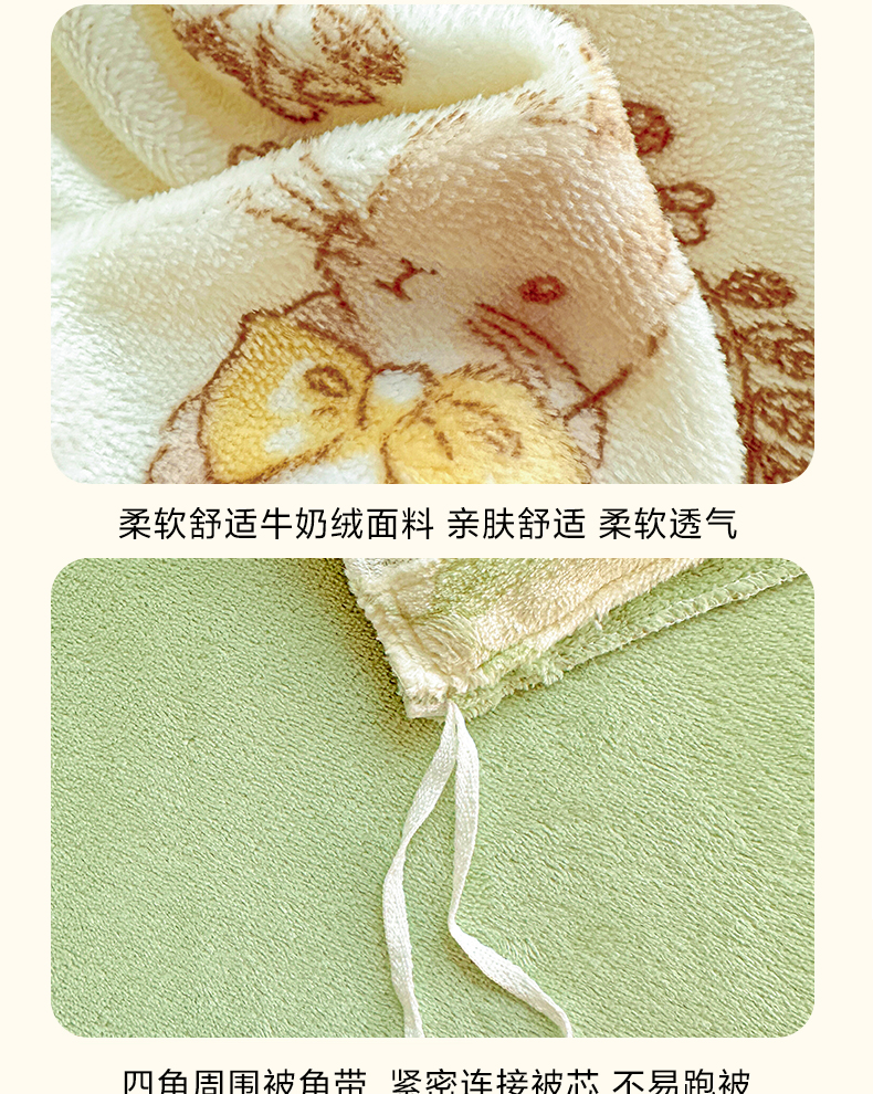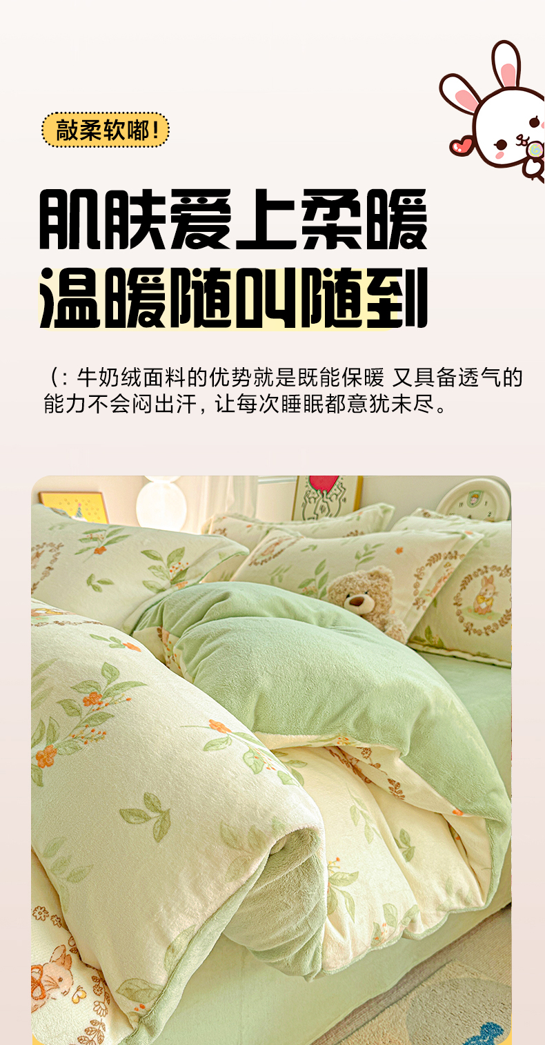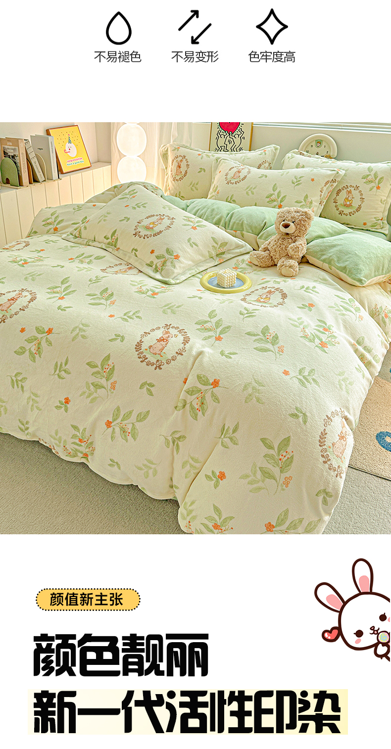 当前位置: 91家纺网 > 商品网购 > 床品套件 > 四件套 > 牛奶绒四件套 > 简一 2025新款小清新牛奶绒印花四件套-卡通系列 叶畔兔语