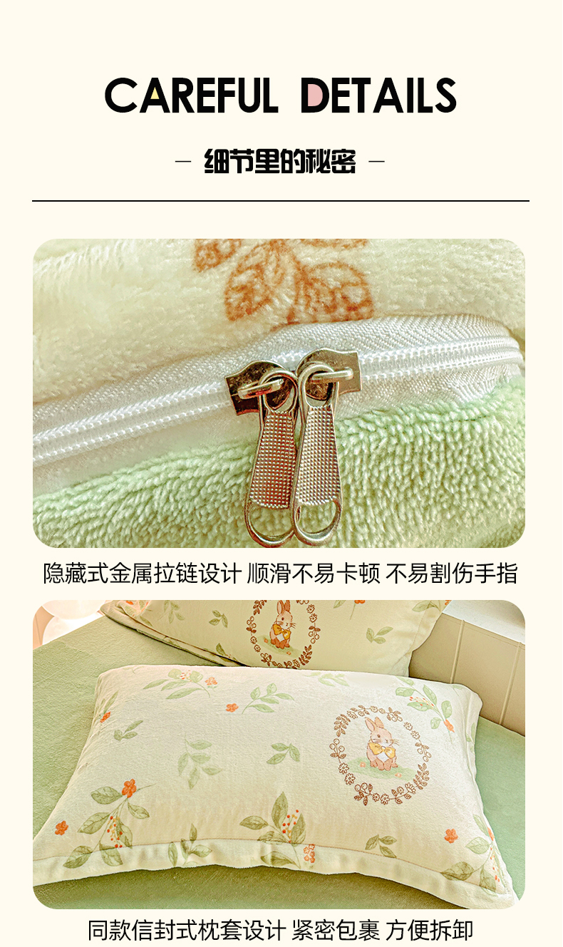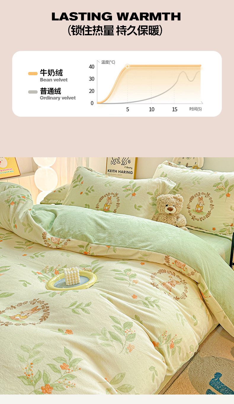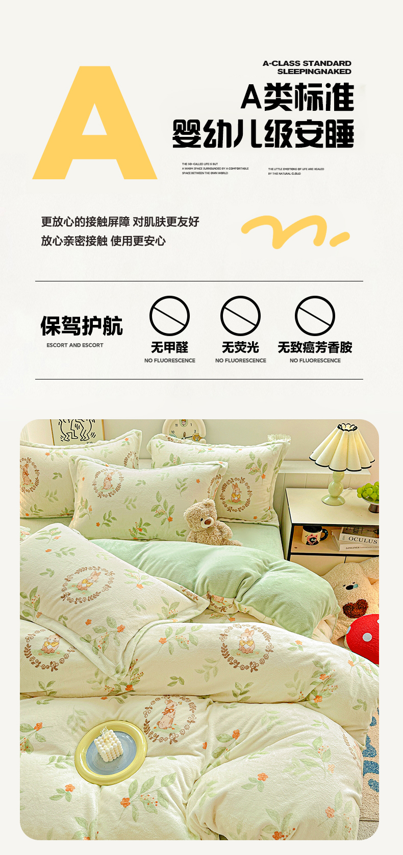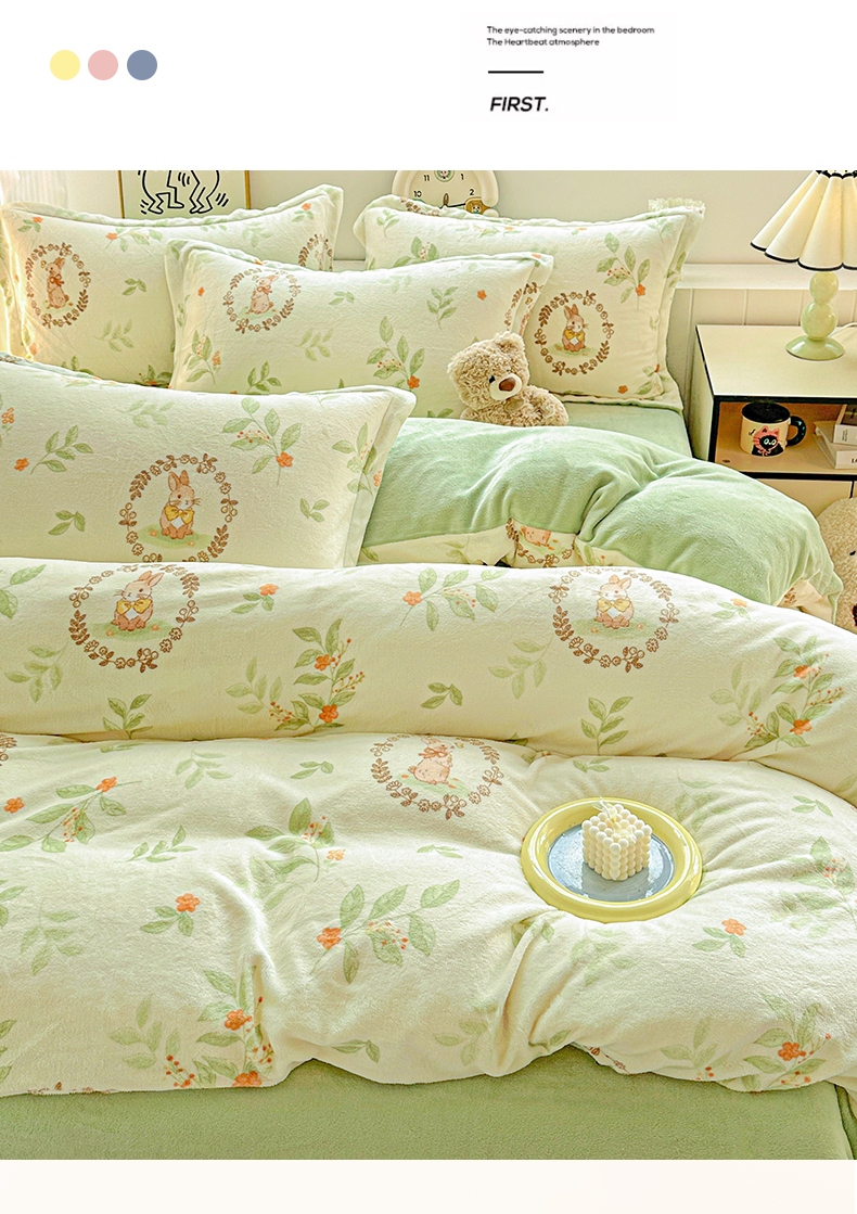 当前位置: 91家纺网 > 商品网购 > 床品套件 > 四件套 > 牛奶绒四件套 > 简一 2025新款小清新牛奶绒印花四件套-卡通系列 叶畔兔语