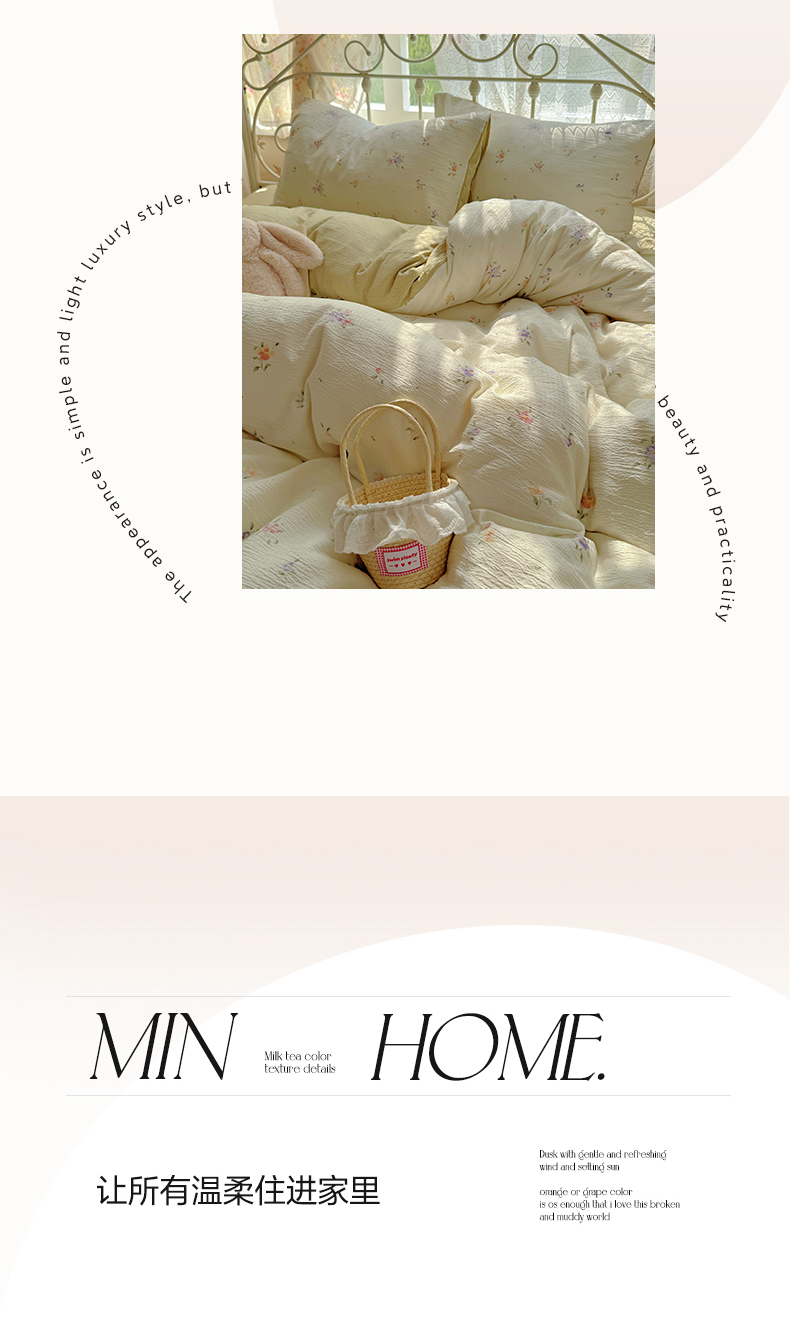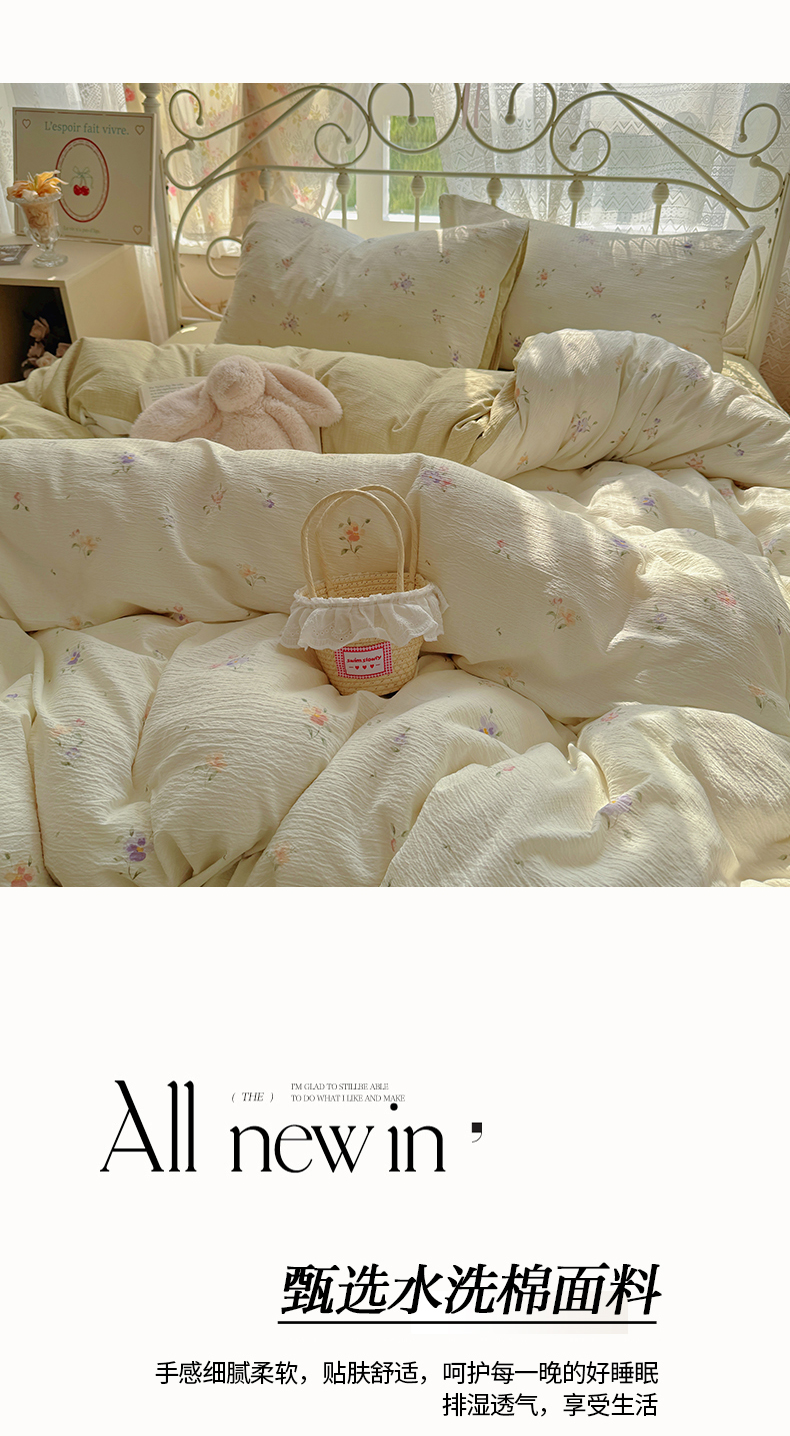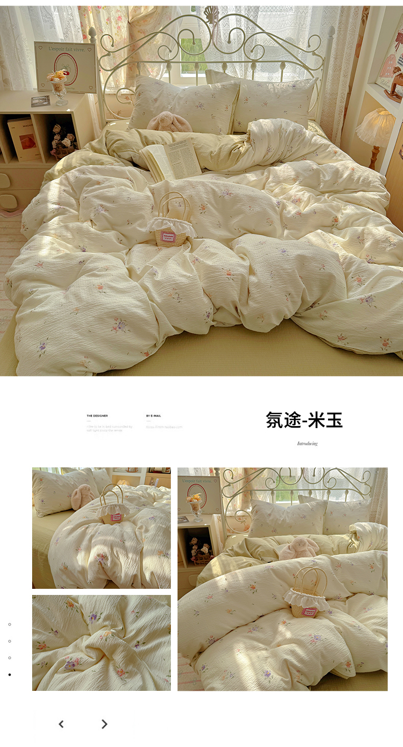 当前位置: 91家纺网 > 商品网购 > 床品套件 > 四件套 > 水洗棉四件套 > 阿曼达 2025爆款云感木m透气柔软印花可爱卡通软糯皱皱亲肤四件套 氛途-米玉