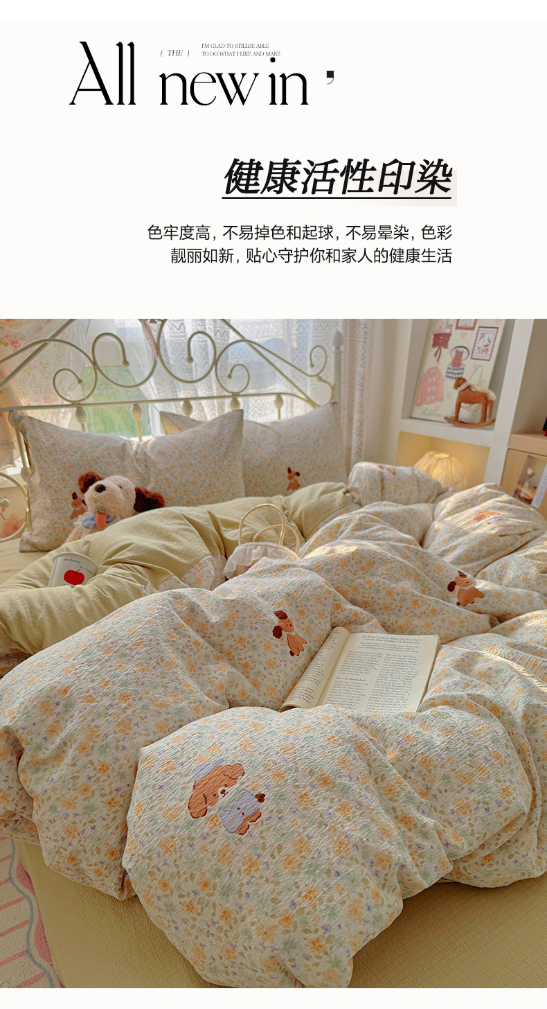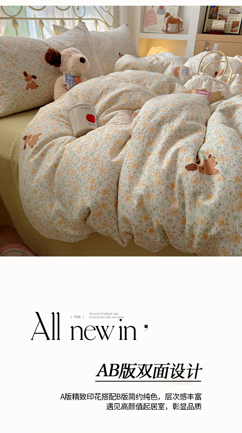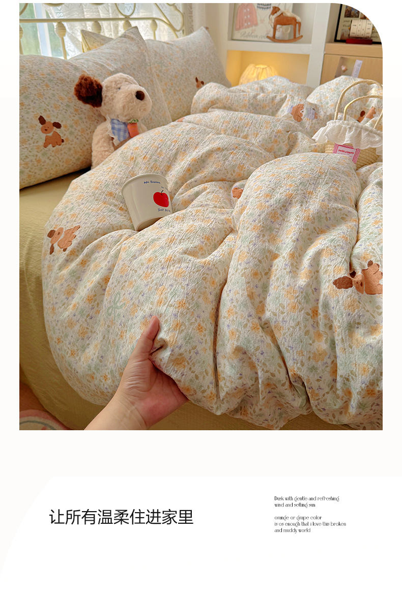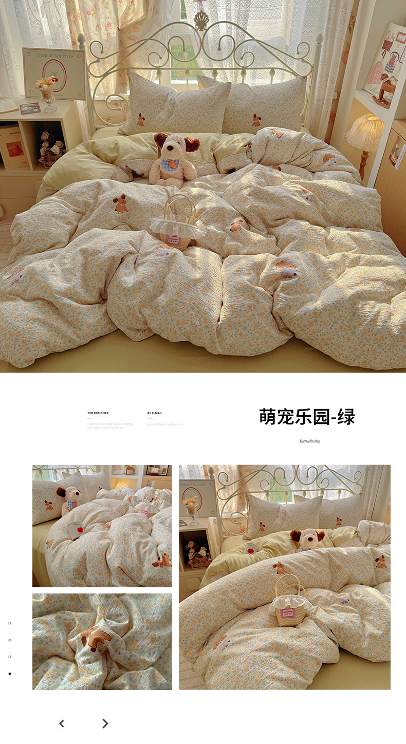 当前位置: 91家纺网 > 商品网购 > 床品套件 > 四件套 > 水洗棉四件套 > 阿曼达 2025爆款云感木m透气柔软印花可爱卡通软糯皱皱亲肤四件套 萌宠乐园-绿