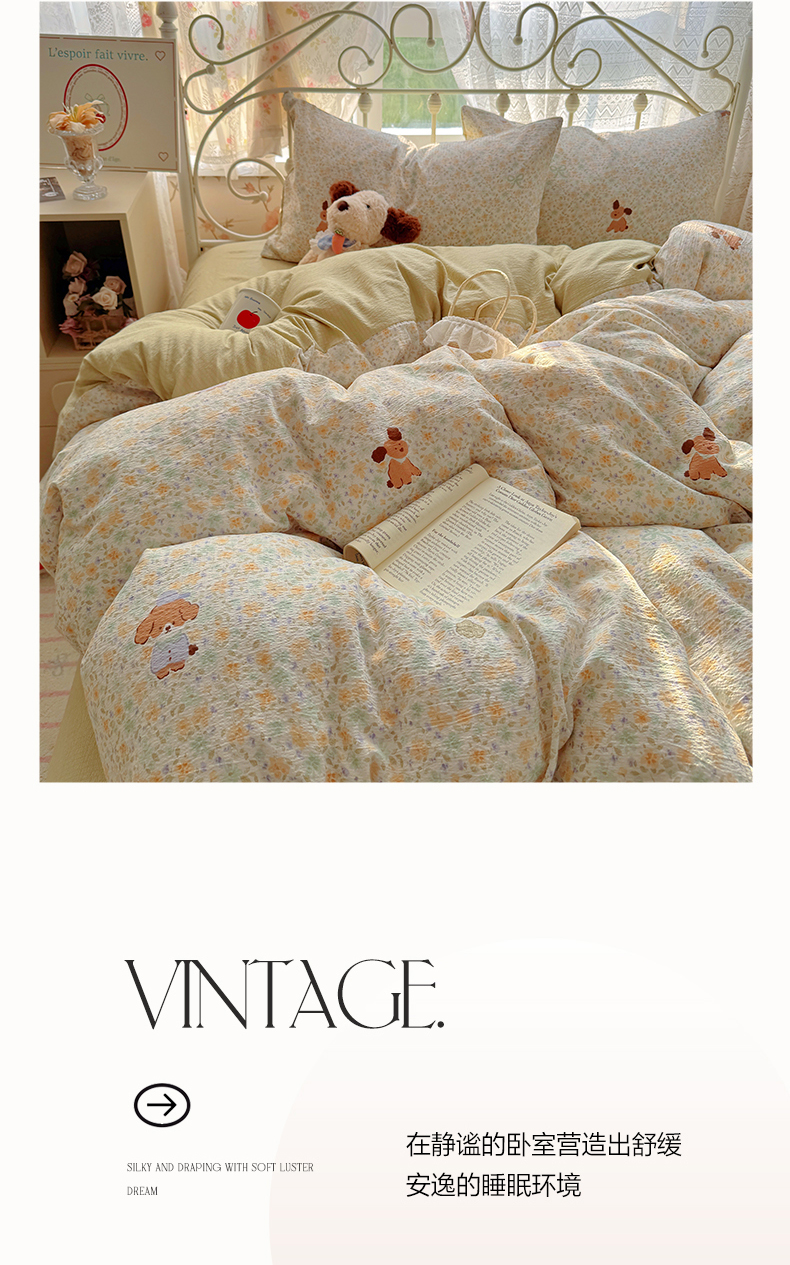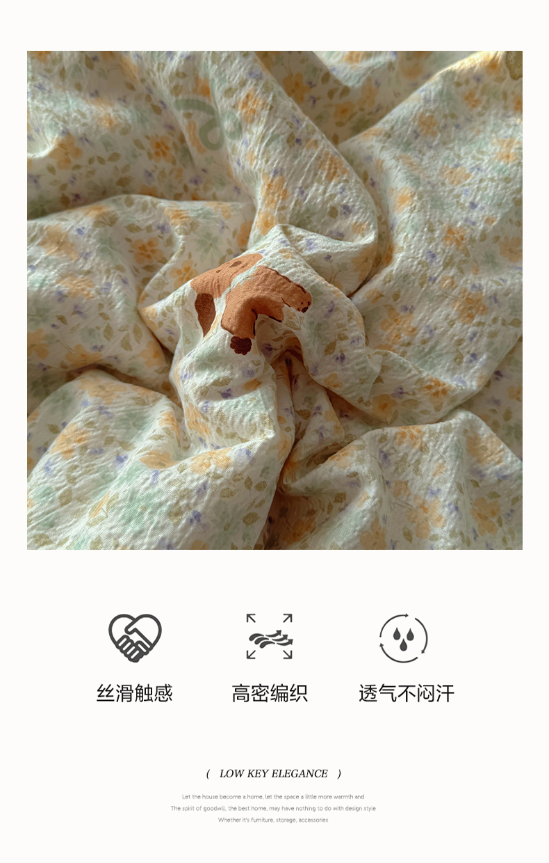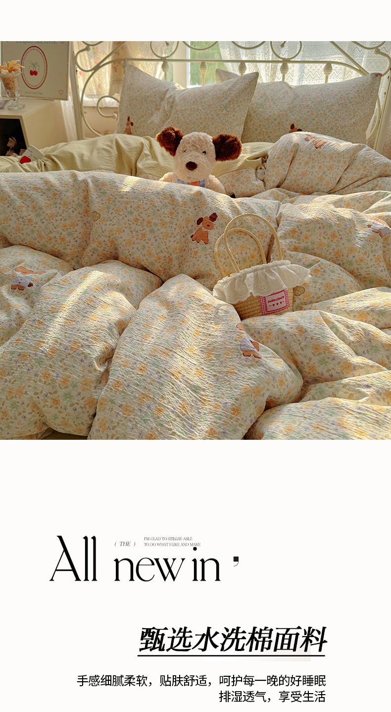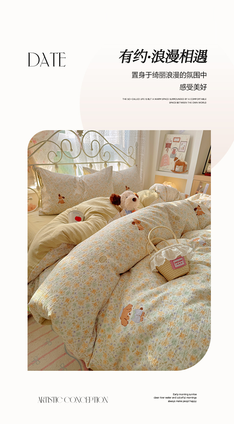 当前位置: 91家纺网 > 商品网购 > 床品套件 > 四件套 > 水洗棉四件套 > 阿曼达 2025爆款云感木m透气柔软印花可爱卡通软糯皱皱亲肤四件套 萌宠乐园-绿