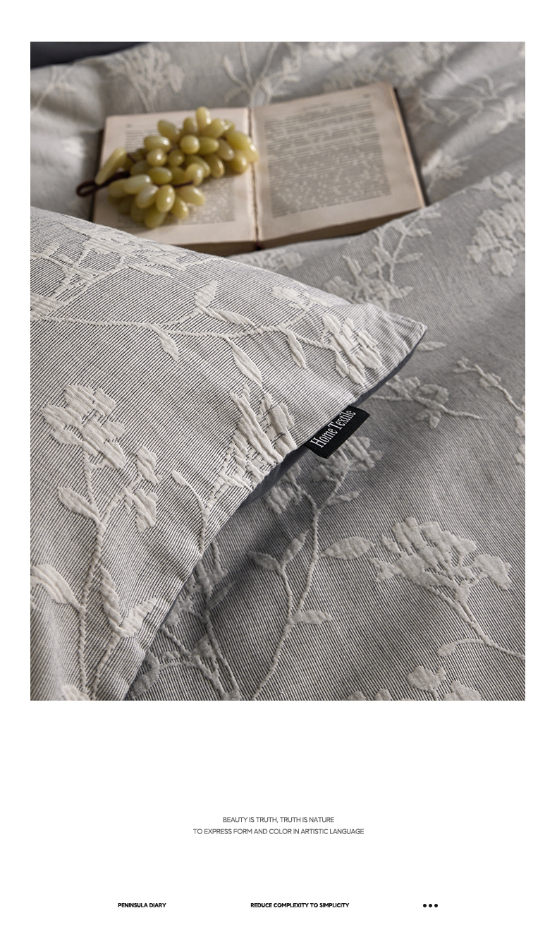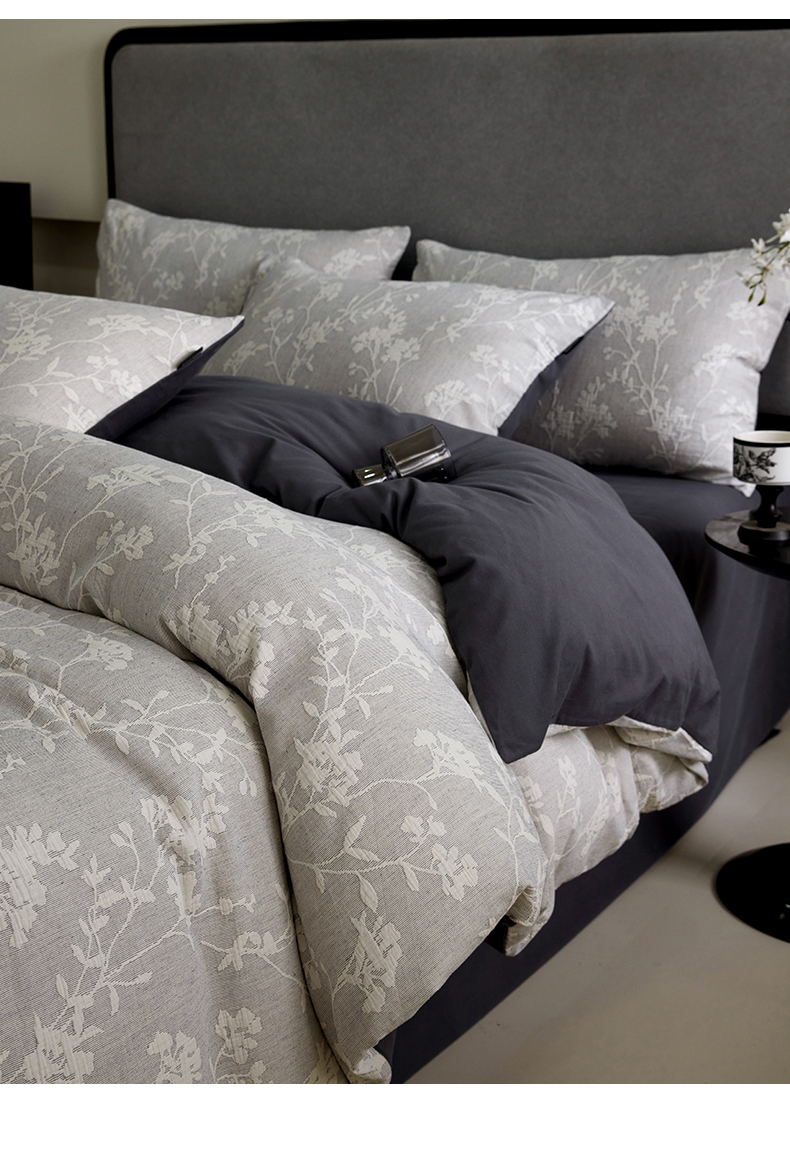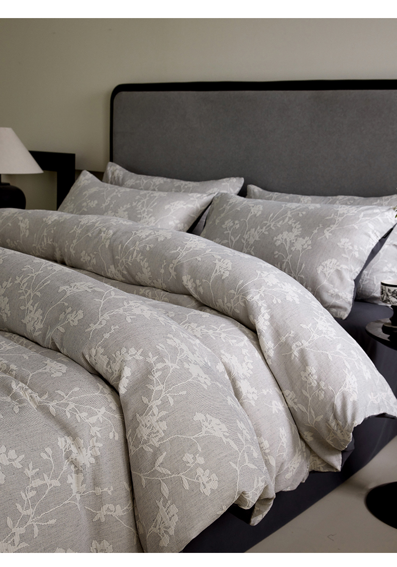 当前位置: 91家纺网 > 商品网购 > 床品套件 > 四件套 > 全棉普通四件套 > 小叮当家纺仓储工厂店 2025新款提供买家秀爆款花型不断货全棉纯棉A类三层纱加厚磨毛大提花四件套 沐云里·灰