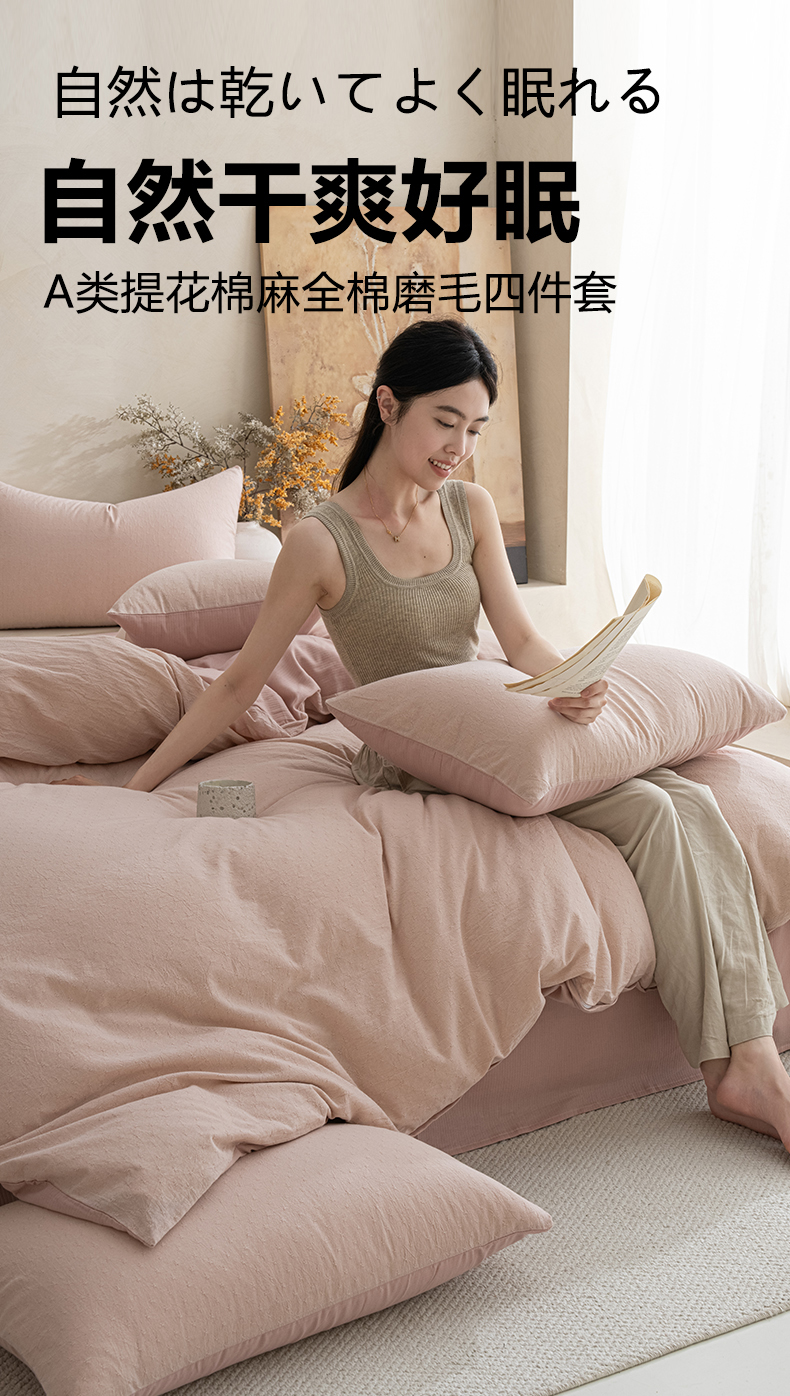 当前位置: 91家纺网 > 商品网购 > 床品套件 > 四件套 > 全棉普通四件套 > 小叮当家纺仓储工厂店 2025新款提供买家秀爆款花型不断货棉麻提花全棉纯棉磨毛四件套-云缦 云缦·粉