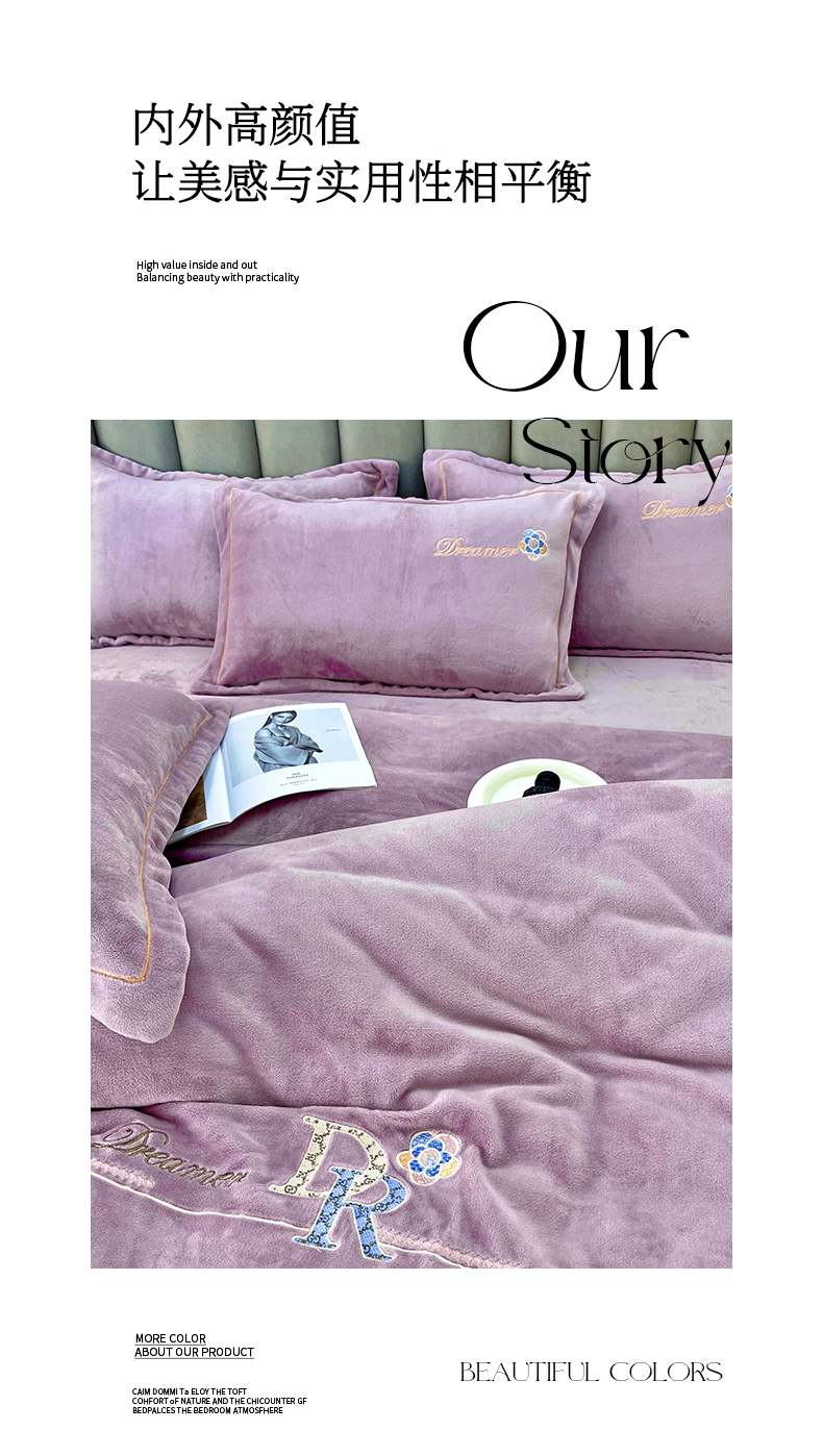 (总)逸林家纺《原希尔顿逸林》 2025新款牛奶绒绣花四件套-可可系列,可可-宾利蓝,可可-豆沙,可可-繁星蓝,可可-粉玉,可可-香芋紫,可可-雅士灰