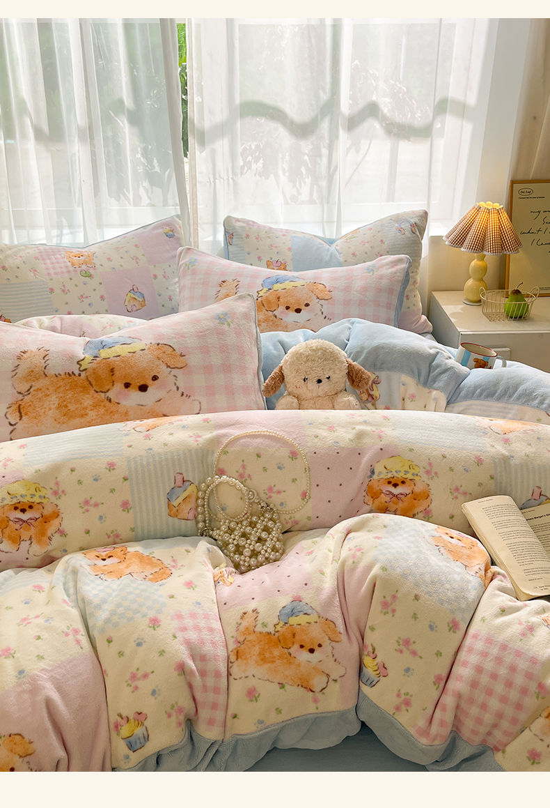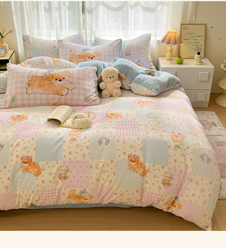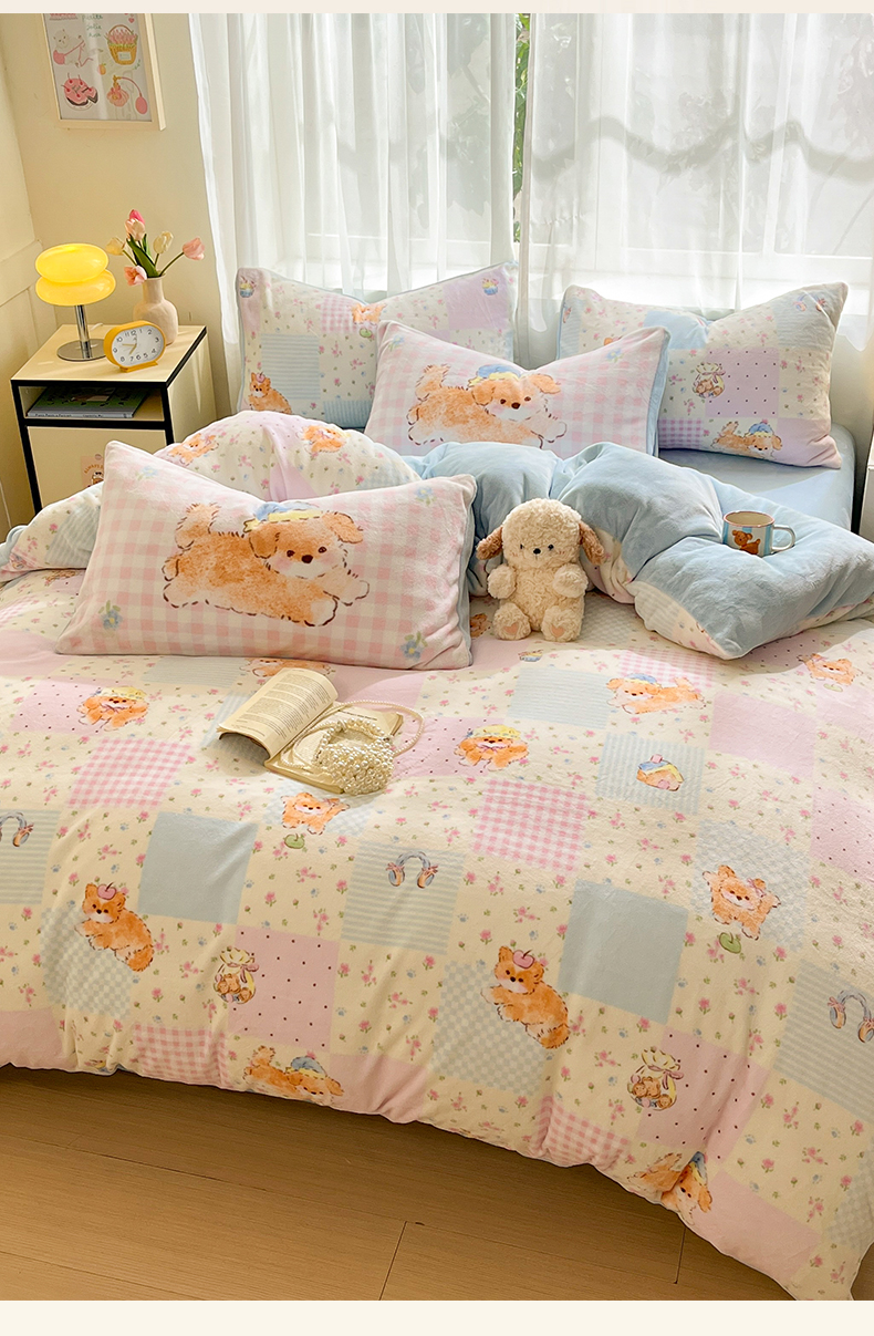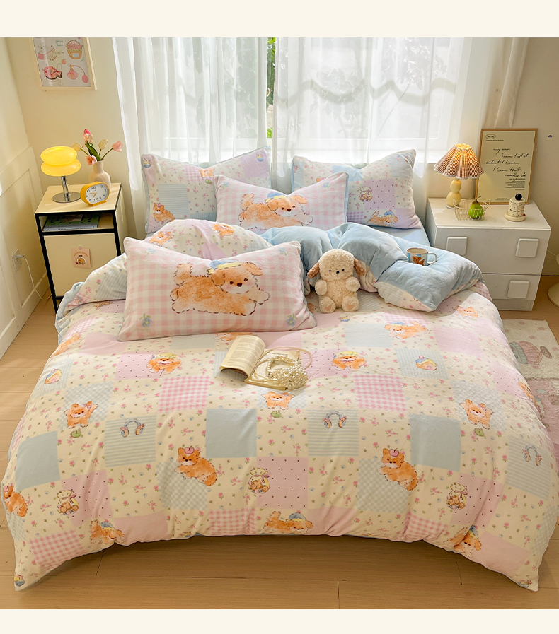 (总)如一 2025新款高克重大版数码印花牛奶绒四件套,毛毛狗,猫咪酱,俏皮狗,色彩猫,小熊仔,熊猫咖,游乐园,粉伙伴,拉兔咖,萌宠黄,萌宠绿,萌派对,围巾狗,线条狗,小粉喵,小花喵,小伙伴