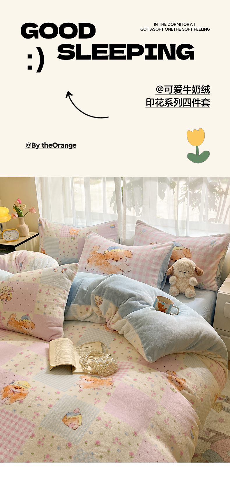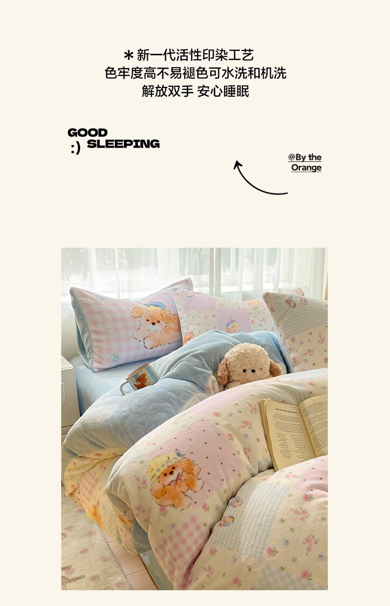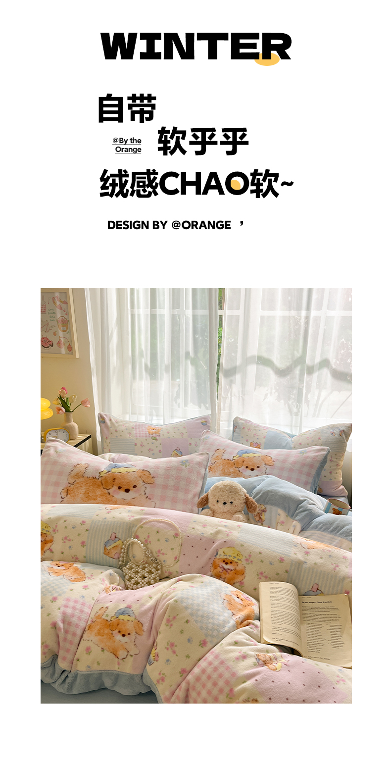 (总)如一 2025新款高克重大版数码印花牛奶绒四件套,毛毛狗,猫咪酱,俏皮狗,色彩猫,小熊仔,熊猫咖,游乐园,粉伙伴,拉兔咖,萌宠黄,萌宠绿,萌派对,围巾狗,线条狗,小粉喵,小花喵,小伙伴
