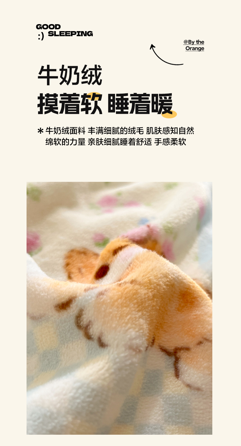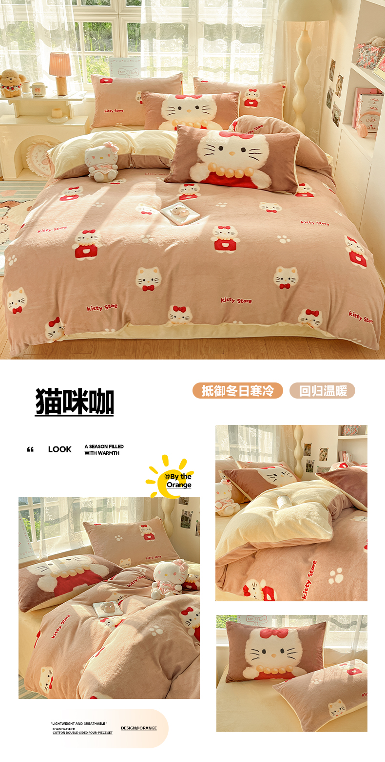 商品名称:如一 2025新款高克重卡通印花牛奶绒四件套第三批 慵懒猫