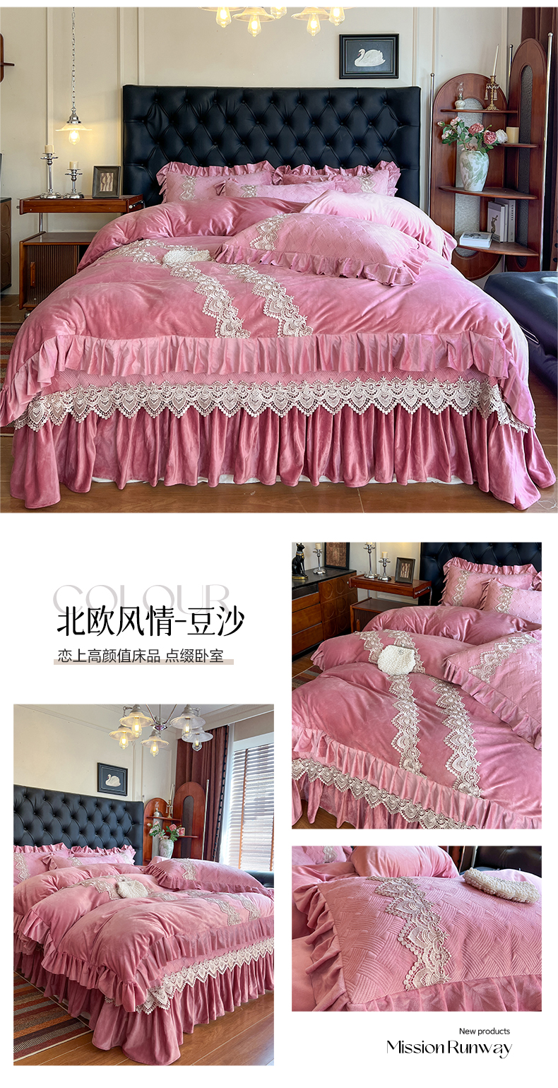 (总)瑞宝 2025新款宝宝绒夹棉床裙四件套-香奢丽影,香奢丽影-奶油白,香奢丽影-高级灰,香奢丽影-豆沙,香奢丽影-胭脂红,香奢丽影-樱花粉,香奢丽影-中国红