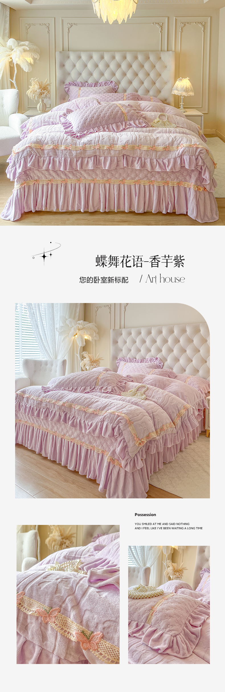 (总)瑞宝 2025新款牛奶绒花边床盖四件套-蝶舞花语(控价 298起 ),蝶舞花语-奶茶棕,蝶舞花语-蜜粉,蝶舞花语-奶油米,蝶舞花语-青柠绿,蝶舞花语-香芋紫,蝶舞花语-星空蓝