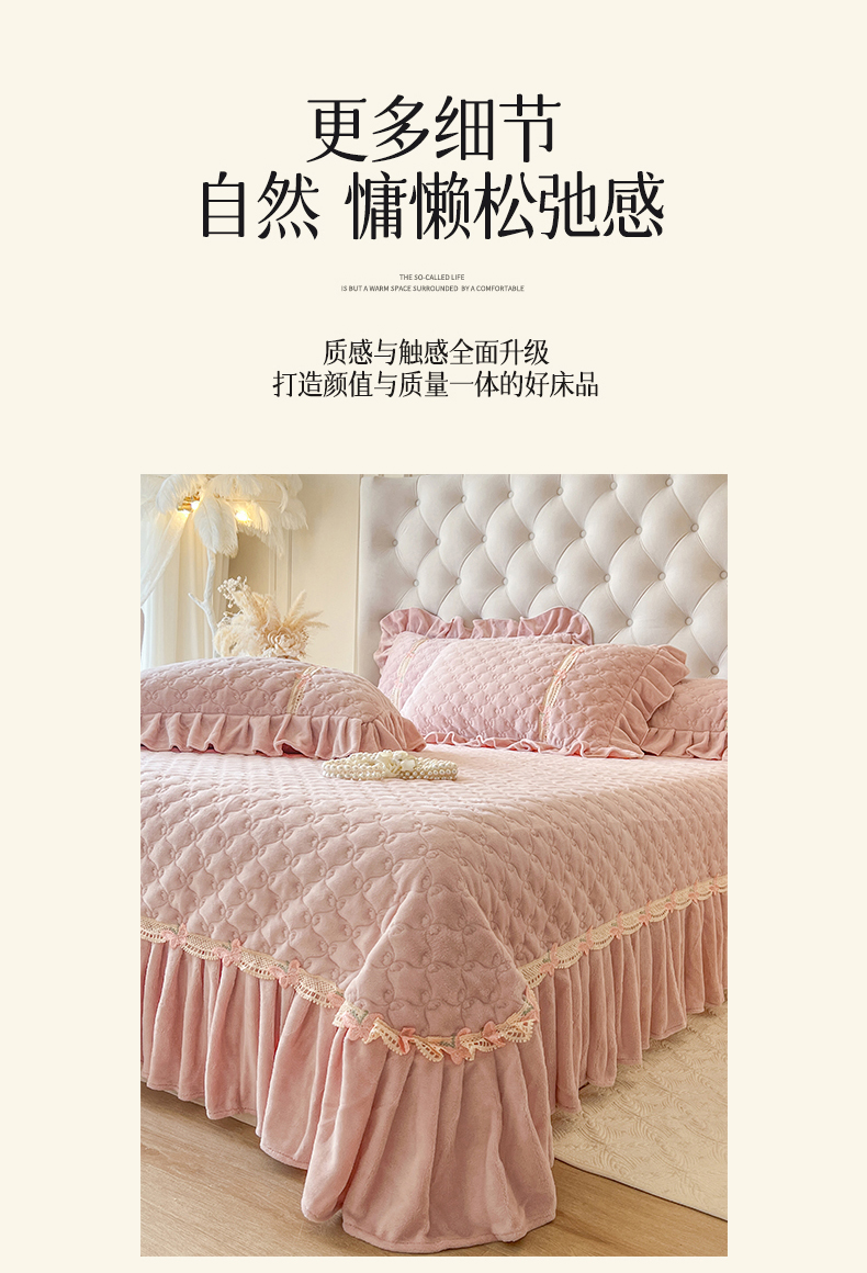 (总)瑞宝 2025新款雕花牛奶绒夹棉床裙三件套-花有约,花有约-粉玉,花有约-青柠绿,花有约-奶油白,花有约-蔚蓝,花有约-卡其,花有约-梦幻紫