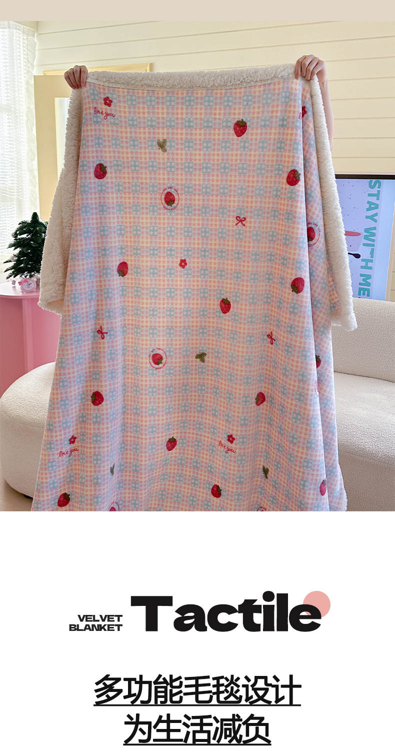 商品名称:澜妃 2025新款可爱系新款牛奶绒羊羔绒多功能毛毯毛毯毯子-奶盖 奶盖-草莓奶茶