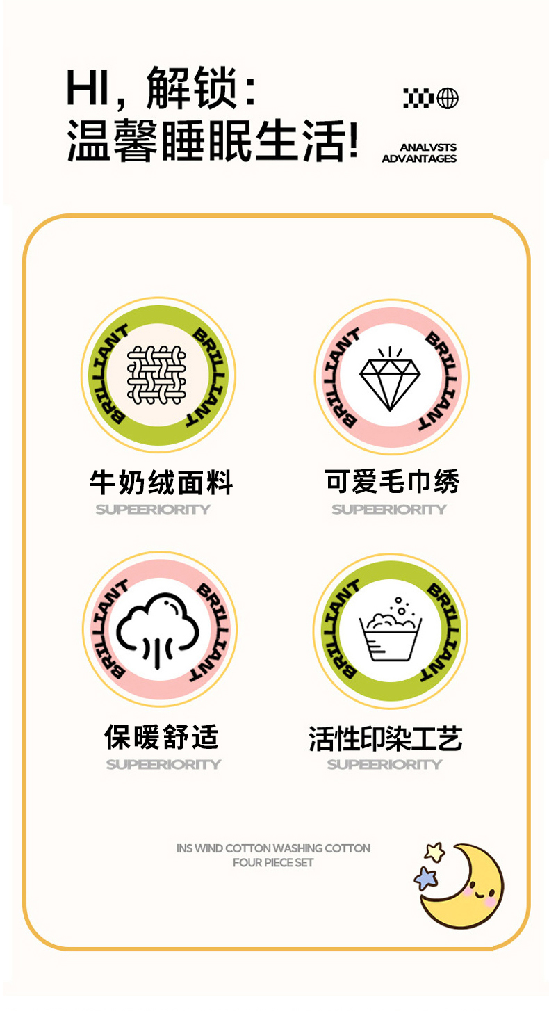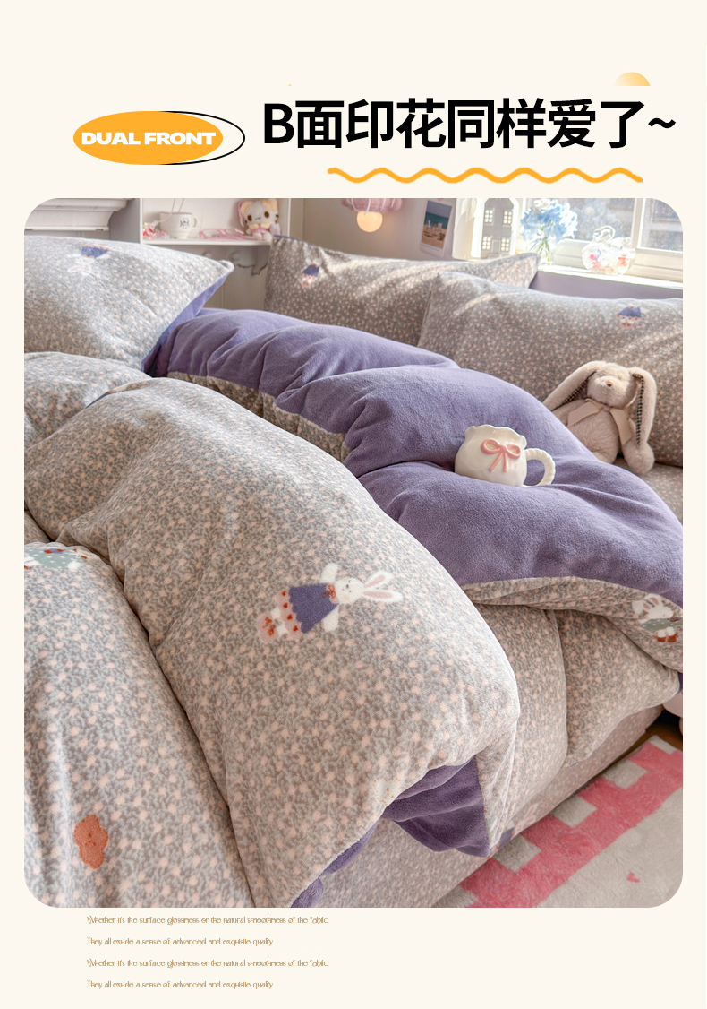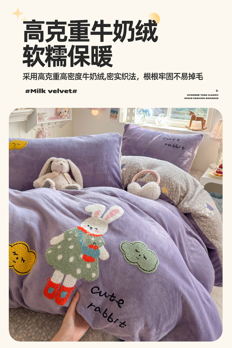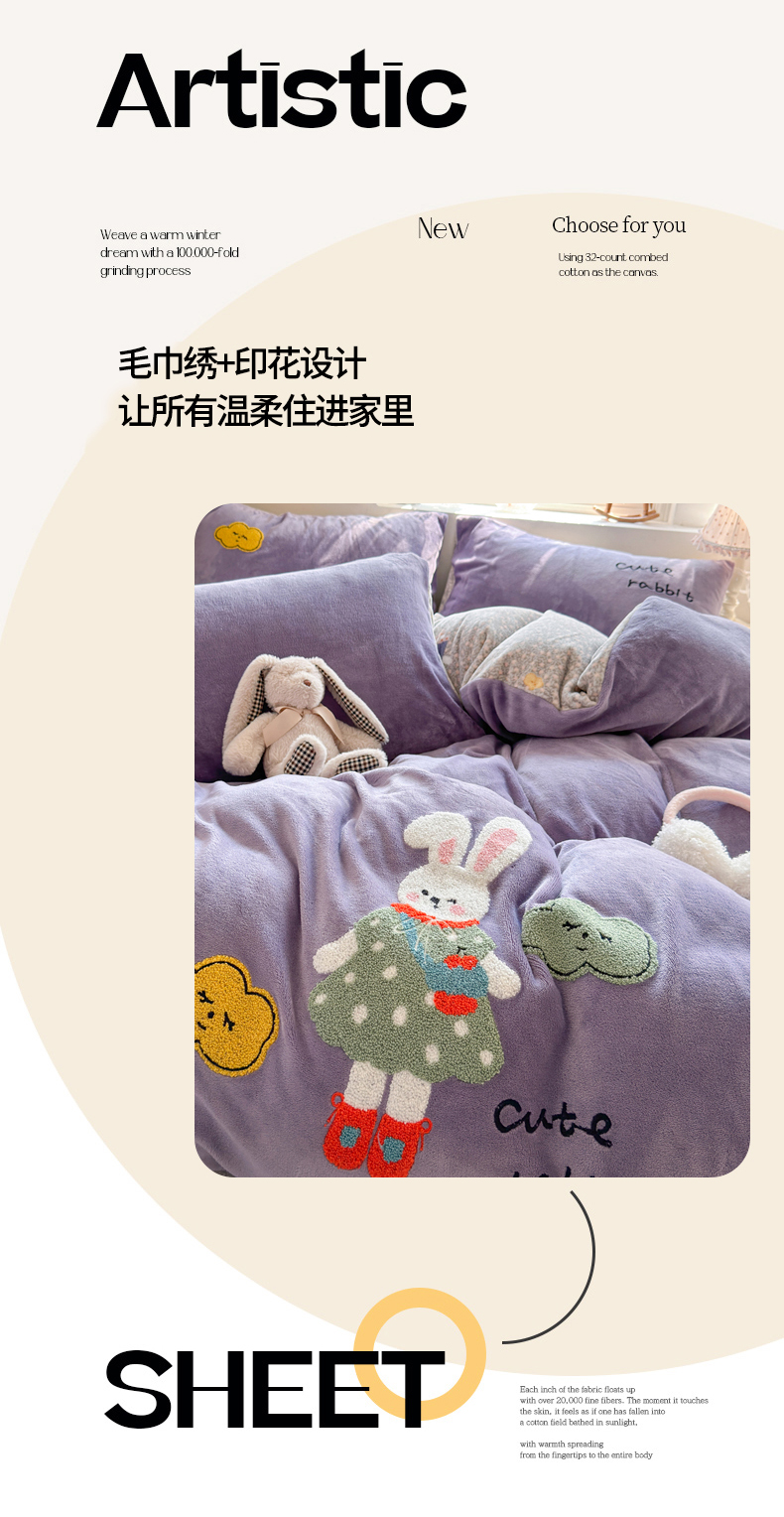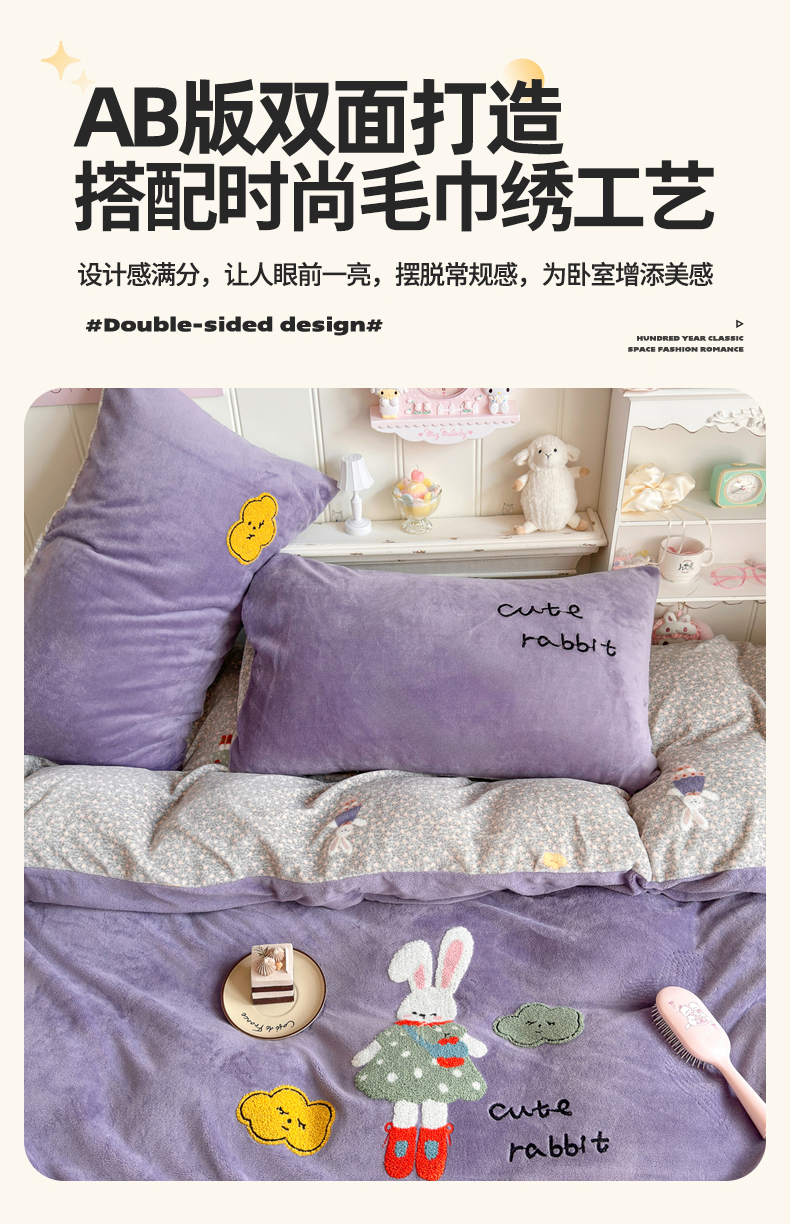 商品名称:Sweet dreams甜梦 2025新款全消光牛奶绒毛巾绣印花四件套 可爱小兔