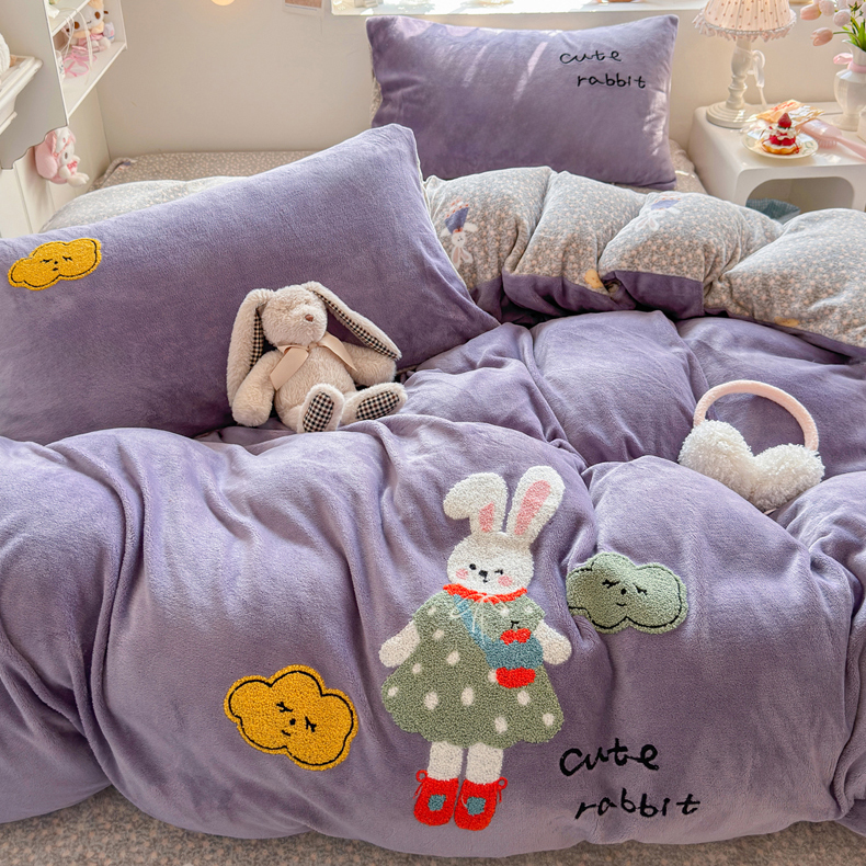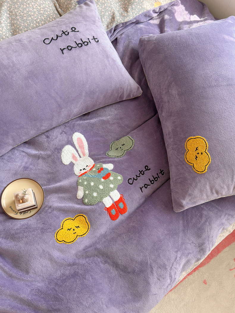 Sweet dreams甜梦 2025新款全消光牛奶绒毛巾绣印花四件套 可爱小兔