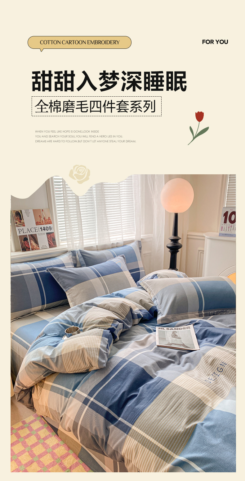 当前位置: 91家纺网 > 商品网购 > 床品套件 > 四件套 > 全棉普通四件套 > 小叮当家纺仓储工厂店 2025新款(买家秀 不断货)A类全棉纯棉磨毛四件套 蓝格子
