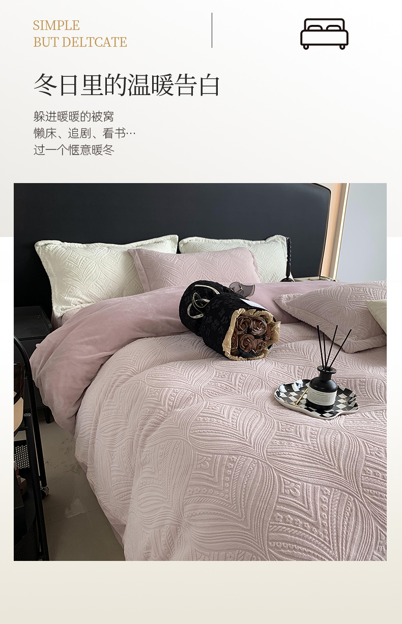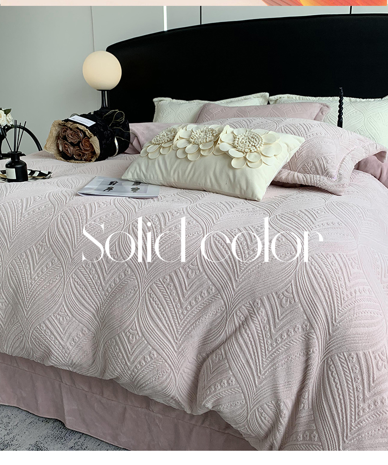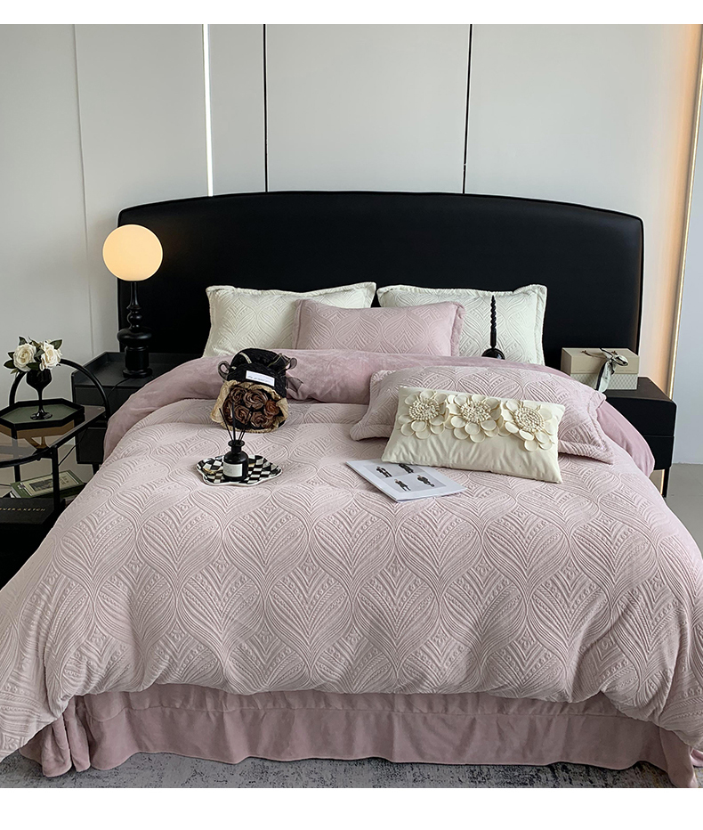 商品名称:莱豫家纺 2025新款全消光雕花牛奶绒四件套-流年 流年肉桂粉