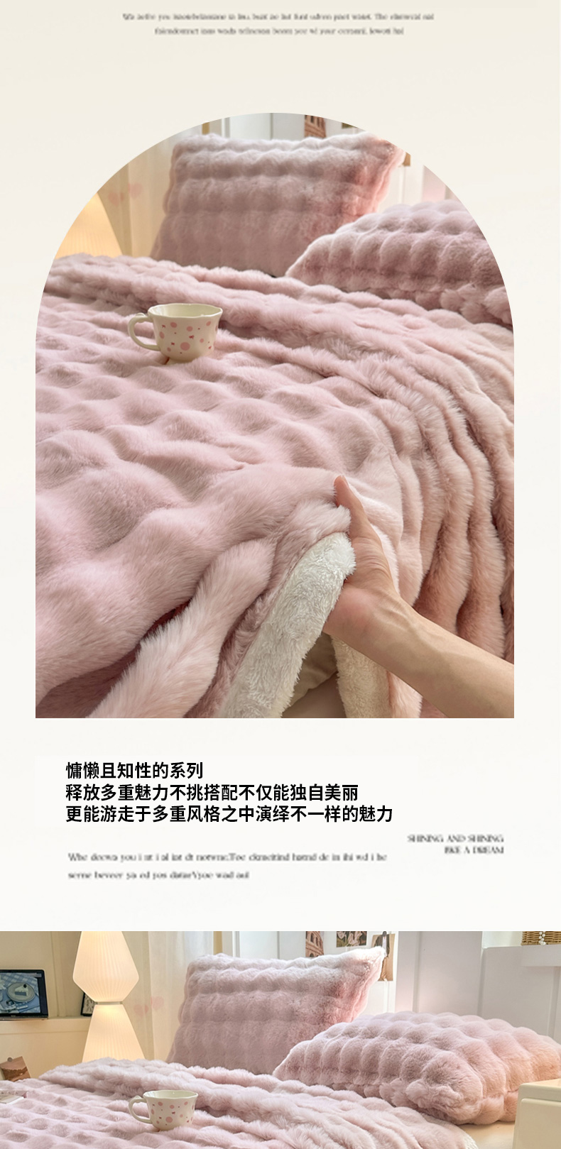 • 91家纺网 家纺一手货源 找家纺 (总)麒东家纺 2025新款泡泡绒兔毛绒床单,流彩粉,深灰,咖色,米白,天蓝,流彩蓝,流彩绿,流彩紫