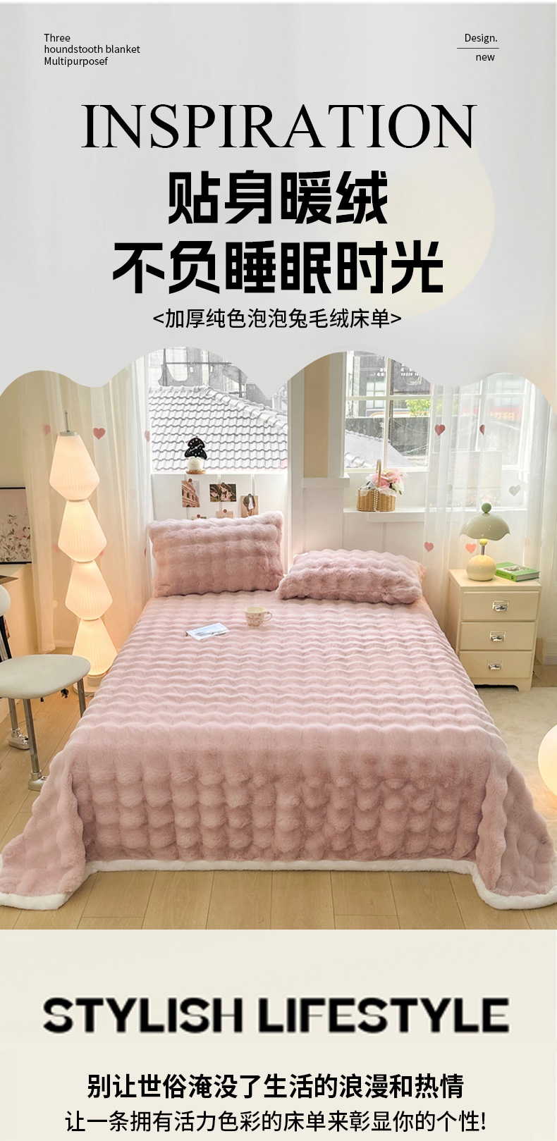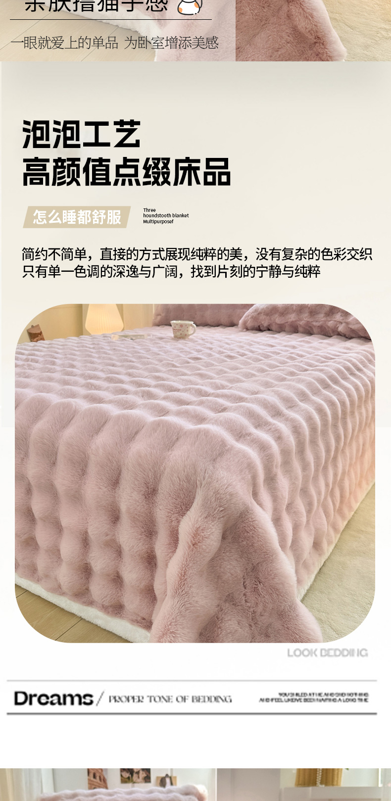 (总)麒东家纺 2025新款泡泡绒兔毛绒床单,流彩粉,深灰,咖色,米白,天蓝,流彩蓝,流彩绿,流彩紫