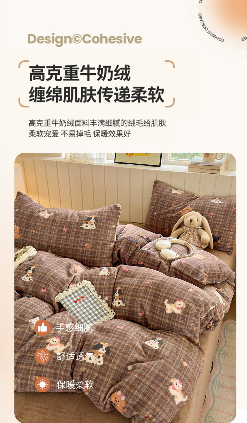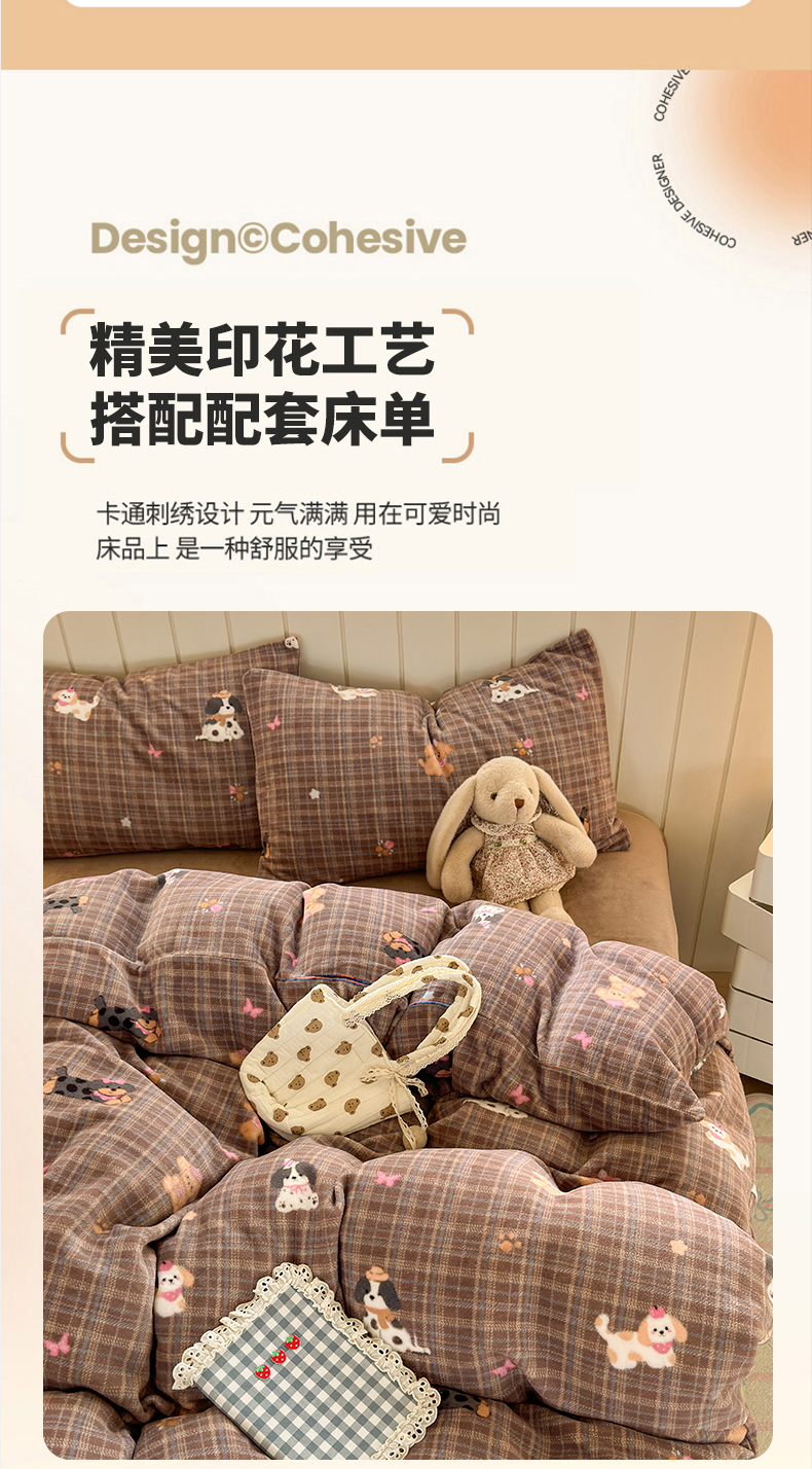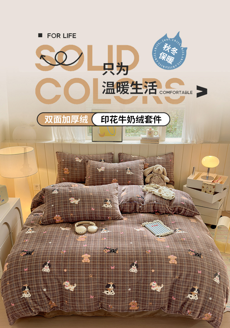 当前位置: 91家纺网 > 商品网购 > 床品套件 > 四件套 > 牛奶绒四件套 > 丽美人家纺 2025新款小版印花牛奶绒四件套 英伦小狗