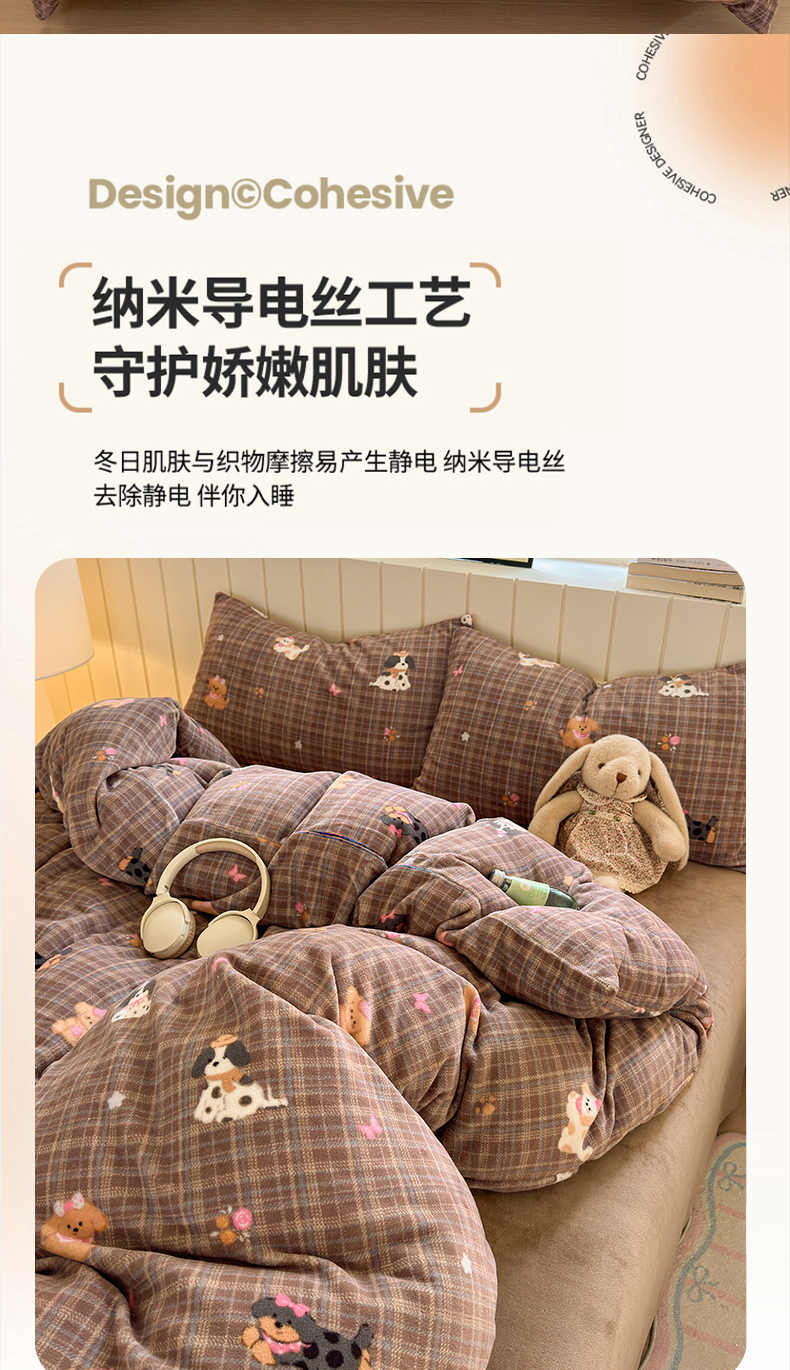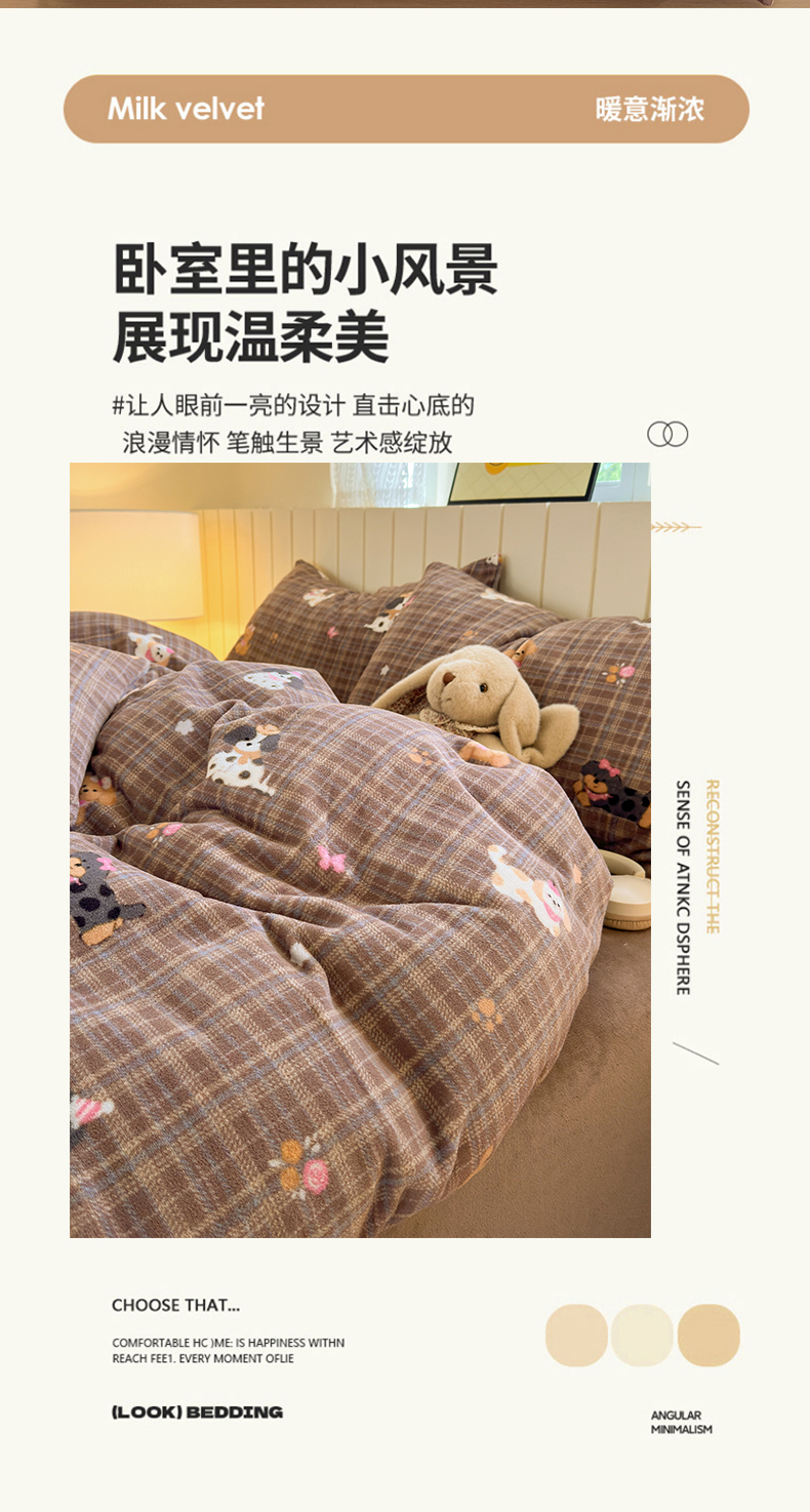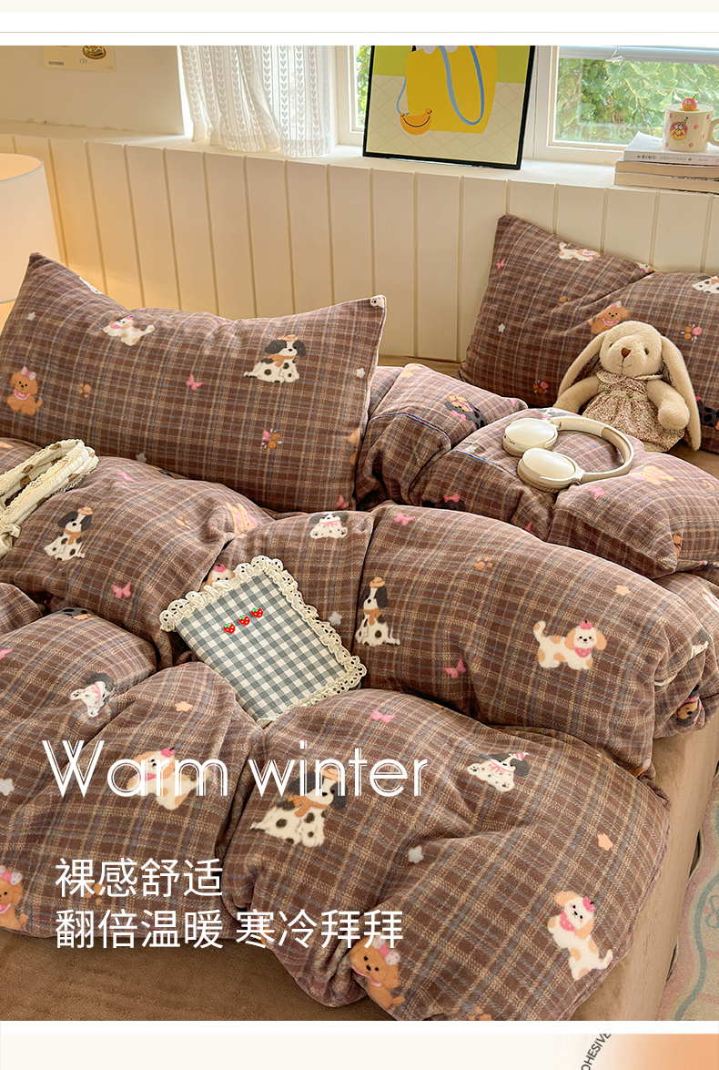 当前位置: 91家纺网 > 商品网购 > 床品套件 > 四件套 > 牛奶绒四件套 > 丽美人家纺 2025新款小版印花牛奶绒四件套 英伦小狗