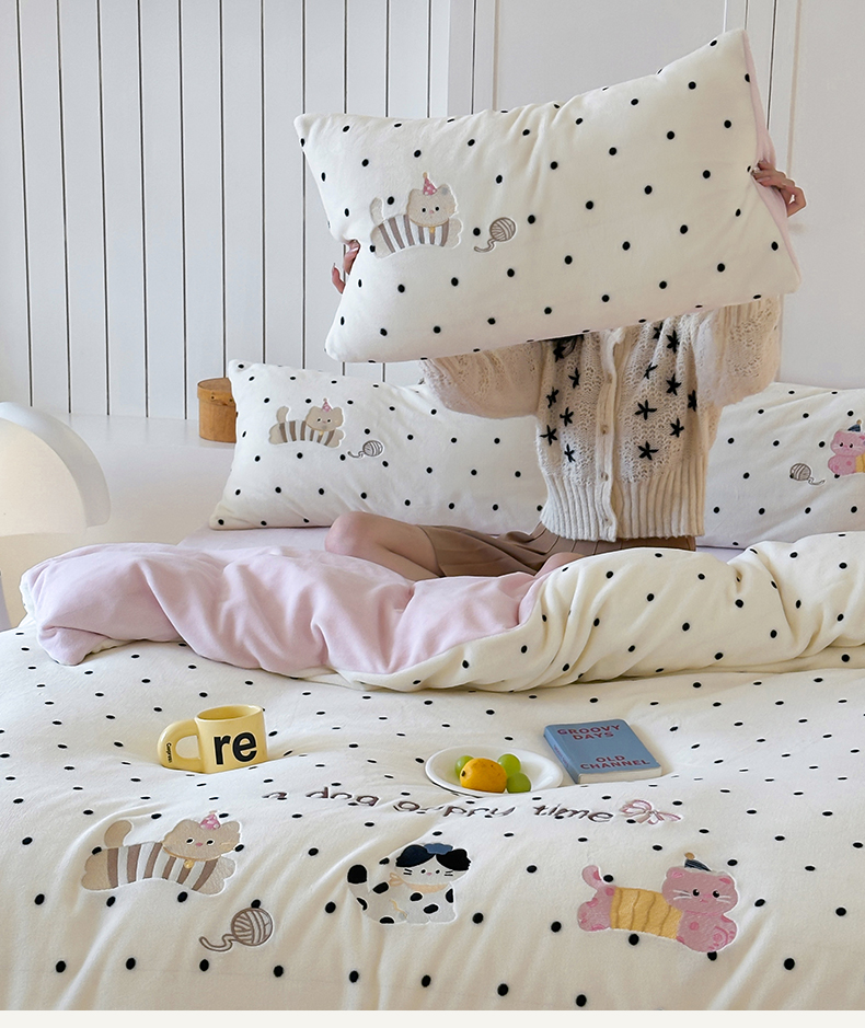 (总)优悦生活馆 2025新款牛奶绒卡通印花刺绣四件套系列,波点猫-白+粉,波点猫-蓝,格子熊-豆沙,格子熊-灰,格子熊-咖,条纹狗-咖,条纹狗-蓝,条纹狗-绿