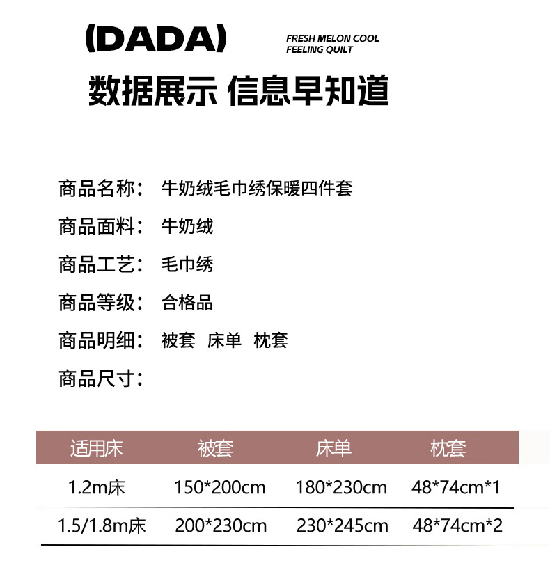 【床笠款】1.8四件套-被套200x230 | ¥105.00 |