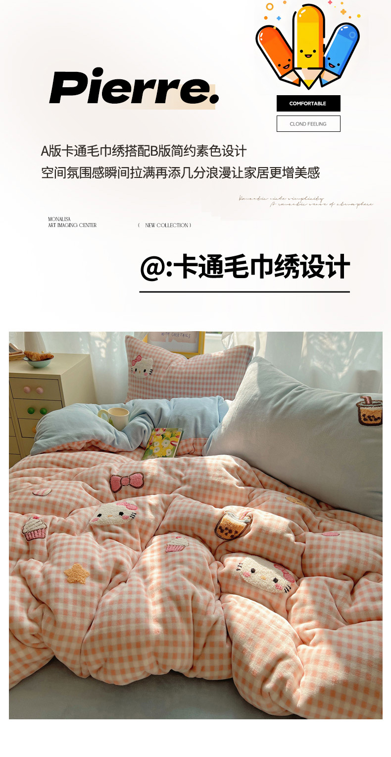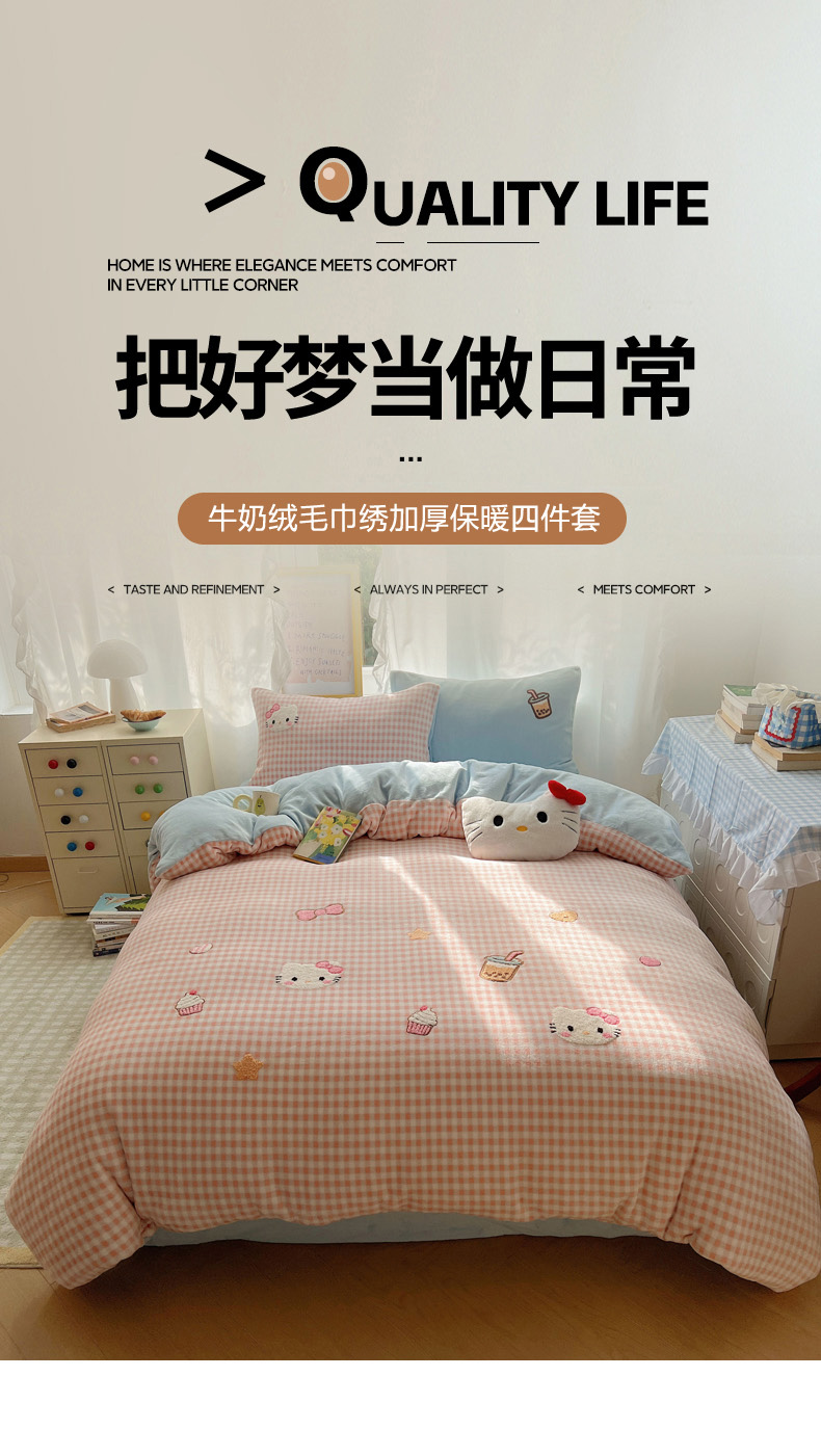 当前位置: 91家纺网 > 商品网购 > 床品套件 > 四件套 > 牛奶绒四件套 > 雨帆家纺 2025新款亲肤舒适可爱卡通牛奶绒毛巾绣四件套 奶茶猫咪