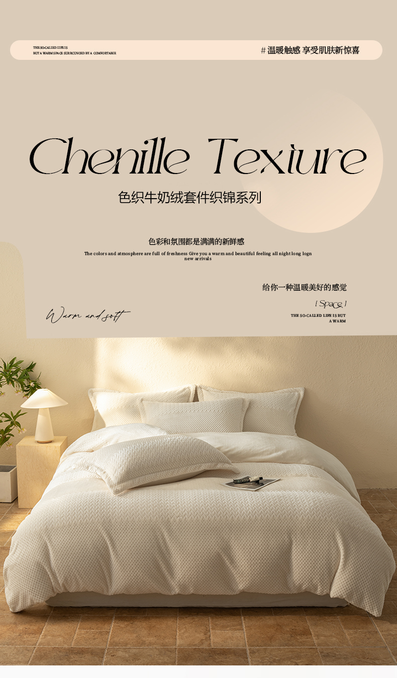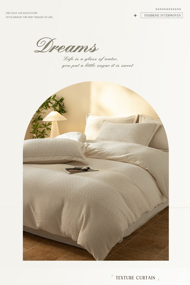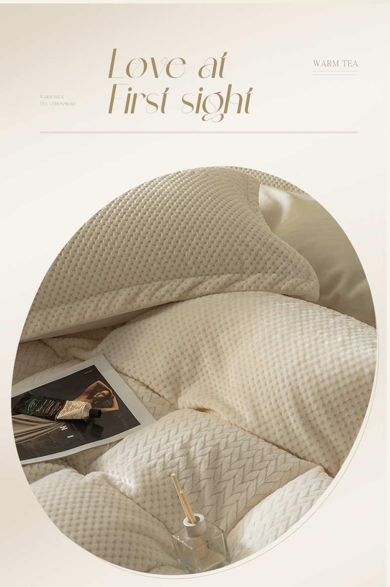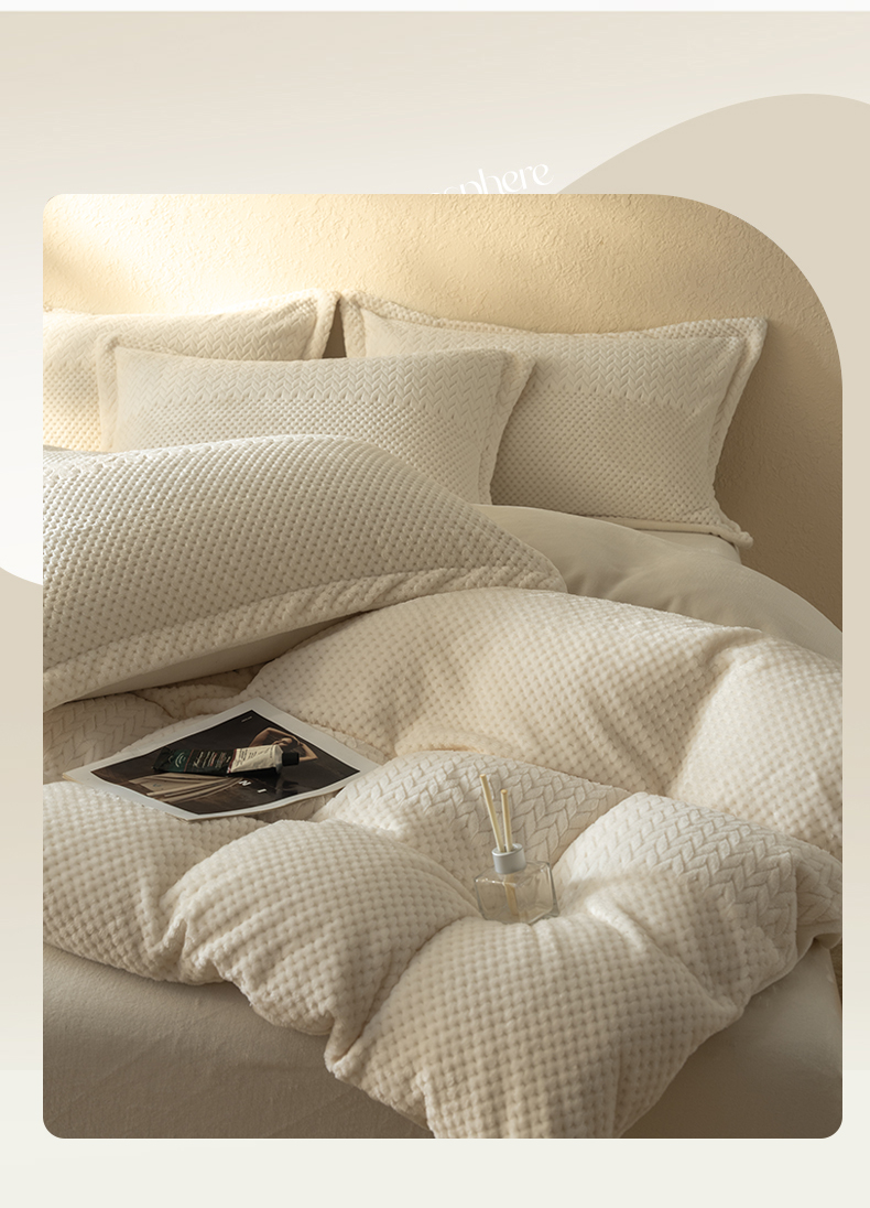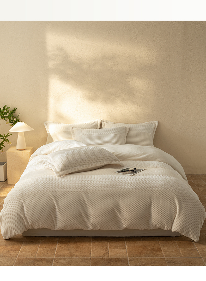 当前位置: 91家纺网 > 商品网购 > 床品套件 > 四件套 > 牛奶绒四件套 > 源舍家纺 2025新款色织拼色编织提花轻奢牛奶绒四件套(场景二) 织锦-白露