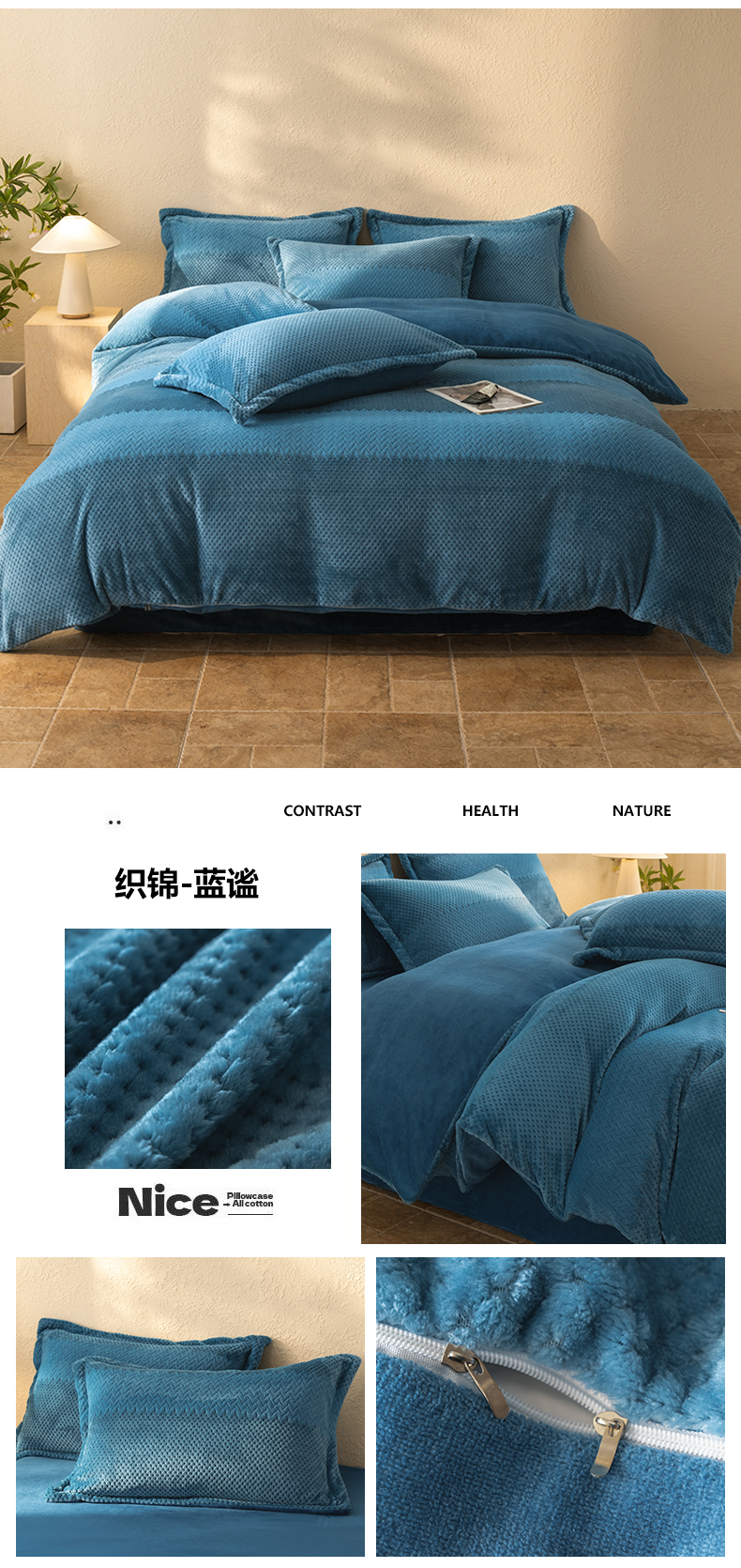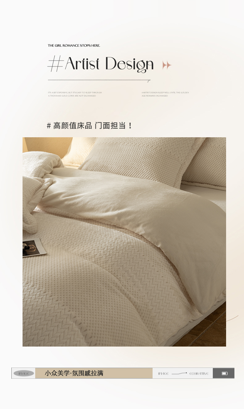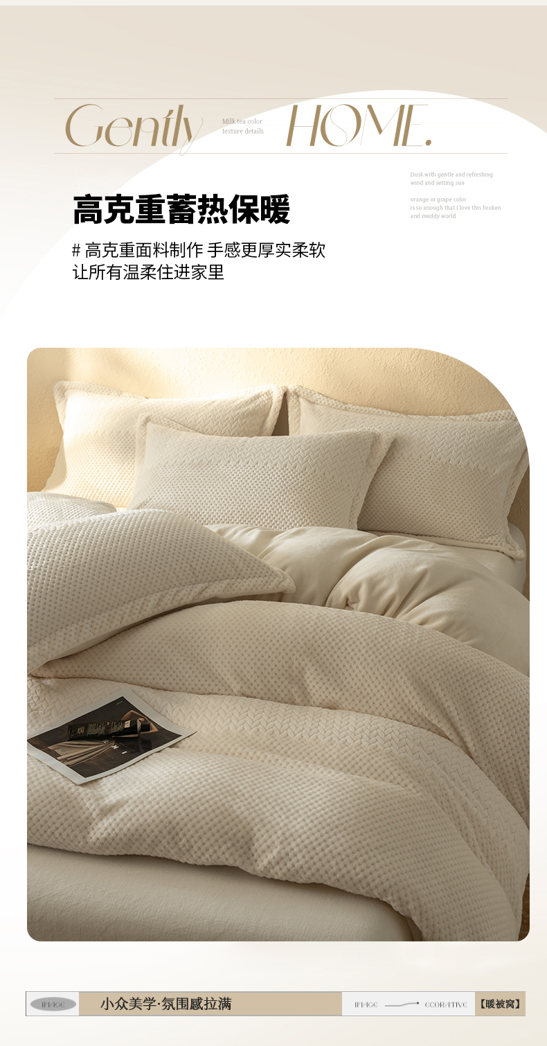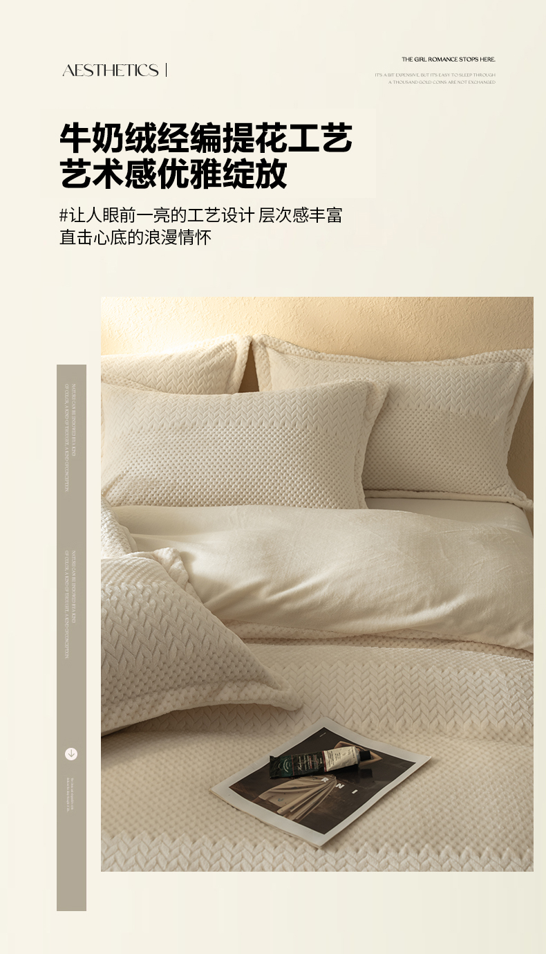 当前位置: 91家纺网 > 商品网购 > 床品套件 > 四件套 > 牛奶绒四件套 > 源舍家纺 2025新款色织拼色编织提花轻奢牛奶绒四件套(场景二) 织锦-白露