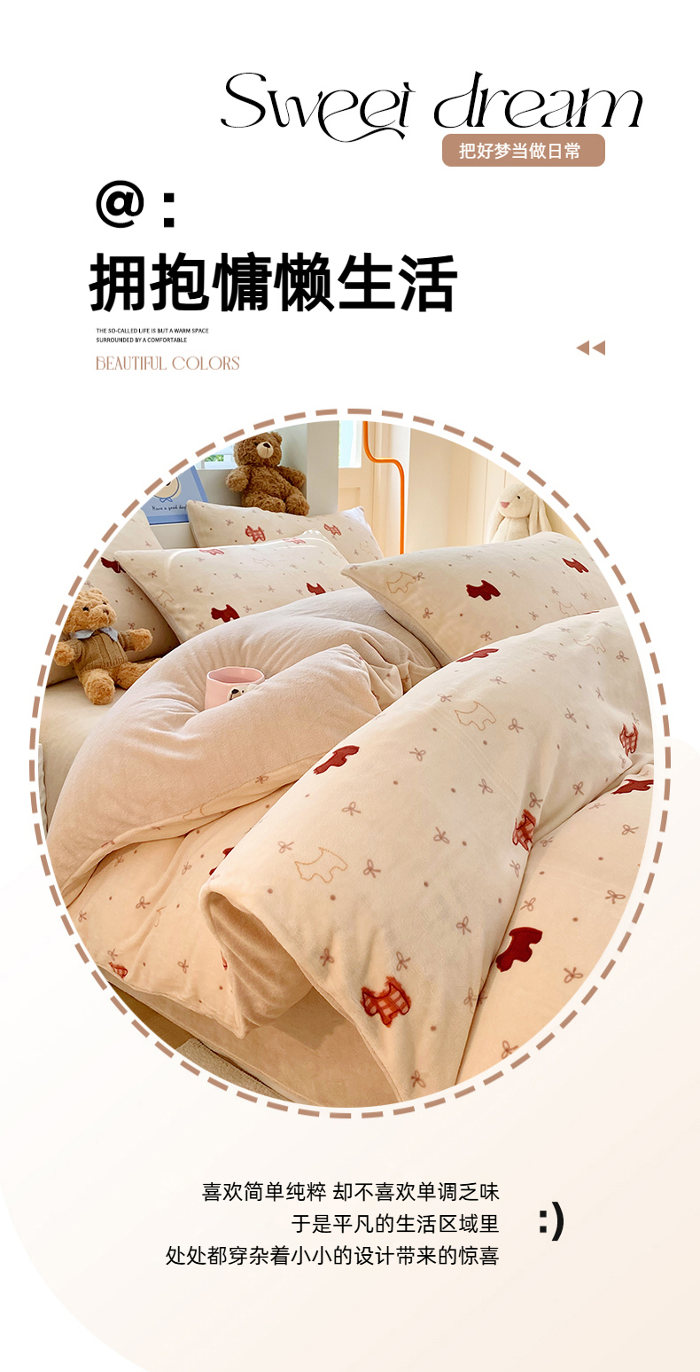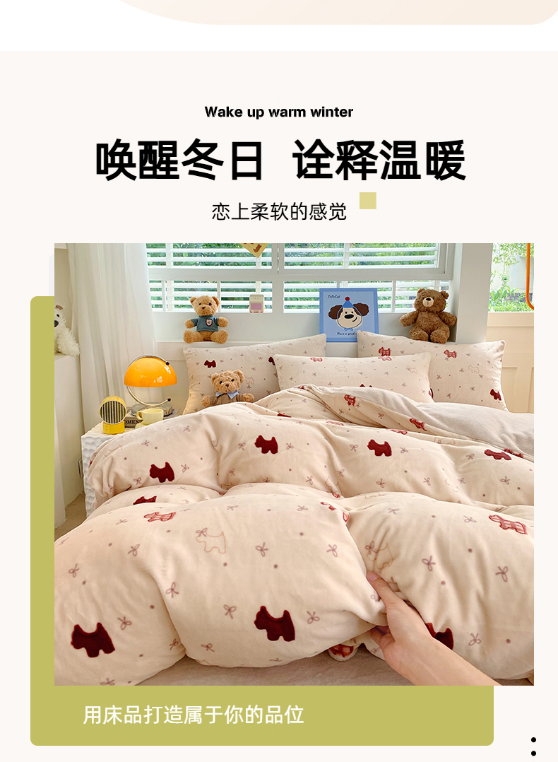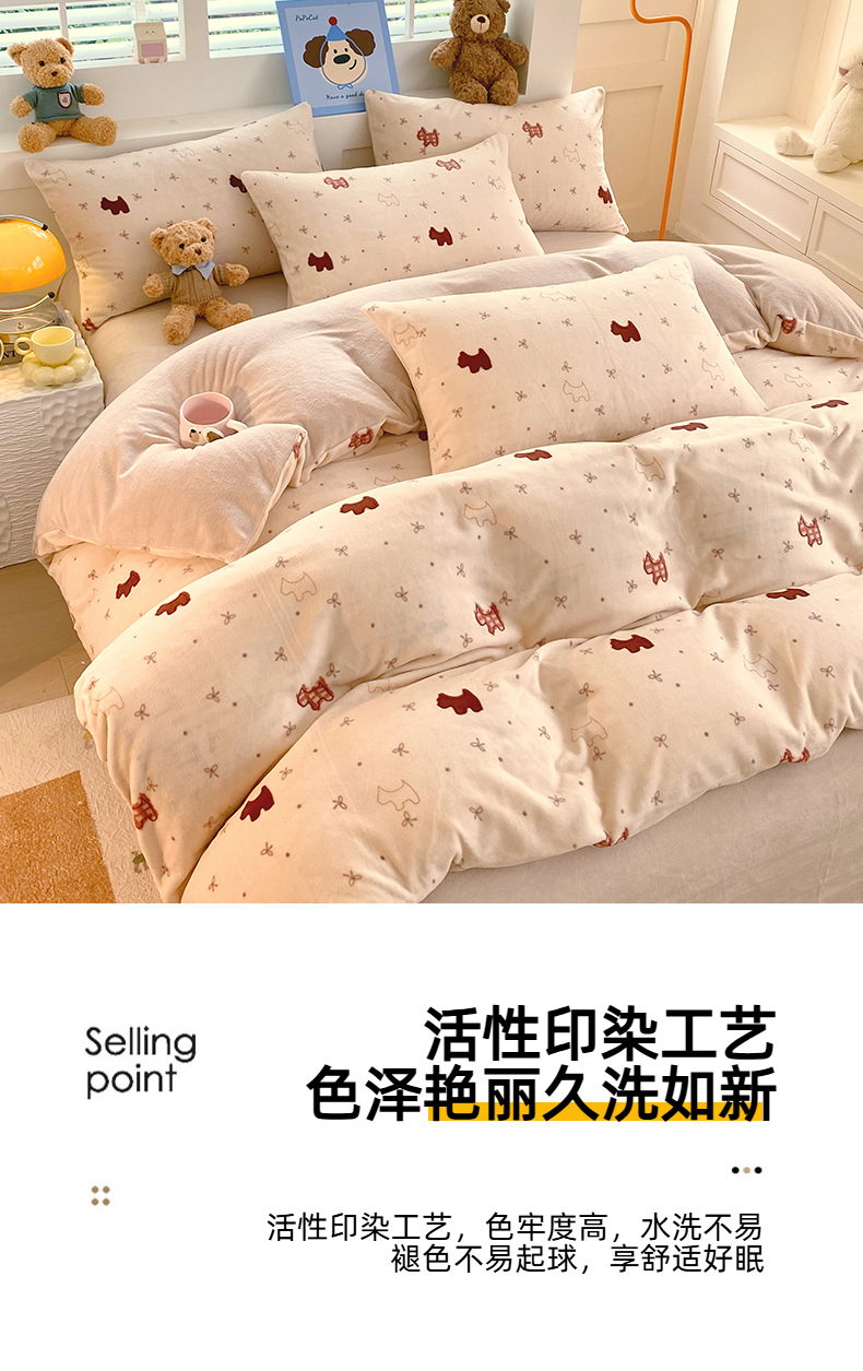 当前位置: 91家纺网 > 商品网购 > 床品套件 > 四件套 > 牛奶绒四件套 > 悦织湾家纺 2025新款高克重牛奶绒印花四件套床单床笠轻奢时尚床上用品三四件套被套 奶油小狗