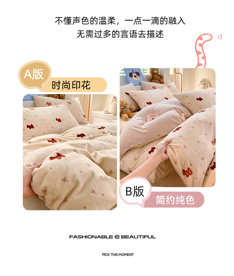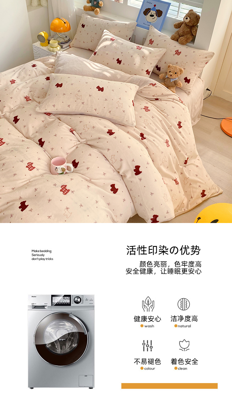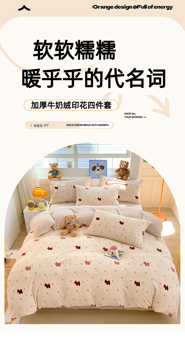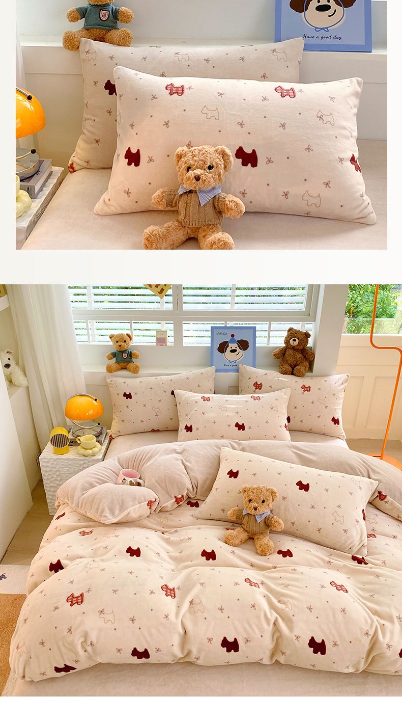 当前位置: 91家纺网 > 商品网购 > 床品套件 > 四件套 > 牛奶绒四件套 > 悦织湾家纺 2025新款高克重牛奶绒印花四件套床单床笠轻奢时尚床上用品三四件套被套 奶油小狗