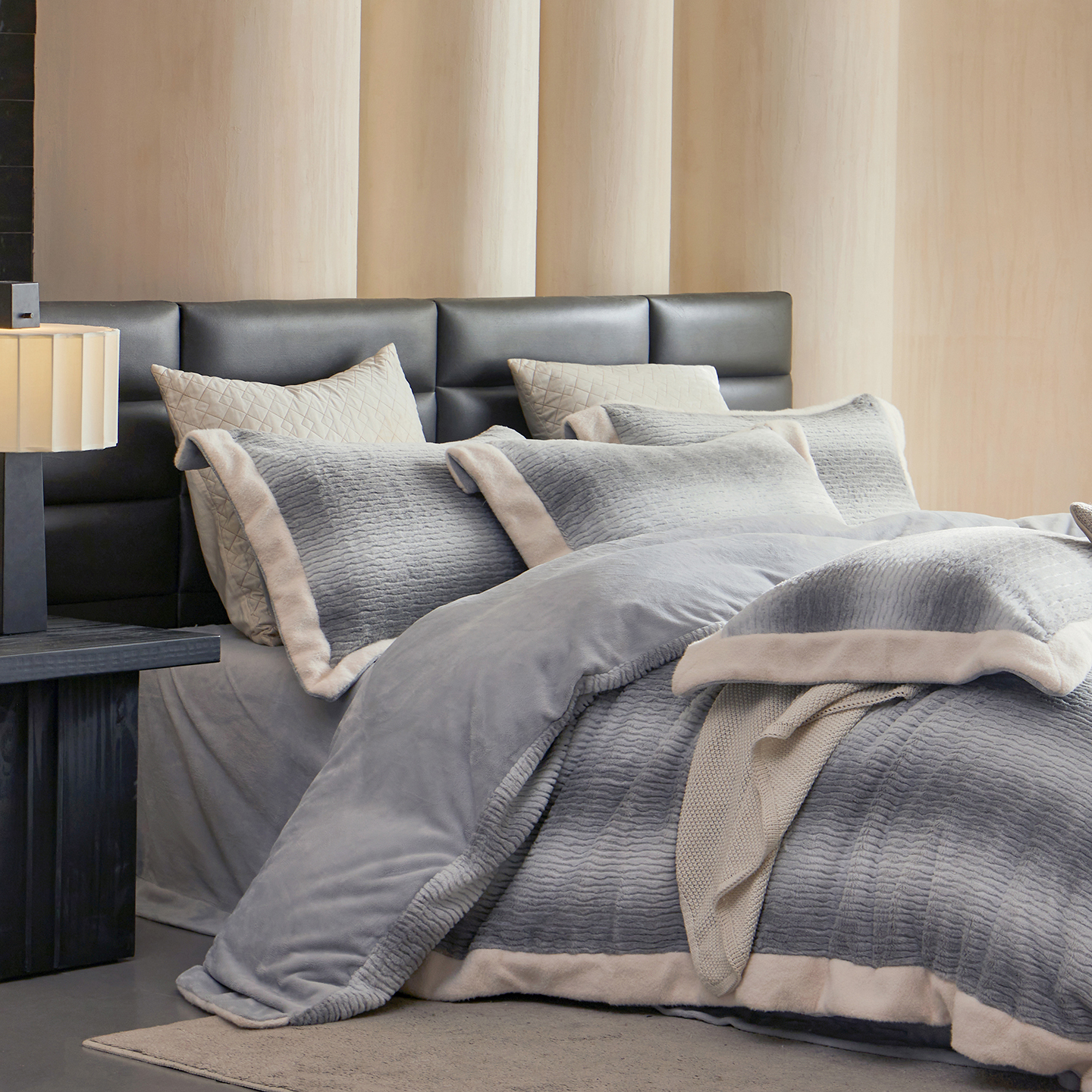 佳汐蓝家纺 2025新款仿狐绒牛奶绒四件套-柔如系列 烟幕灰