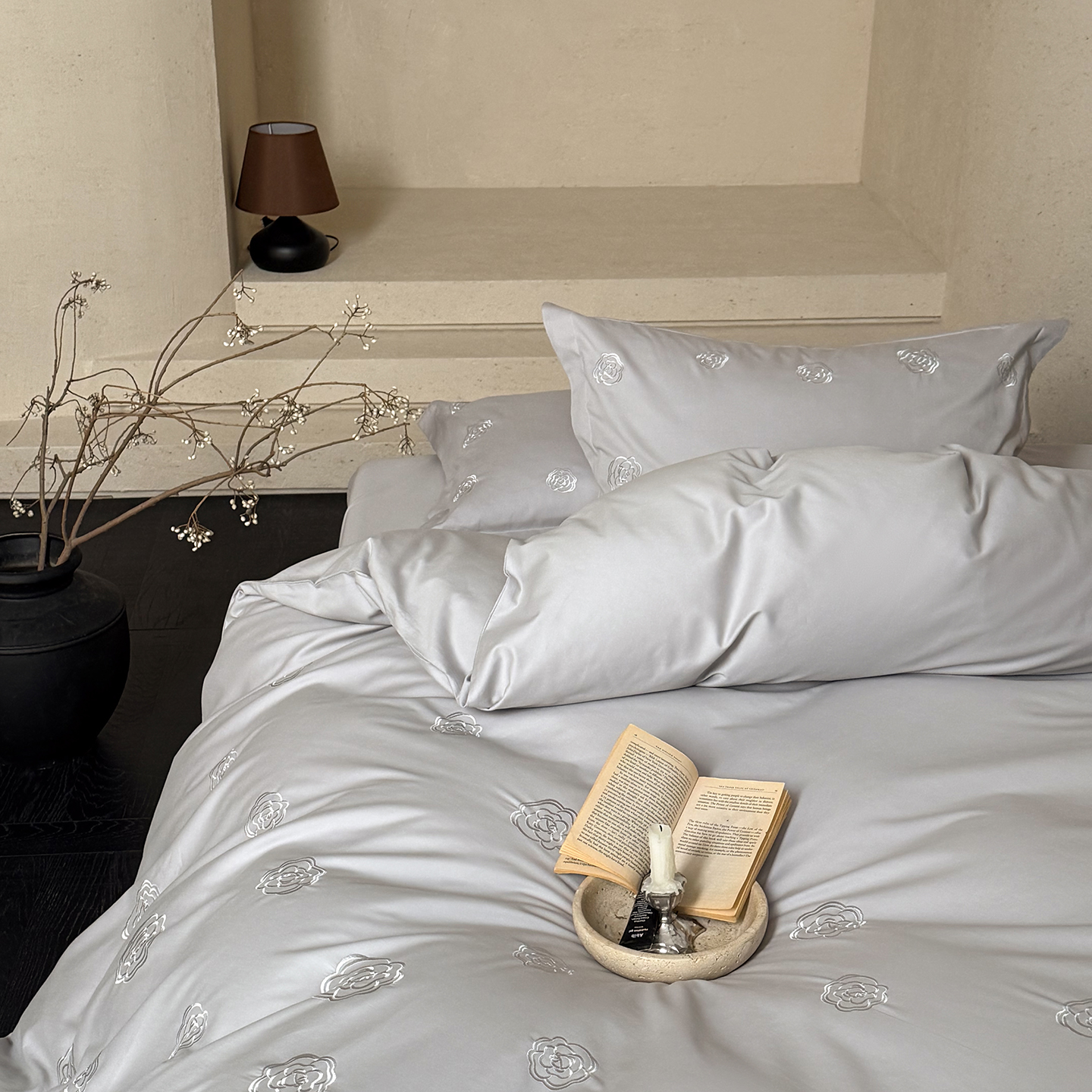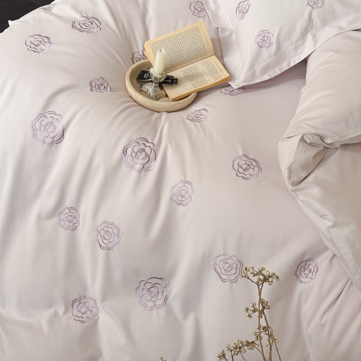 (总)佳汐蓝家纺 2026新款新疆长绒棉全棉纯棉轻奢五线刺绣四件套,初雪白,稻谷米,冷釉灰,汐雾蓝,薰衣紫,釉粉,朱砂红